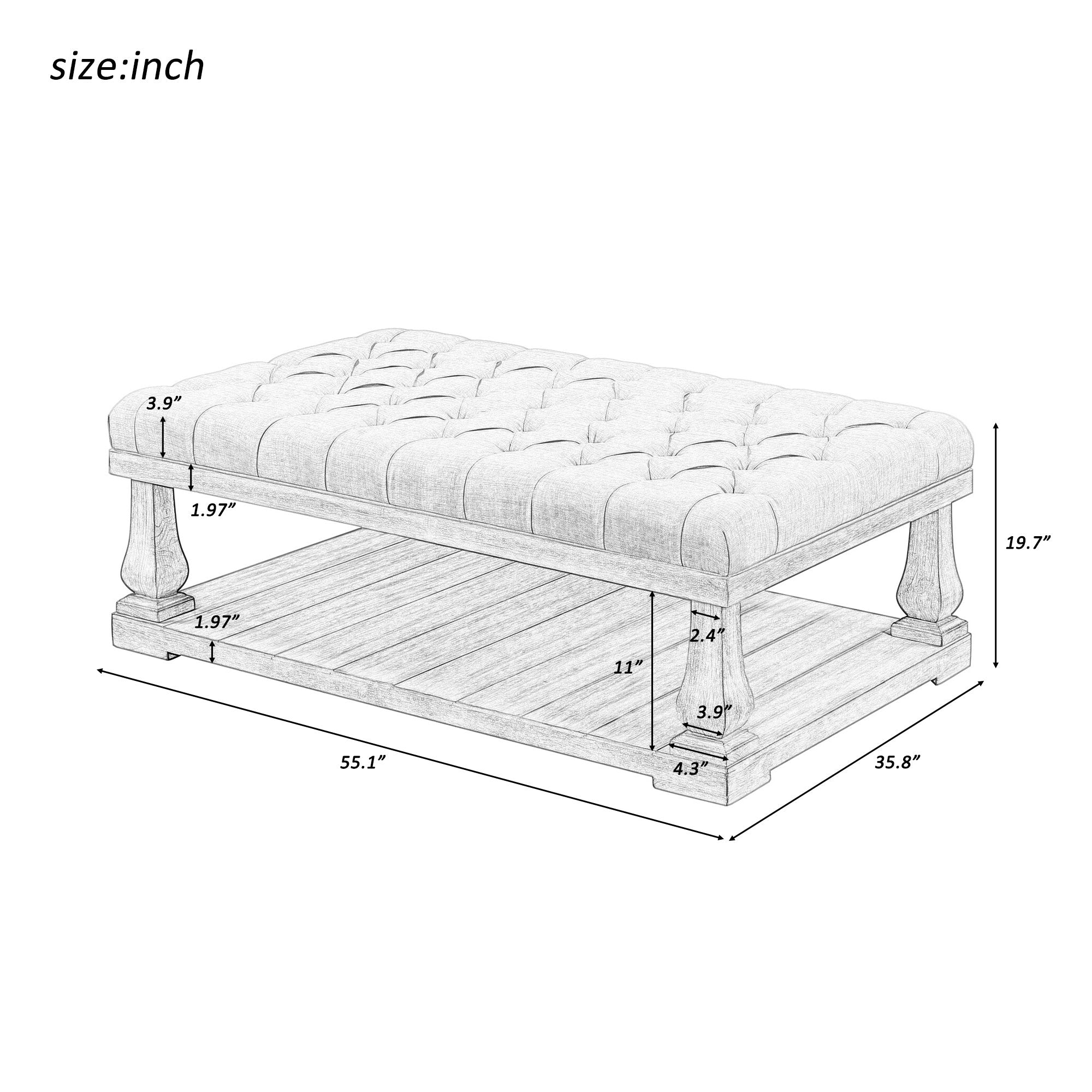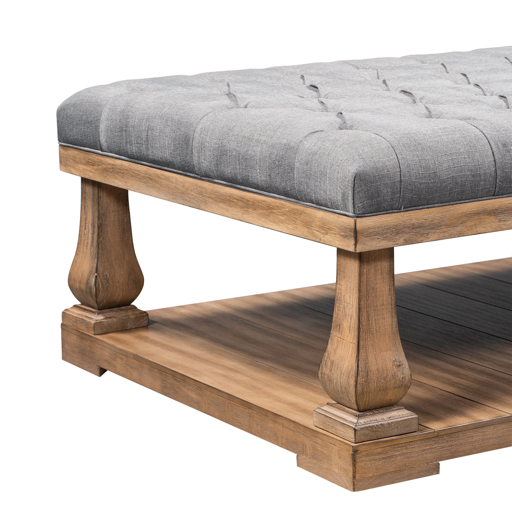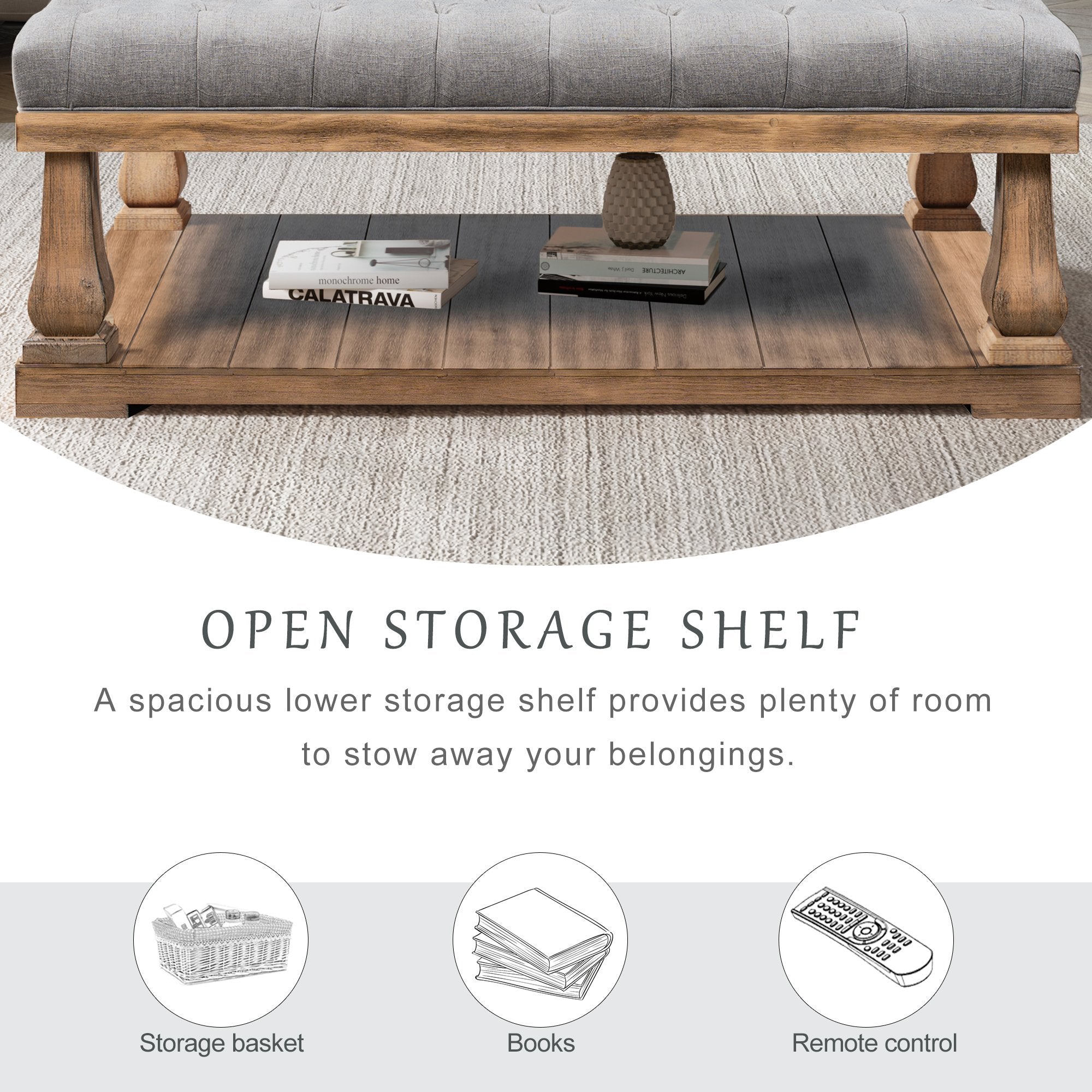 Storage Bench with Wood Shelf, Bed End Bench with Padded Seat, Coffee table,End table, Hallway, Bedroom, Living Room