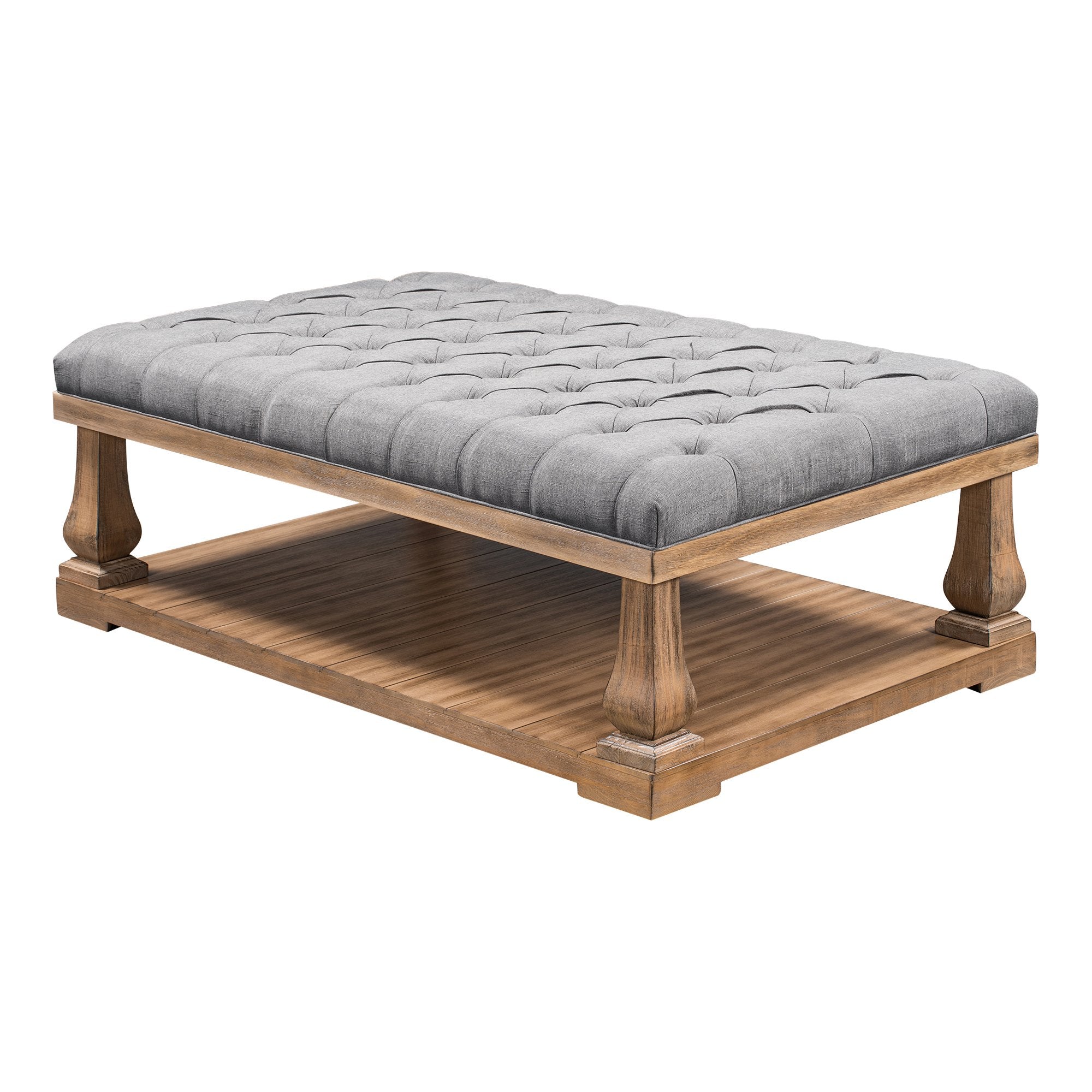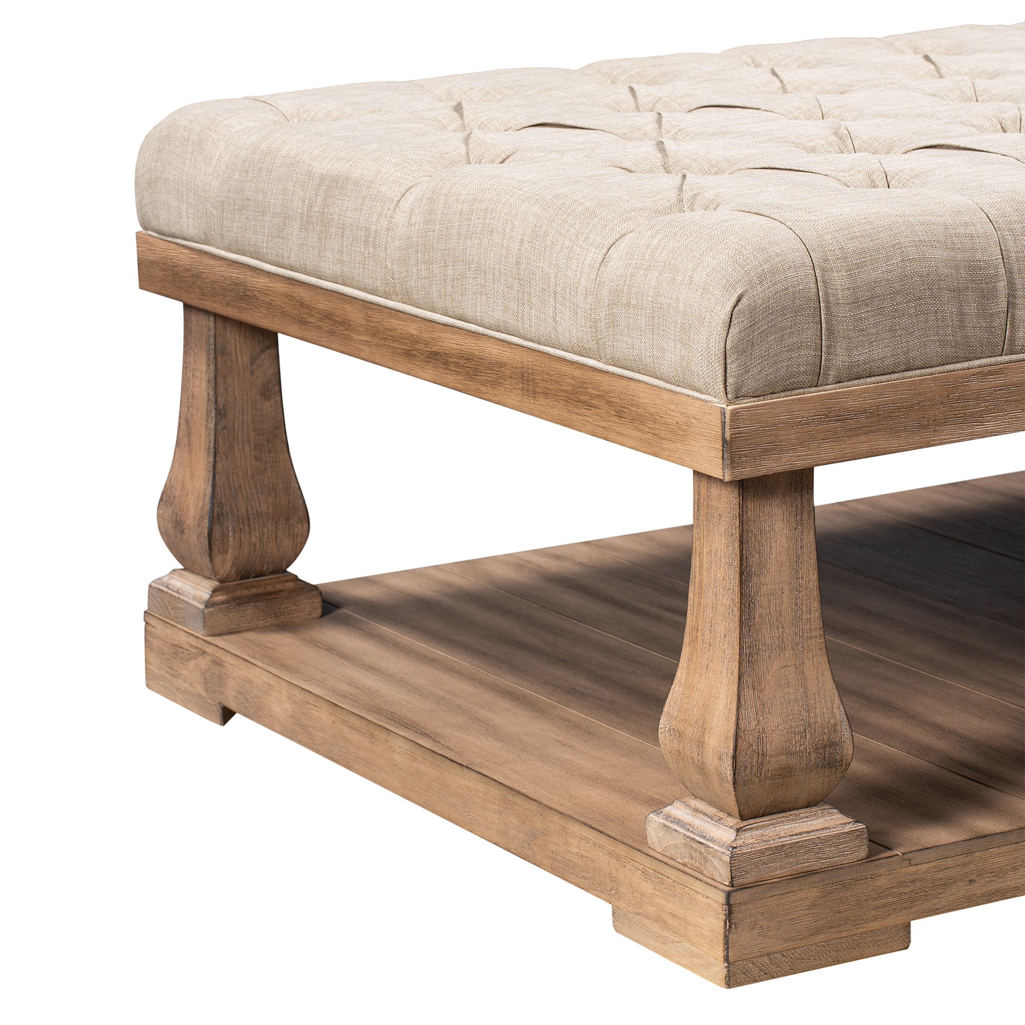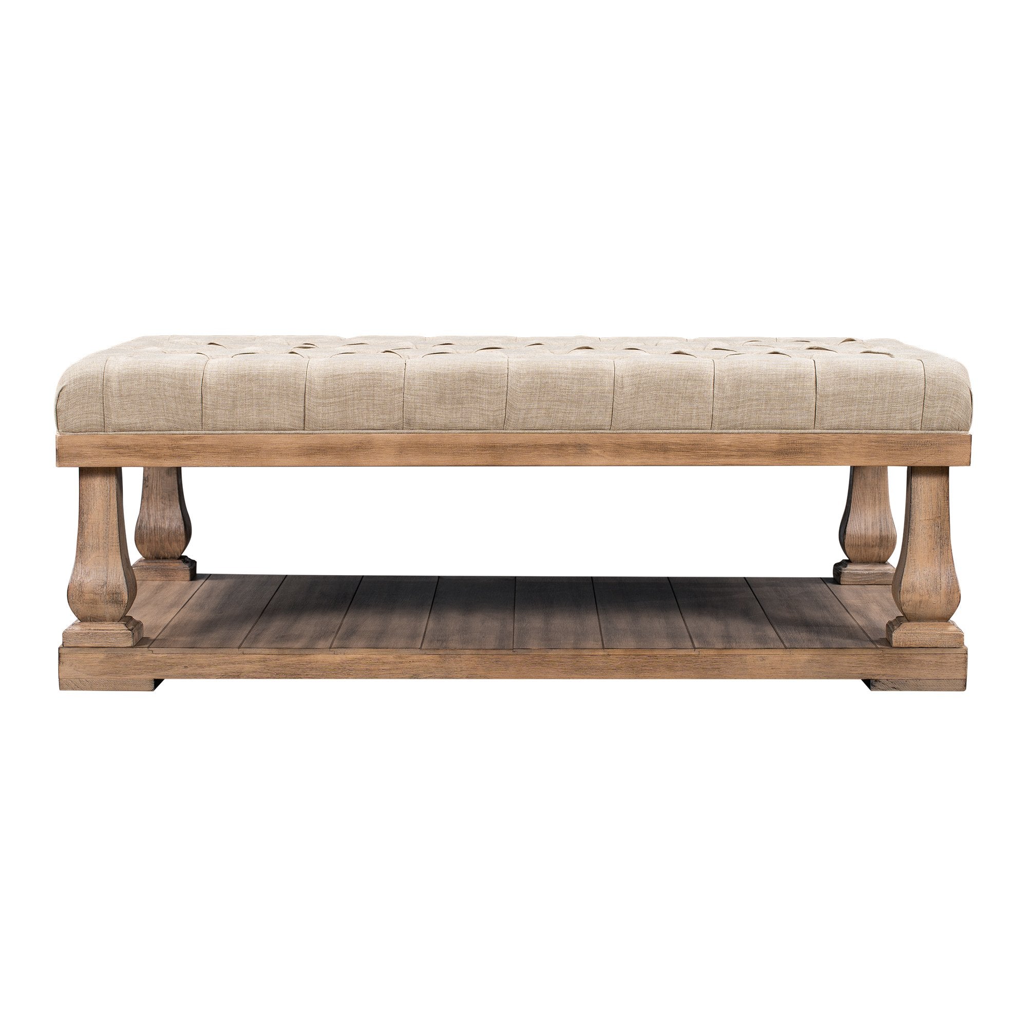 Carefully crafted with premium quality and eye-catching visuals in mind, this upholstered bench creates an elegant and gorgeous atmosphere to add a vintage charm to your home. Made with quality pine wood, the bench is smoothed and lacquered to perfection, retaining the natural color and texture of the original wood, for a classic rustic look. Featuring carved details throughout the wood body, the bench legs feature an entrancing curvature for a luxurious vintage accent that is sure to turn heads while also being thick in design for solid support. The soft high density foam cushion features dimpled accents for a luxury look and is upholstered in velvety soft polyester fabric, formulated for high wear-resistance and soft to the touch. No matter where it is placed, this bench is sure to become a highlight anywhere in your home. Covering all of your basic needs, this bench will soon become a household favorite; plenty of storage with its open shelf, a soft foam upper cushion for seating and carved wood detailing for elegance. As a perfect combination of beauty and practicality, this upholstery storage bench will be an instant upgrade to your space.