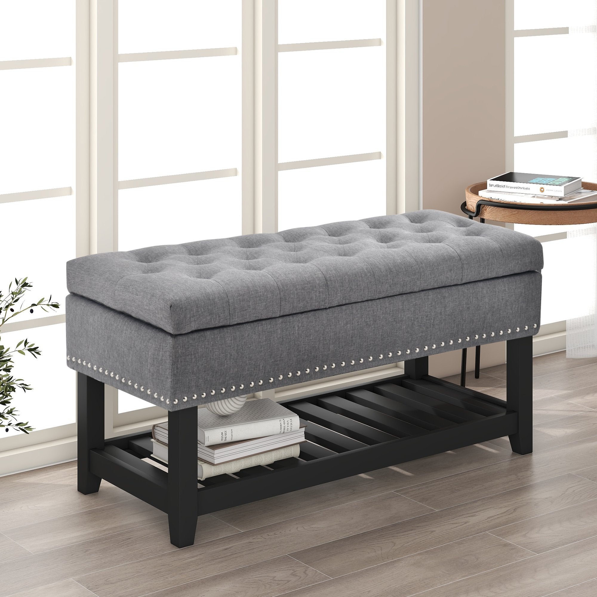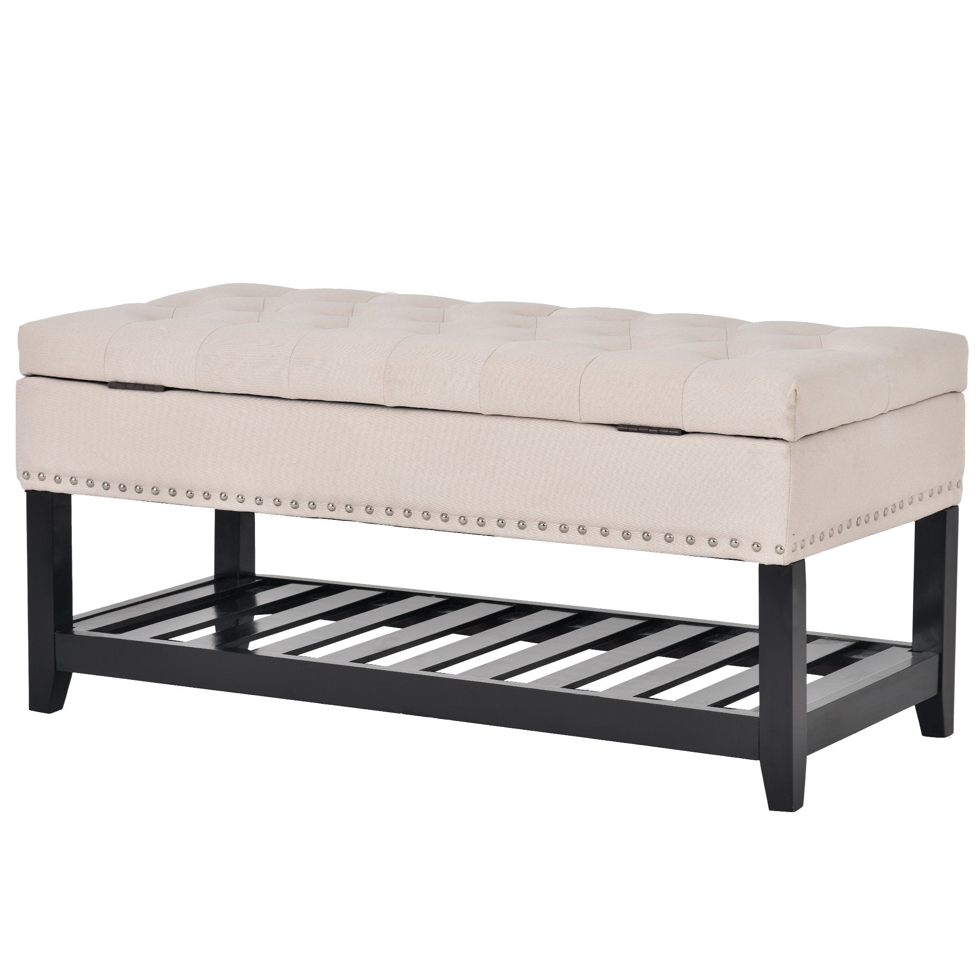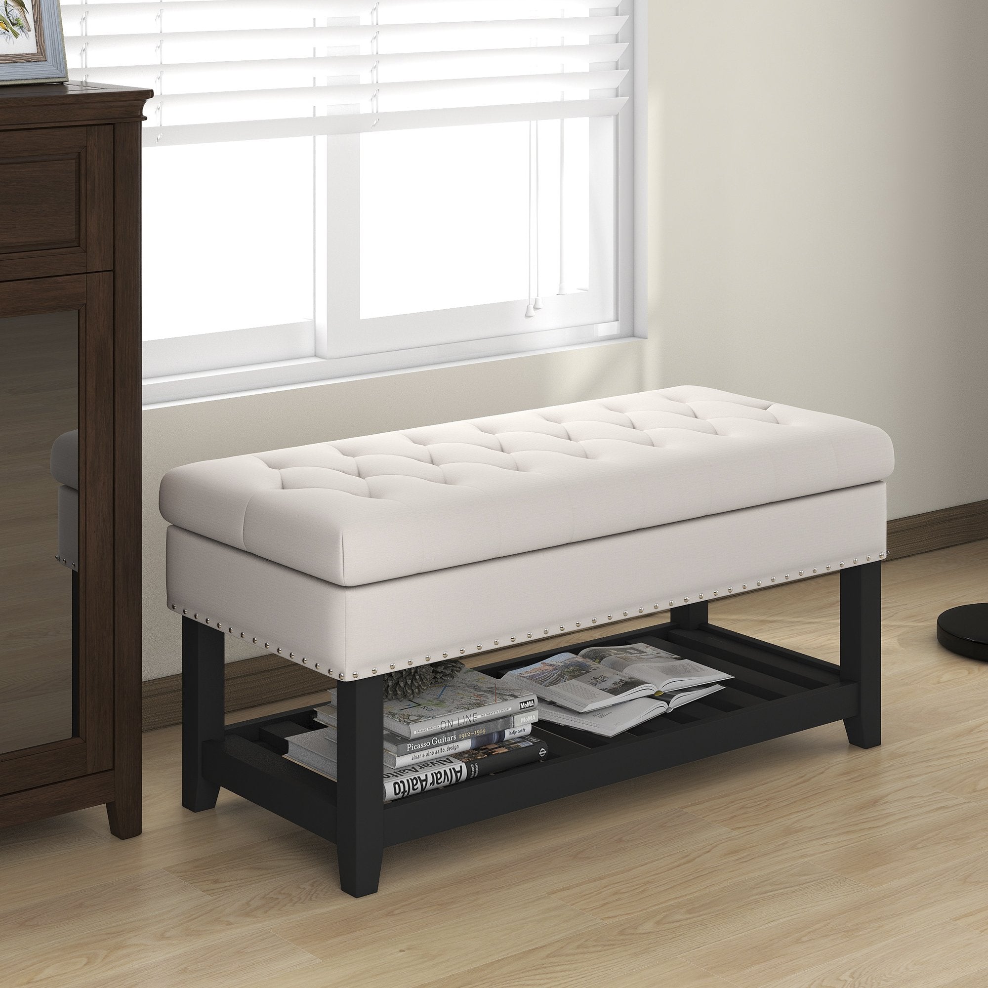 Storage Ottoman Bench, Entryway Bench with Rubber wood Legs