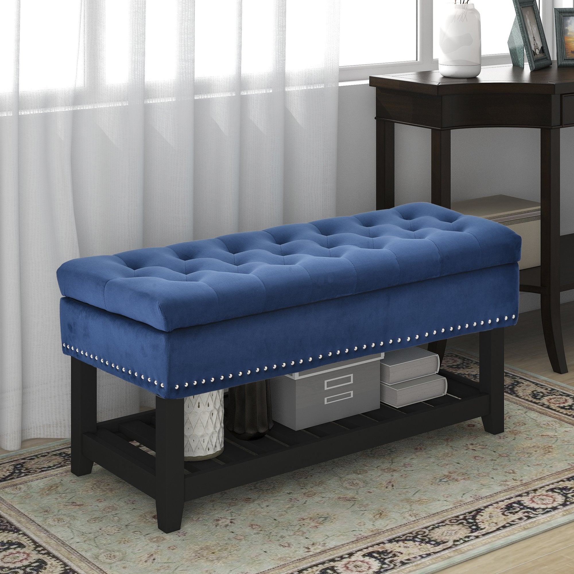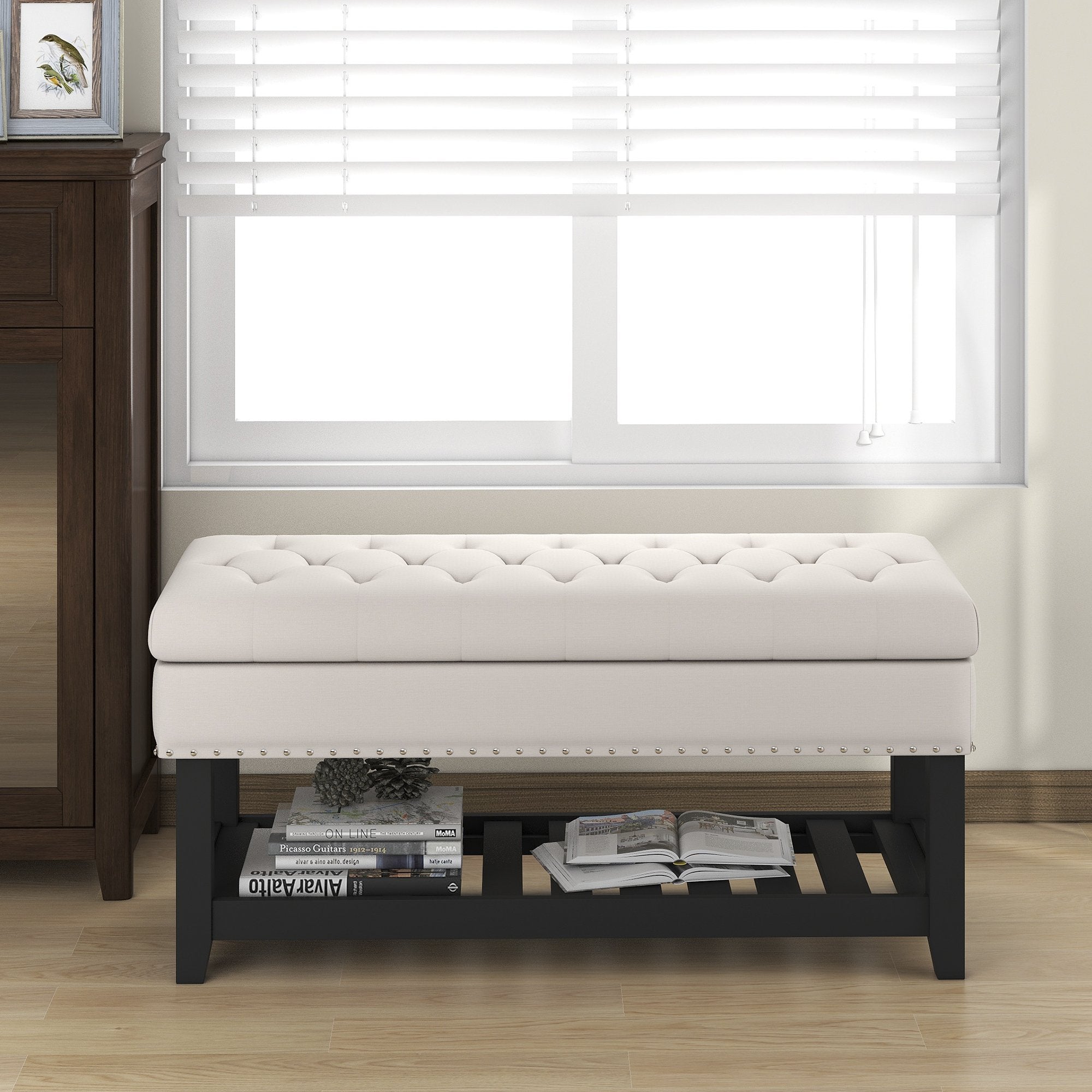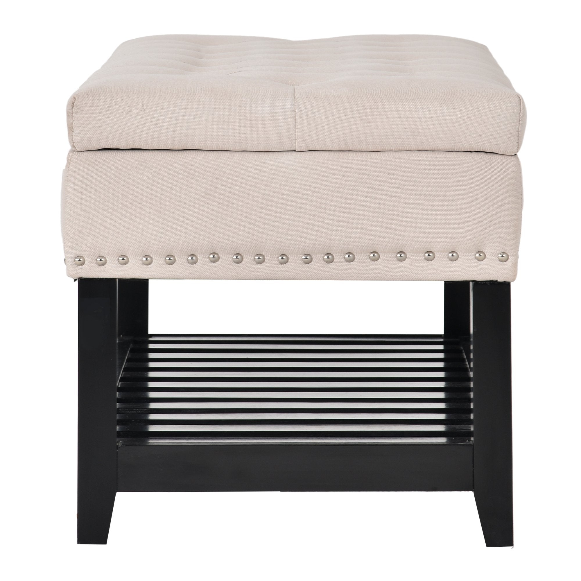 Storage Ottoman Bench, Entryway Bench with Rubber wood Legs