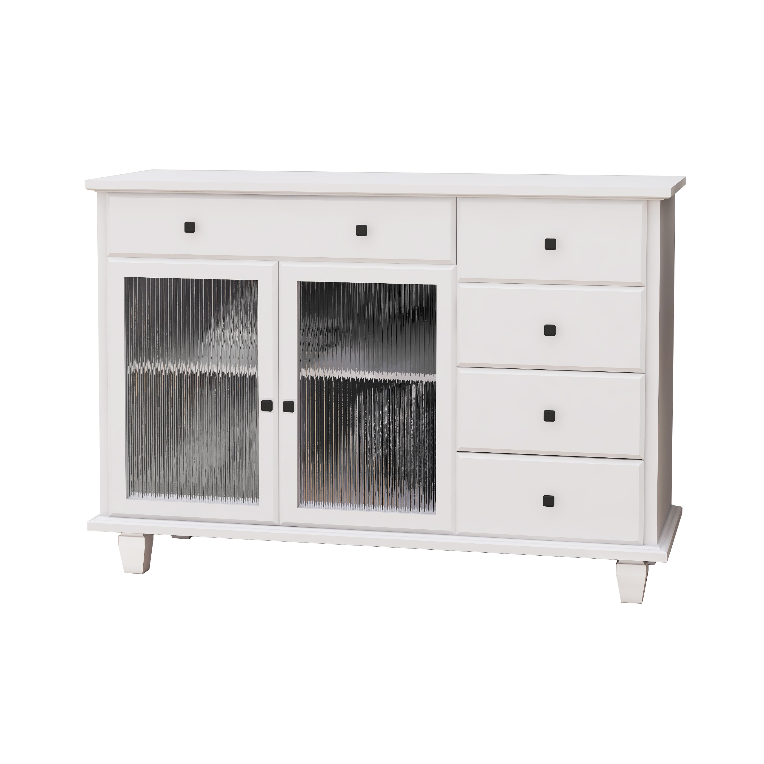 This storage cabinet offers a cabinet with glass doors and five small drawers for storing and organizing your belongings. This furniture can be used for multiple purposes, not only for the living room, but also for study for books and magazines, and for the kitchen for partition storage.