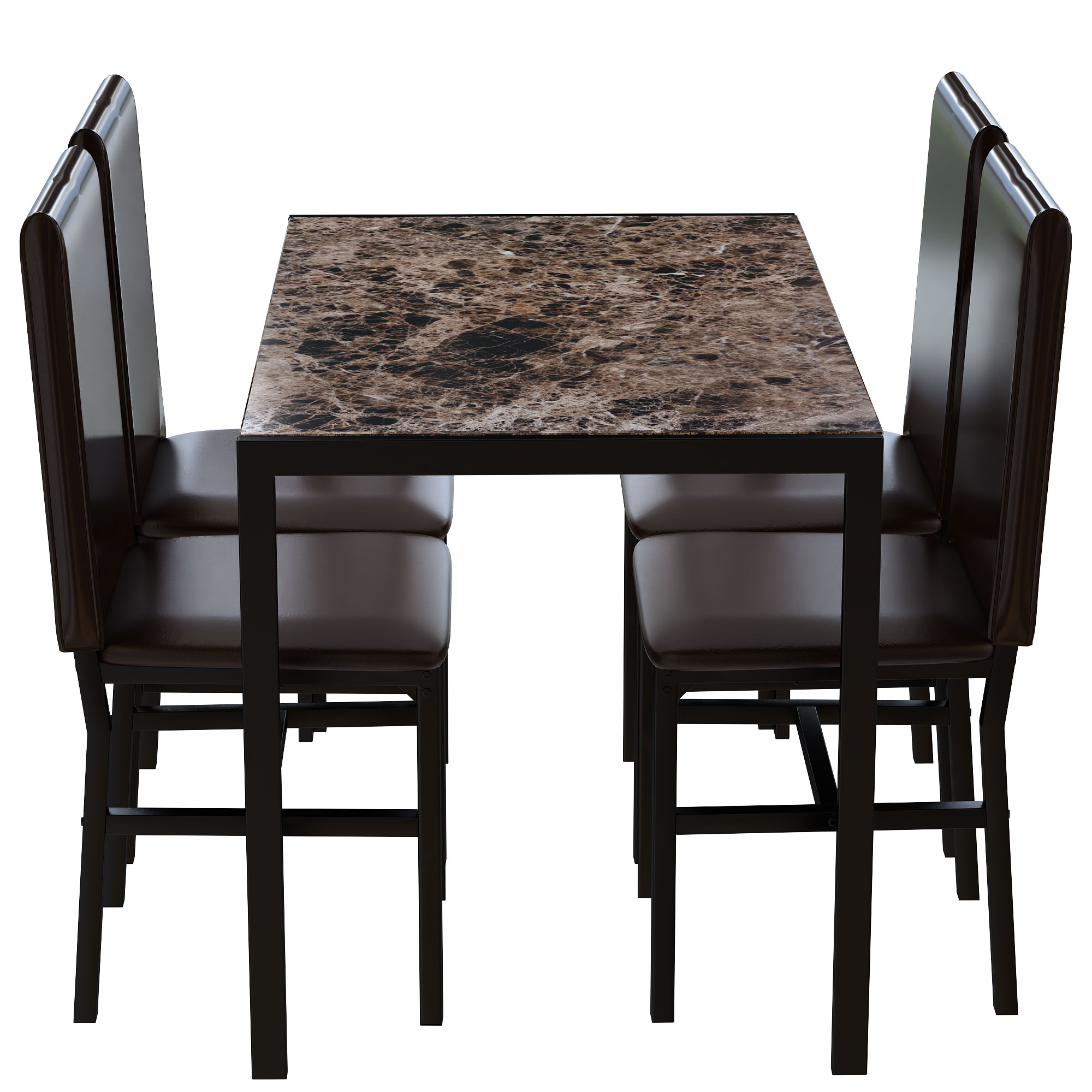 The artificial marble countertop dining table adds a touch of elegance and sophistication to your home. The smooth artificial marble countertop is suitable for the size of a small apartment and adds a gorgeous decoration to your home. The four matching chairs are equipped with high backs and upholstered seats to provide you with the ultimate comfort. This dining table set is made of metal and PU leather, durable and easy to maintain. It is not only suitable for any space in your home, but also can spend a better time with family and friends.