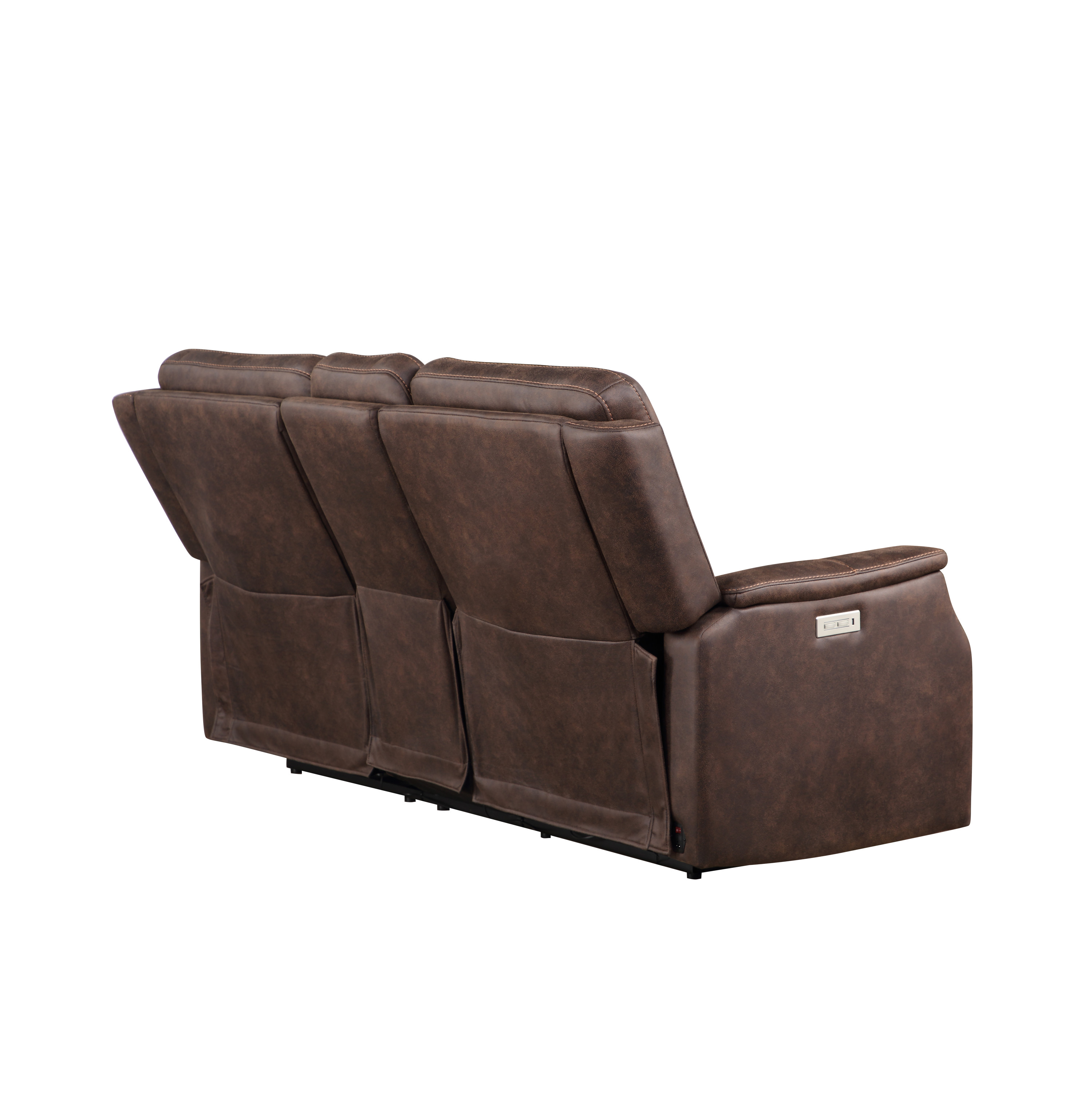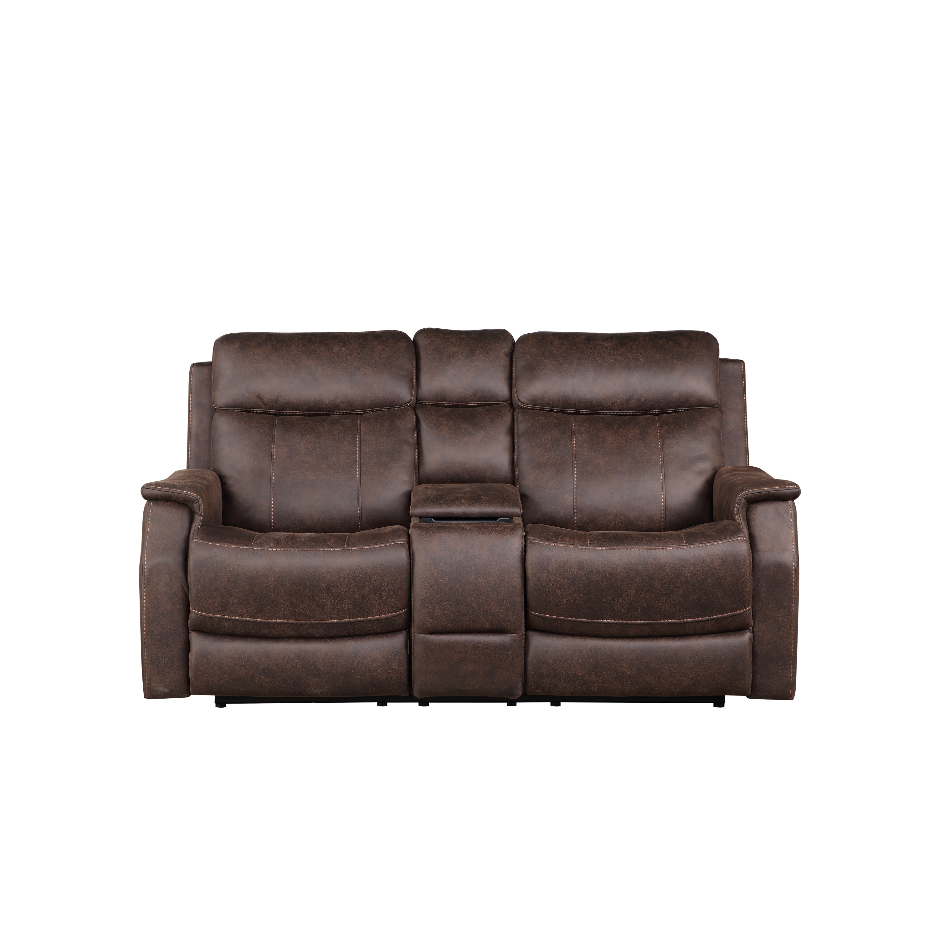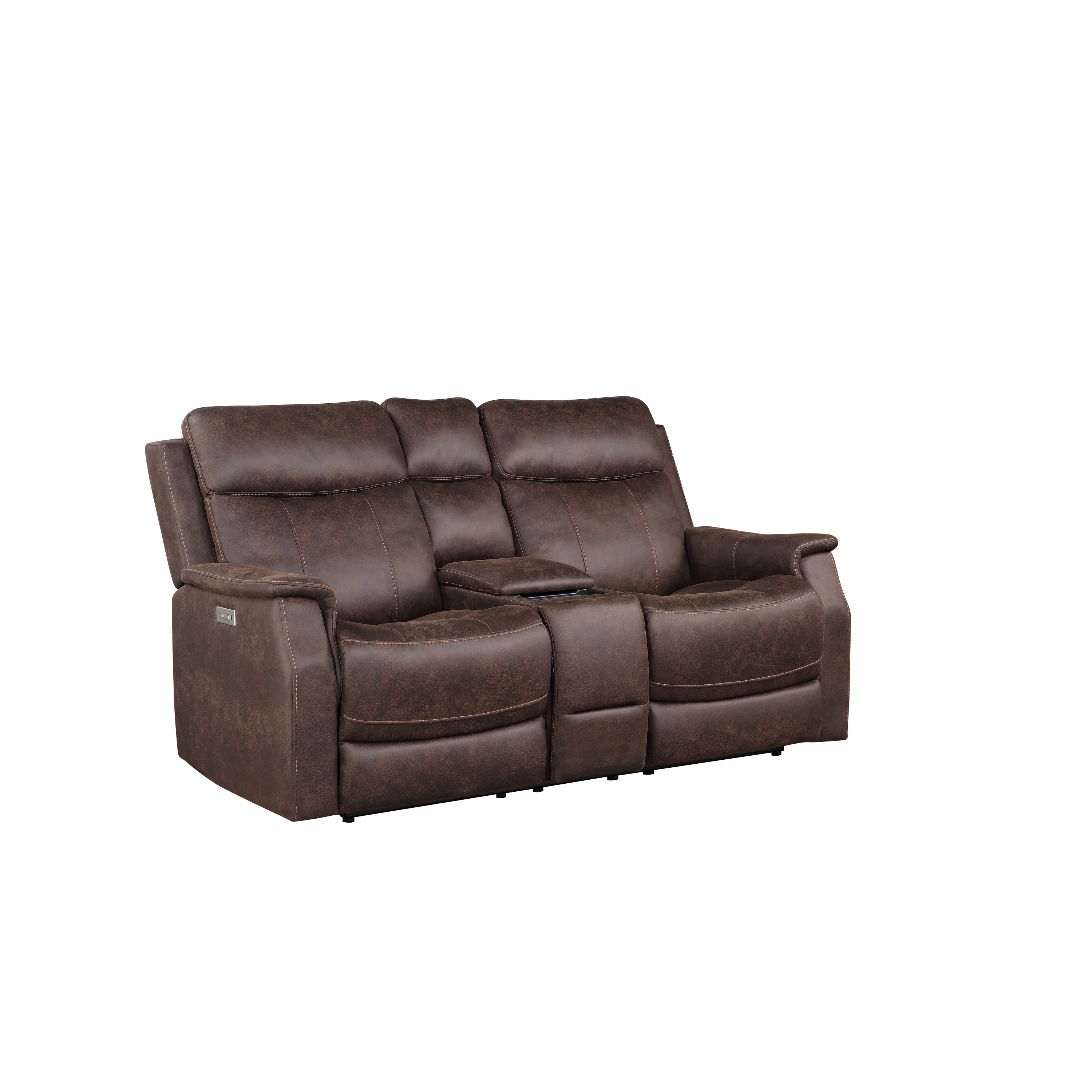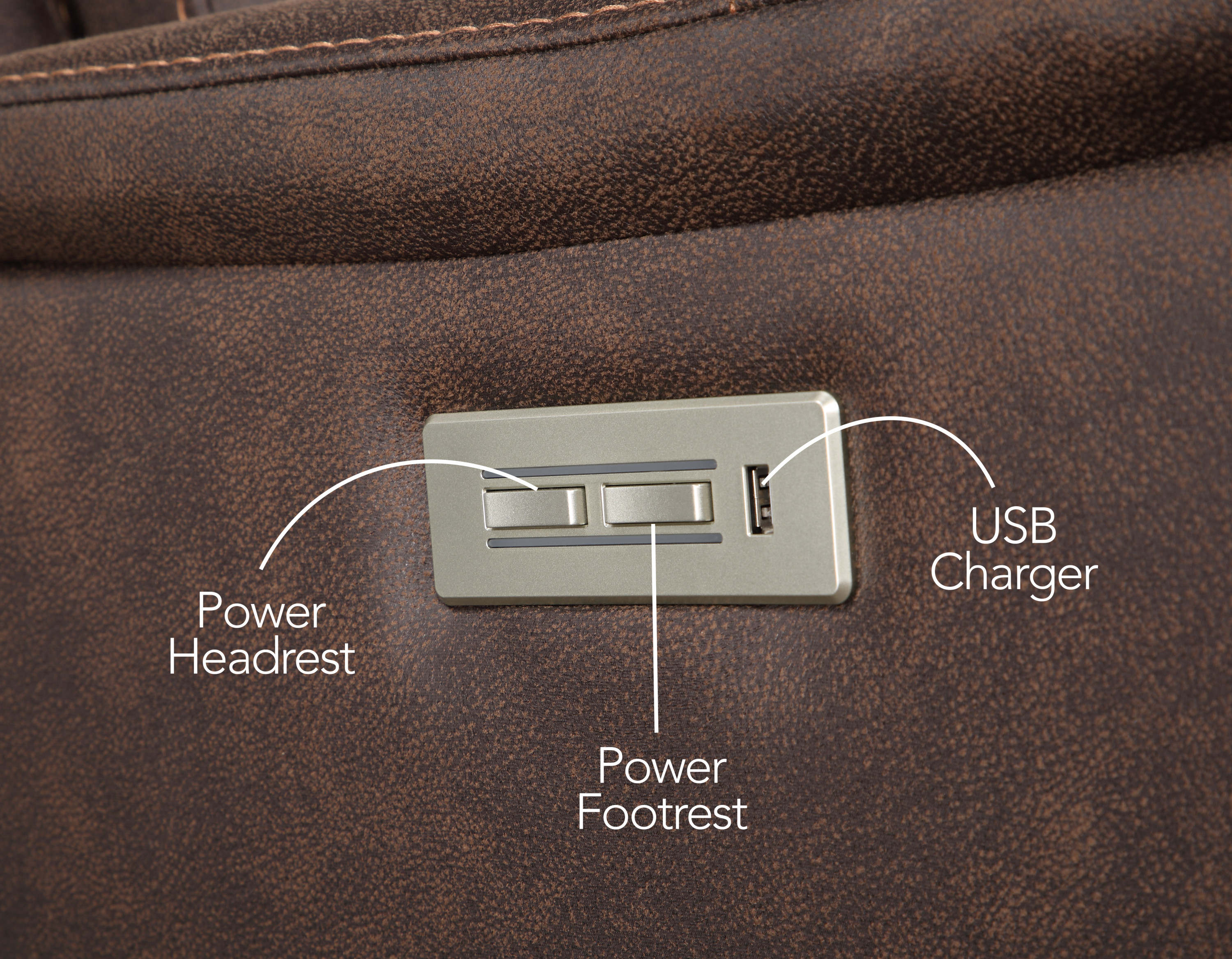 DimensionsCarton Dimensions L 84.5 x W 30.75 x H 27 Features-Leatherette cover-Power headrest and power footrest-Lift-Top Console has hidden storage and a built-in armrest-Pop-open front Console has two hidden cupholders Product DescriptionExperience the perfect blend of tailored luxury and contemporary comfort with the Valencia Pw/Pw Recliner Console. Its smartly tailored design features gentle shaped seats and a luxurious Nubuck-like leatherette cover that exudes sophistication. Sink into ultimate relaxation with the power headrest and power footrest functionalities, allowing you to find your perfect position effortlessly.The Valencia Console Loveseat offers more than just comfort—it also provides convenient storage and entertainment features. The center console conceals a hidden storage area and two cupholders, ensuring your essentials are within reach. With a control panel on each end, you have full control over the power functions, and the USB charging port keeps your devices powered up.Elevate your living space with the Valencia Pw/Pw Recliner Console and embrace the epitome of contemporary comfort. Its clean and sleek silhouette adds a touch of modernity to your room, while the luxurious upholstery invites you to unwind and relax. Create unforgettable moments of relaxation and style in this exceptional console loveseat.