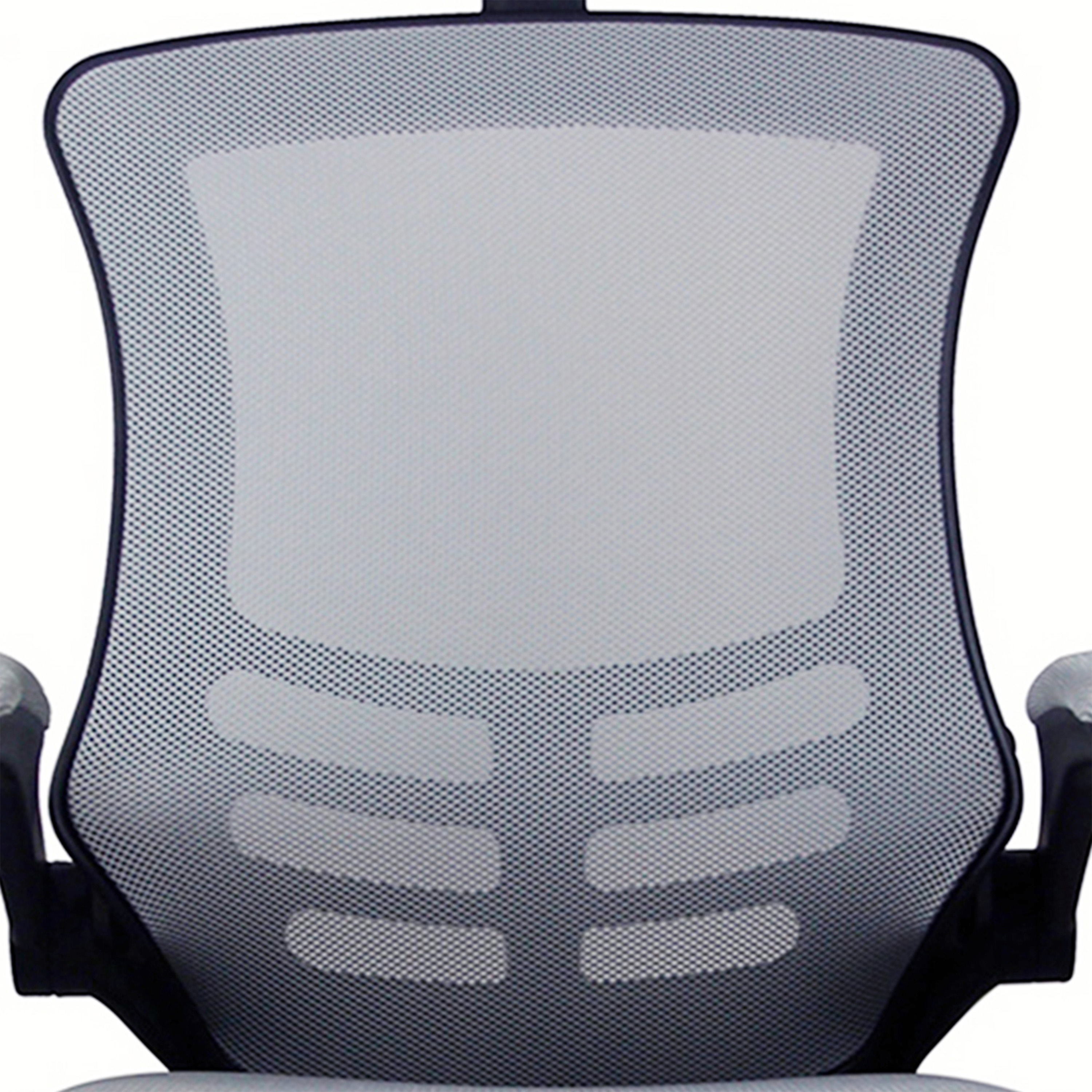 LONG DESCRIPTION : The Techni Mobili Executive High Back Mesh Chairs has a sleek, contemporary design and features breathable open mesh back support, a contoured mesh fabric seat cushion, height-adjustable headrest, padded flip-up armrests. The reclining back has a locking lever and a tension control knob. Includes dual non-marking casters and 5-star heavy-duty nylon base, which provides stable mobility. Can fit people up to 220lbs. Ready and easy to assemble. Color: Silver Grey