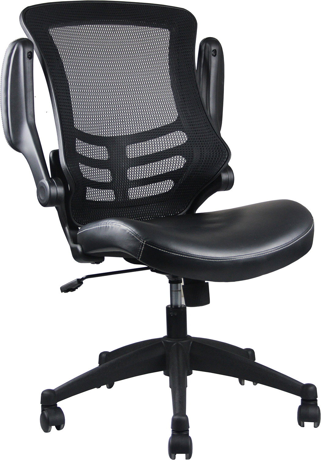 LONG DESCRIPTION : This Techni Mobili Stylish Mid-Back Mesh Office Chair is a modern seat made of TechniFlex upholstery, has many features such as padded flip-up armrests, pneumatic seat height adjustment and a tilt tension control for reclining. Can comfortably fit people with up to 220lbs. Sits on large durable nylon base with non-marking nylon casters. It is ready and easy to assemble. Color: Black
