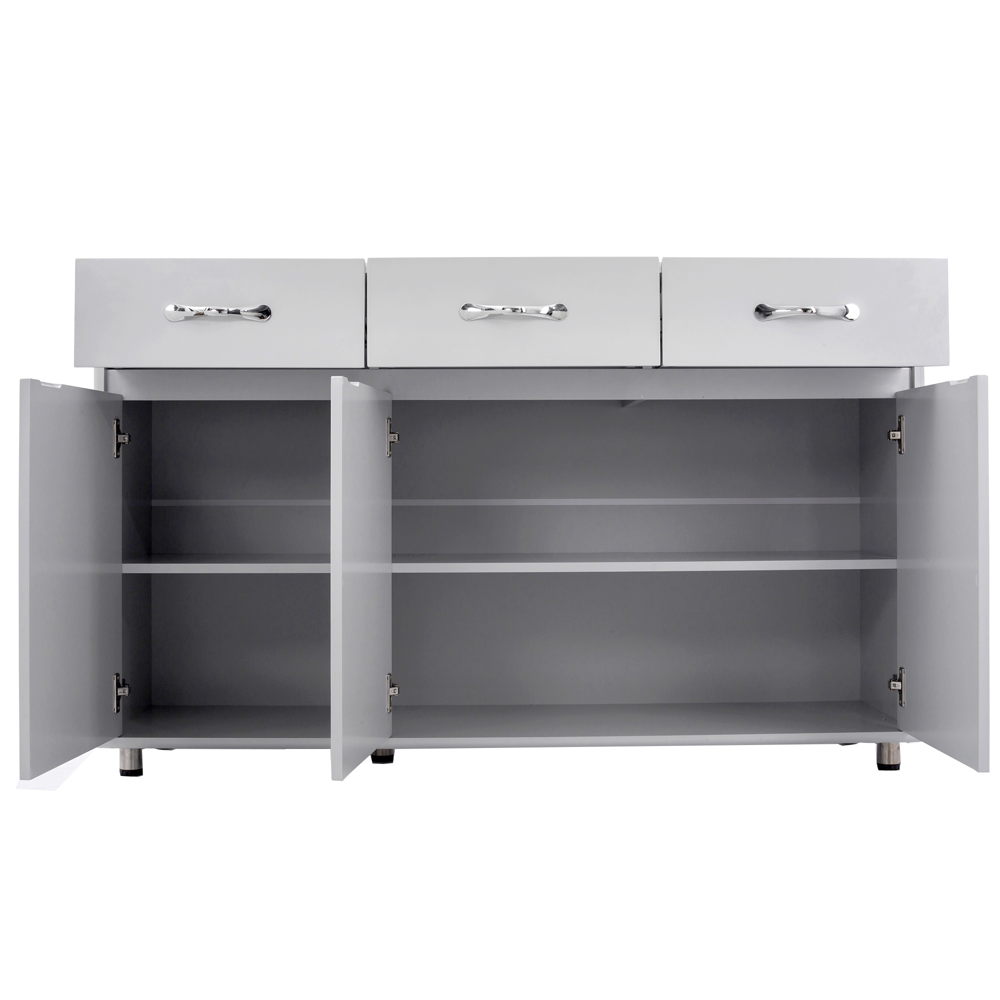 Gray cabinet, with 3 drawers and 3 doors, 2 shelves of different sizes, large storage space, to meet your different storage needs. The simple design style makes it very suitable for your home decoration.