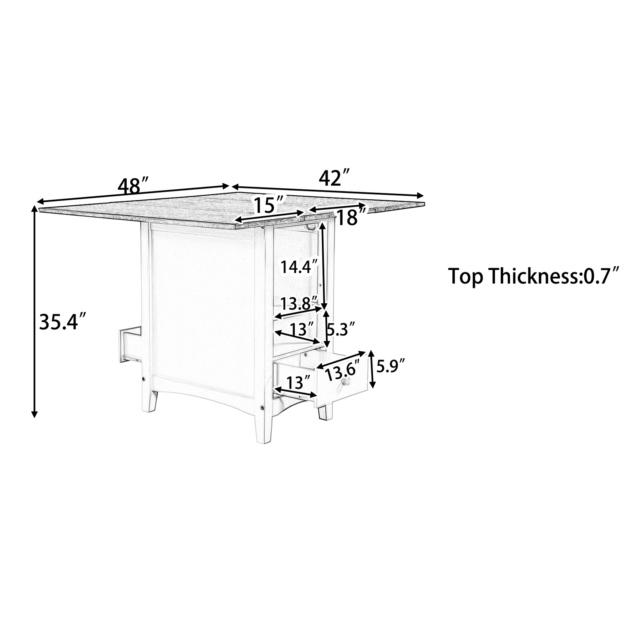 Overall Product Dimension | Dining Table: (18-48)x42x35.4inch(LXWXH) Tabletop thickness:0.7inch Drawer size:13.6x13x5.9inch(LXWXH) |