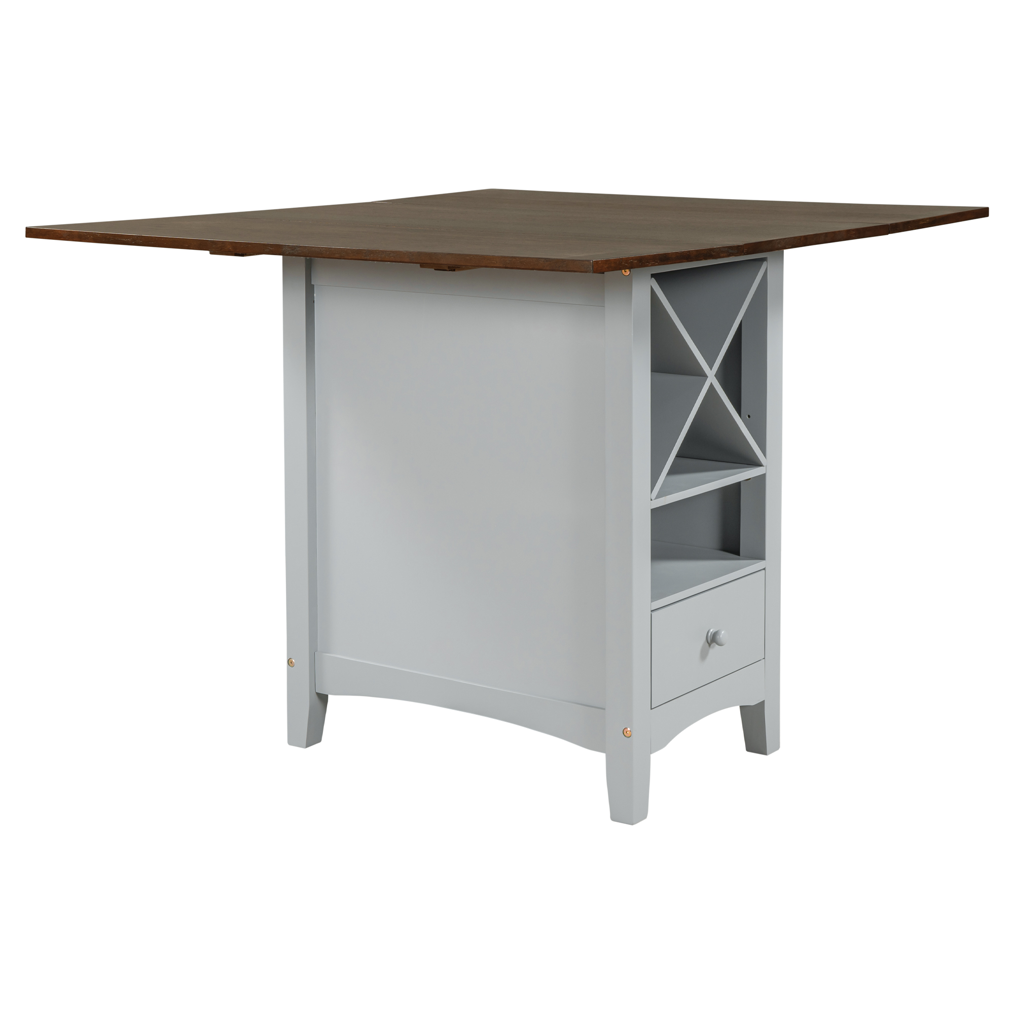 TOPMAX Farmhouse Wood Counter Height Dining Table with Drop Leaf, Kitchen Table with Wine Rack and Drawers for Small Places, Cherry+Gray