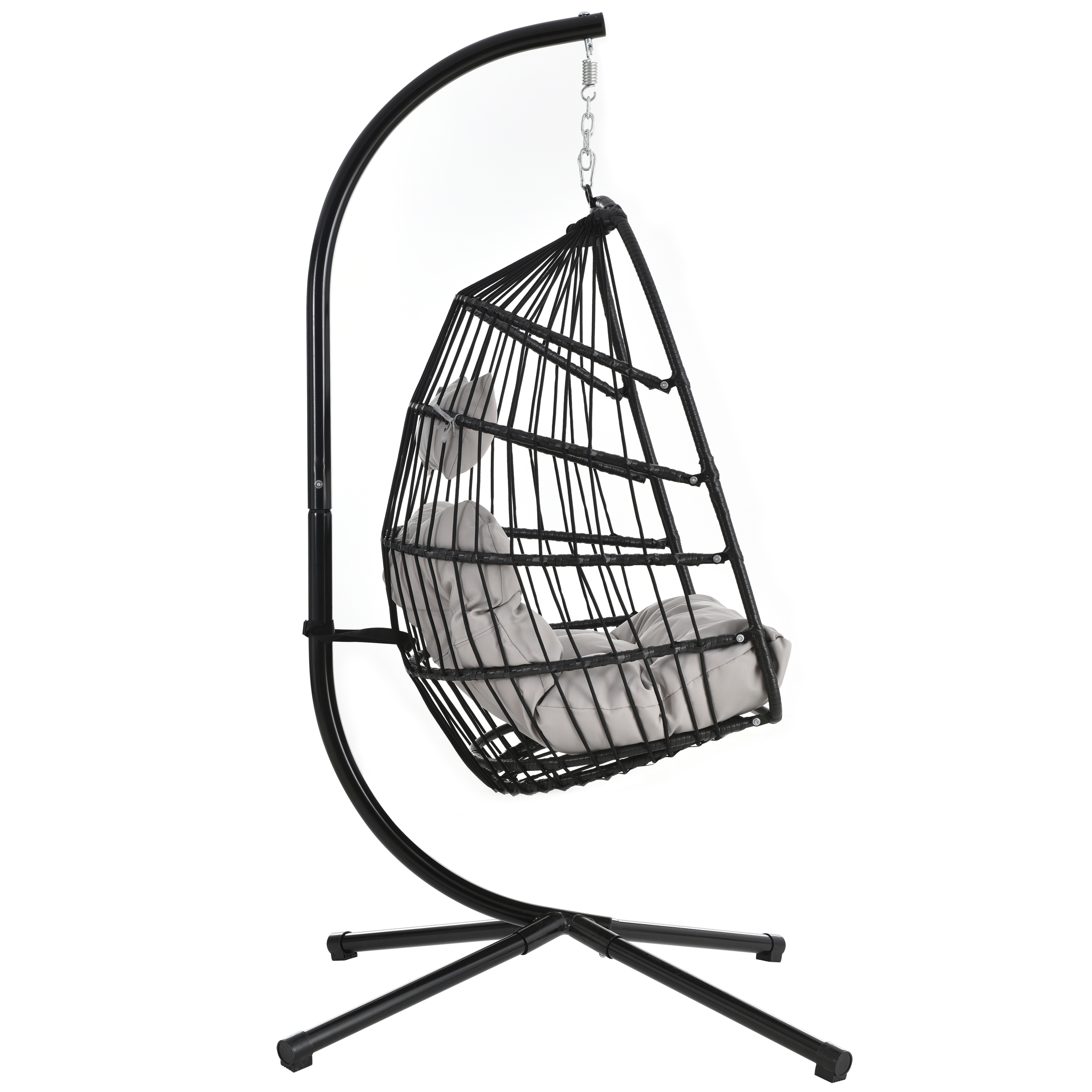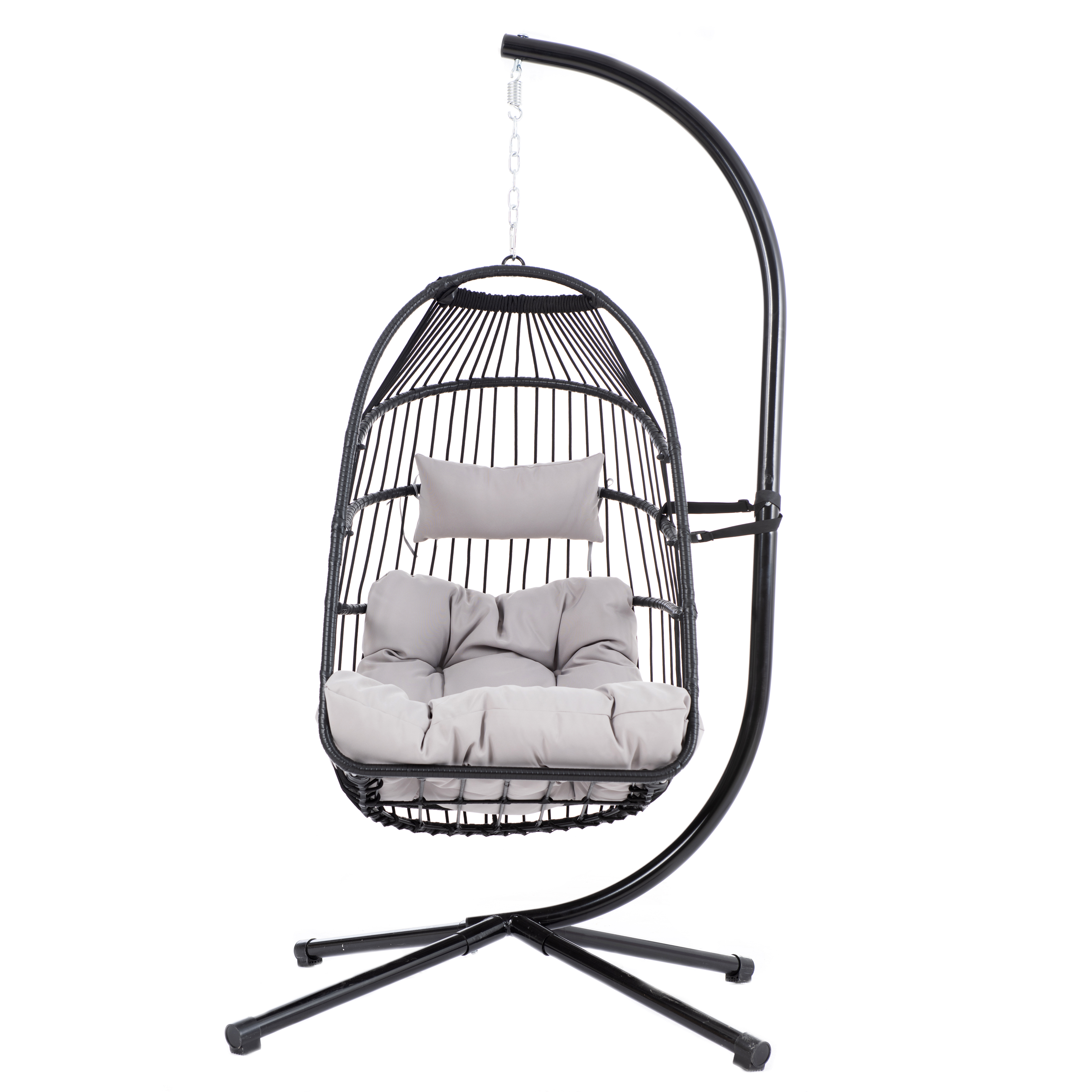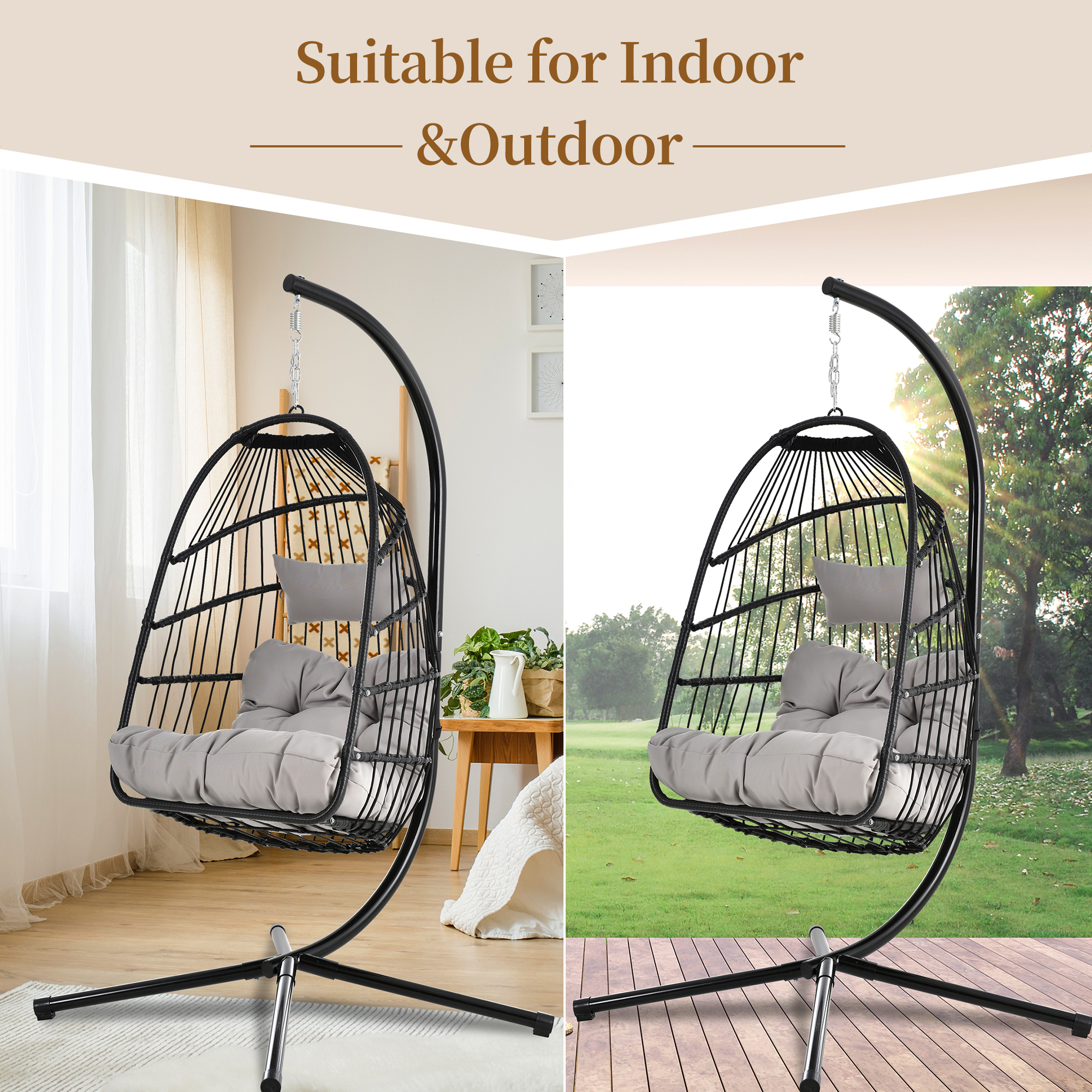 For your convenience, one box will come and include all of the parts like stand, frame, cushion,pillow, hardware and a detailed instruction. Besides, the cushion and pillow come with zippers for easily clean. To improve safety, a 23.6"L safety strap is offered for each chair so that the chair can be fixed with stand to avoid falling.