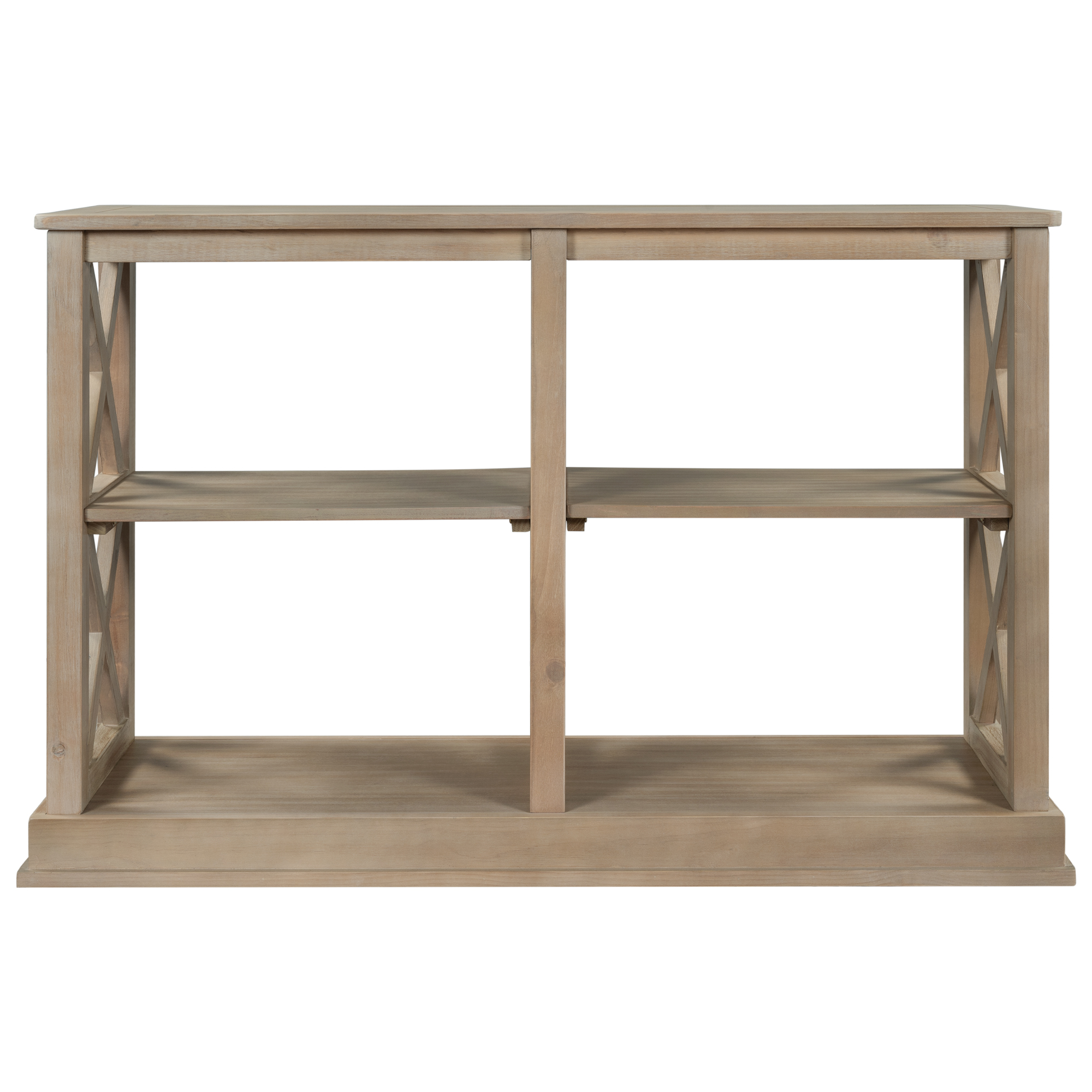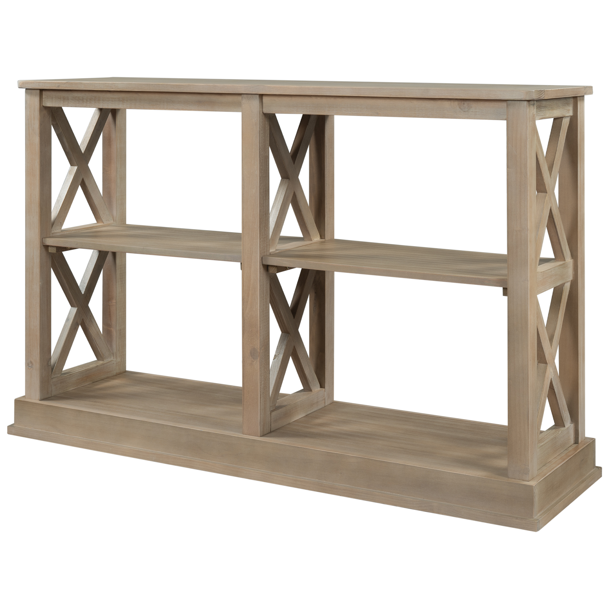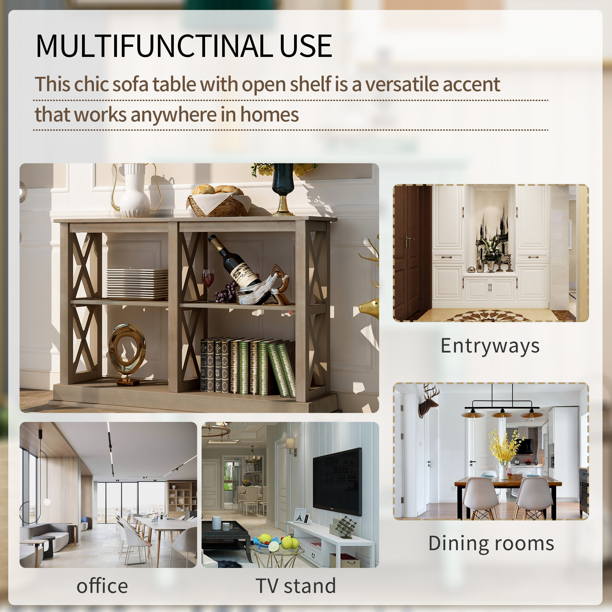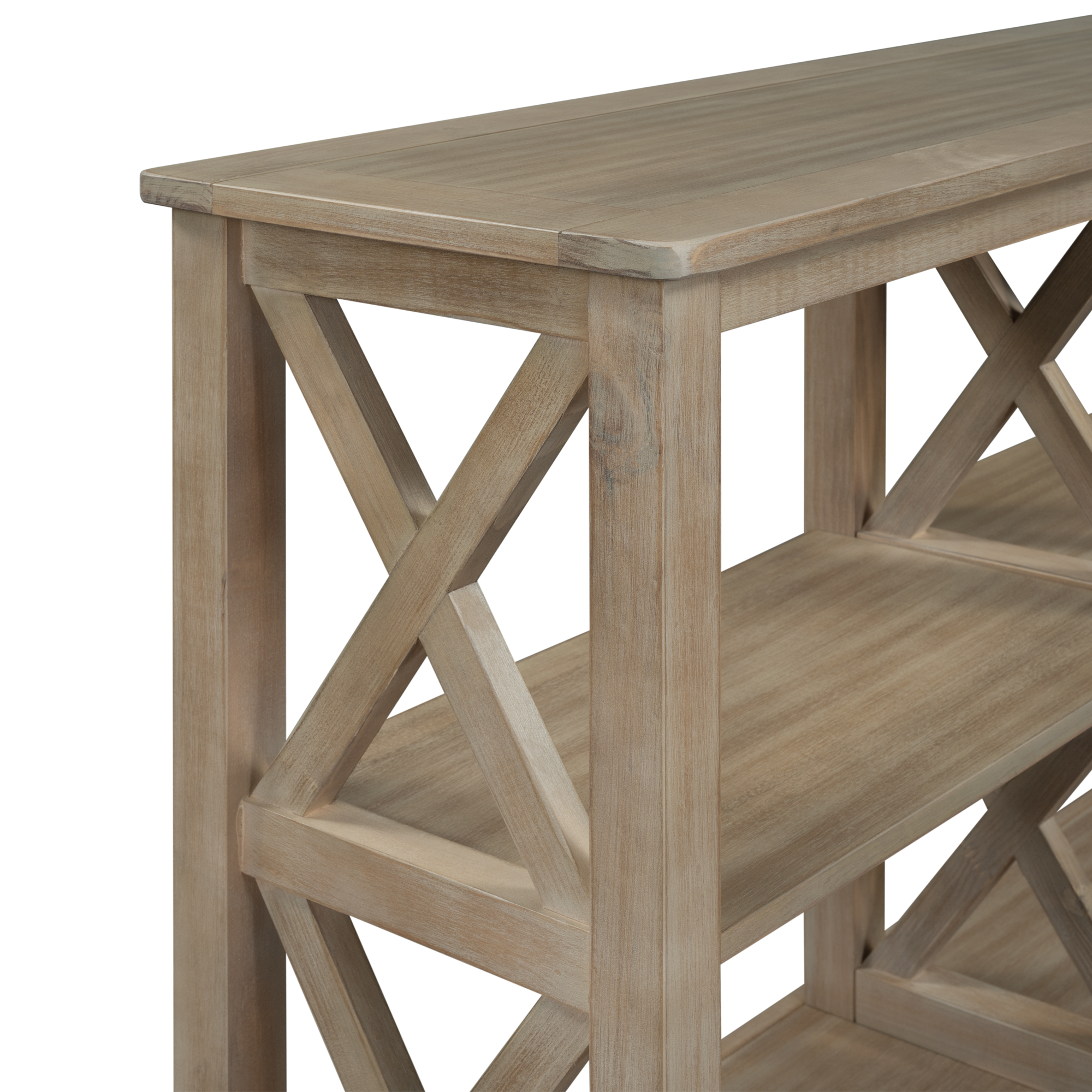 Console Table with 3-Tier Open Storage Spaces and “X” Legs, Narrow Sofa Entry Table for Living Room, Entryway and Hallway (White Wash)