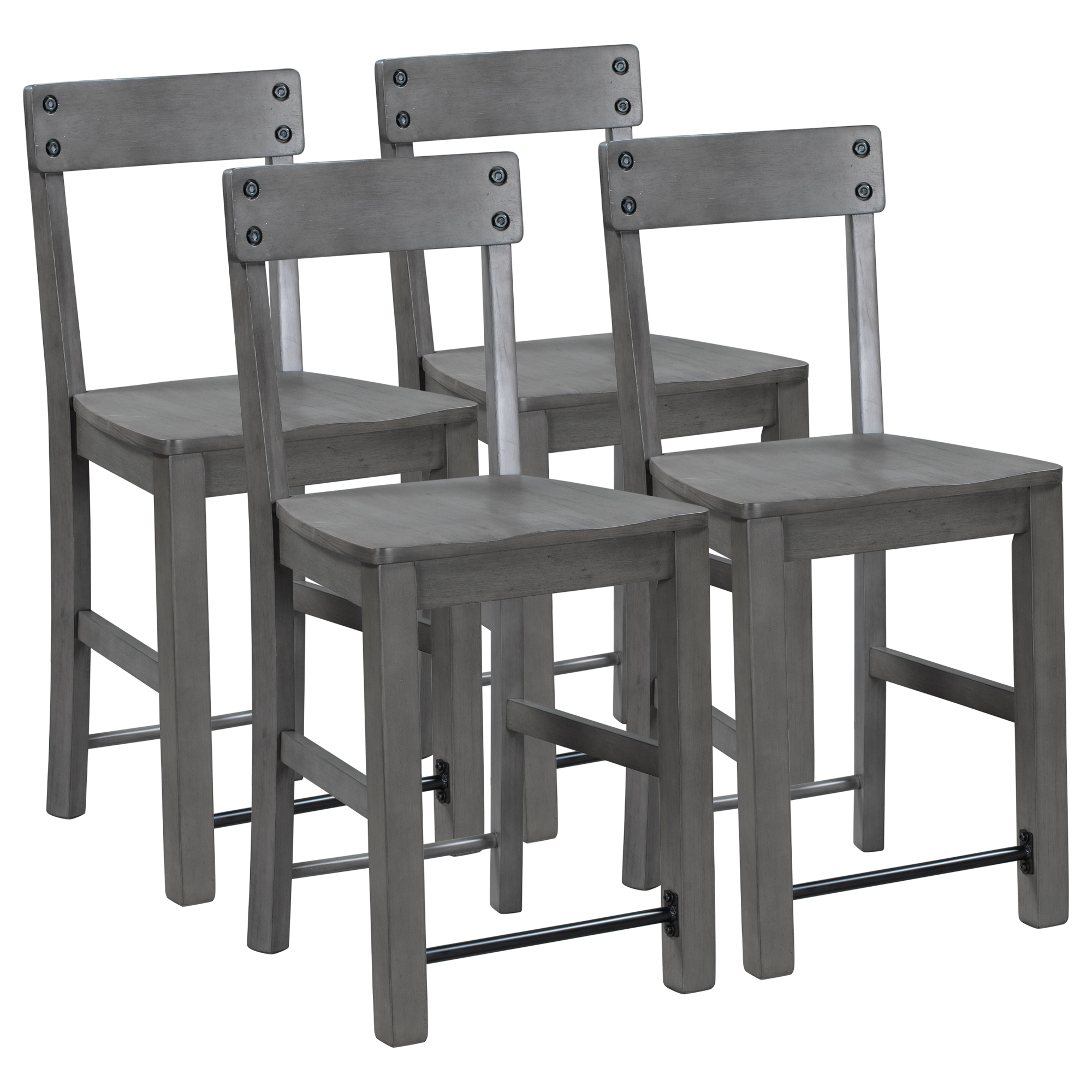 TREXM Counter Height Dining Chairs Industrial Style Wood Dining Room Chairs with Ergonomic Design, Set of 4 (Gray)