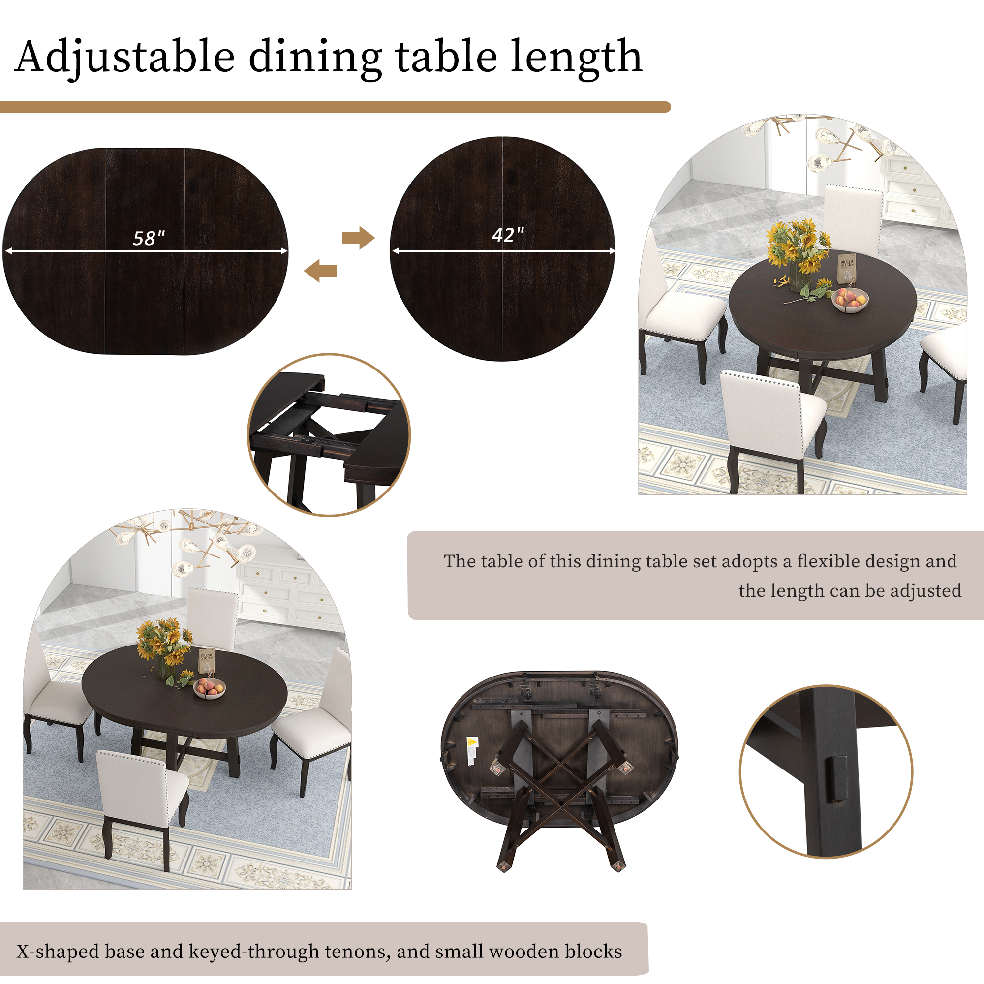 With round tabletop and X-shaped base, this table represents a elegant and temperament atmosphere. Moreover, the adjustable dining table length makes this dining set suitable for any size room.