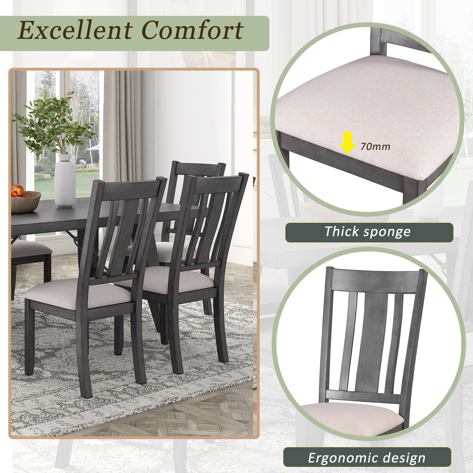 2.Excellent ComfortThe cushions of wooden chairs are covered with thick sponge, and the ergonomic design of the chair back is scientific, which ensures your comfort and allows you to enjoy a better seating experience. The cushion thickness is 70 mm. The hollow back of the chair is beautiful and comfortable, so you won't be disappointed by choosing this dining room set.