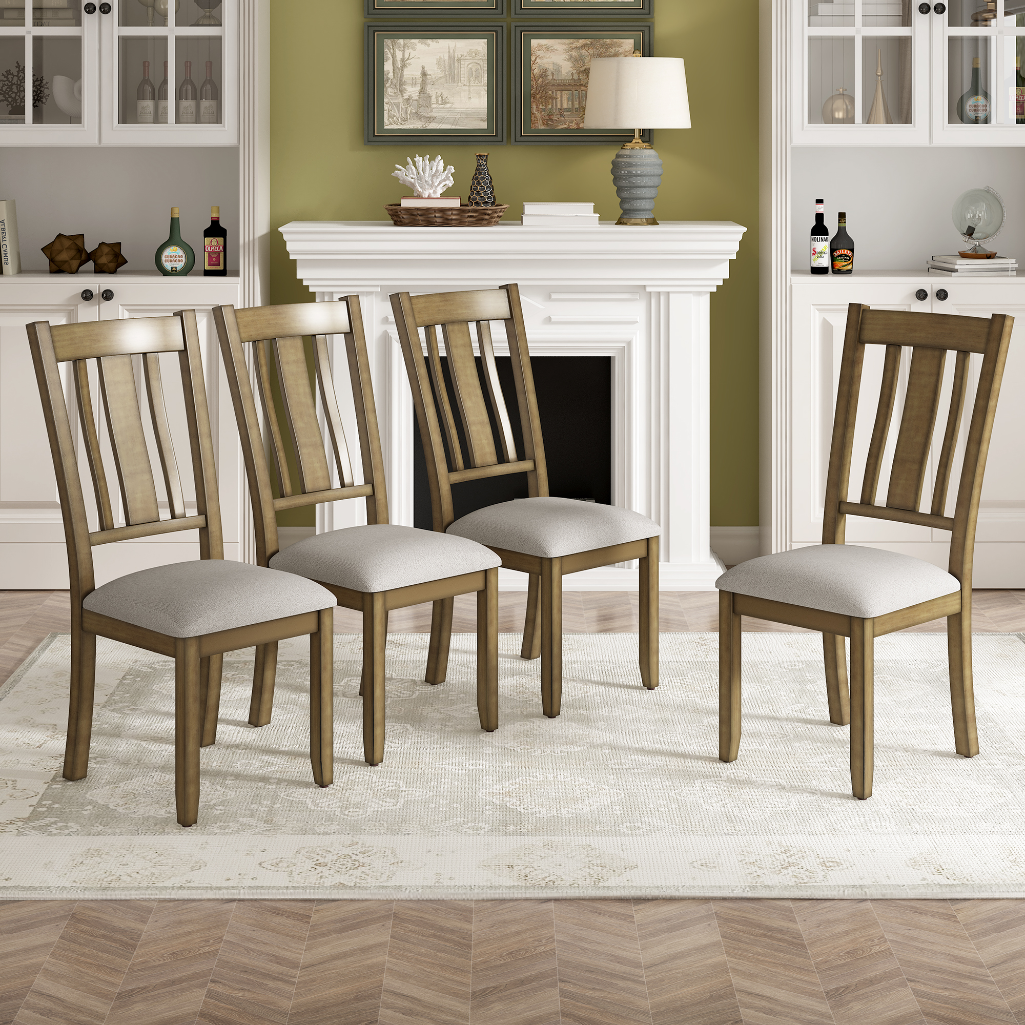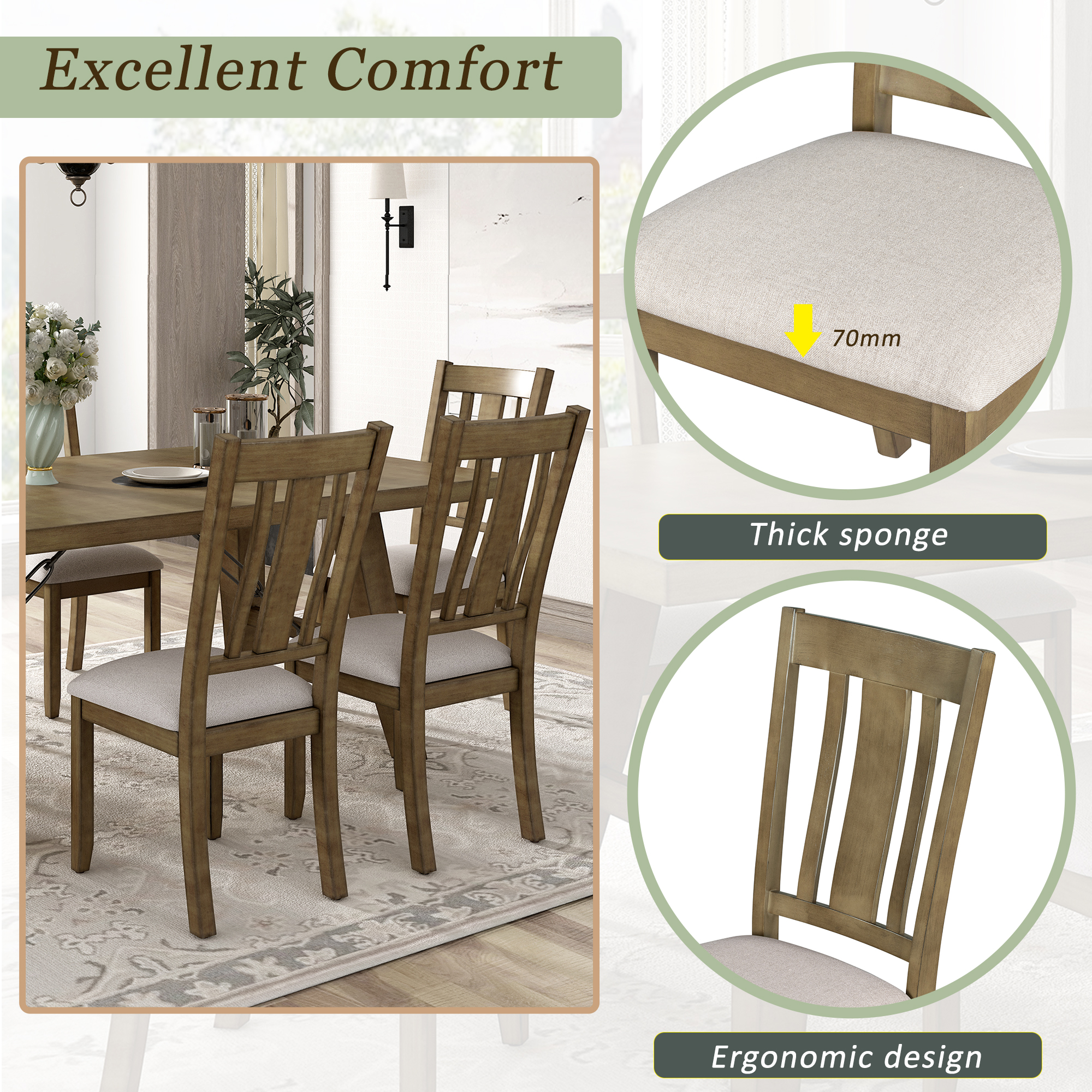 2.Excellent ComfortThe cushions of wooden chairs are covered with thick sponge, and the ergonomic design of the chair back is scientific, which ensures your comfort and allows you to enjoy a better seating experience. The cushion thickness is 70 mm. The hollow back of the chair is beautiful and comfortable, so you won't be disappointed by choosing this dining room set.