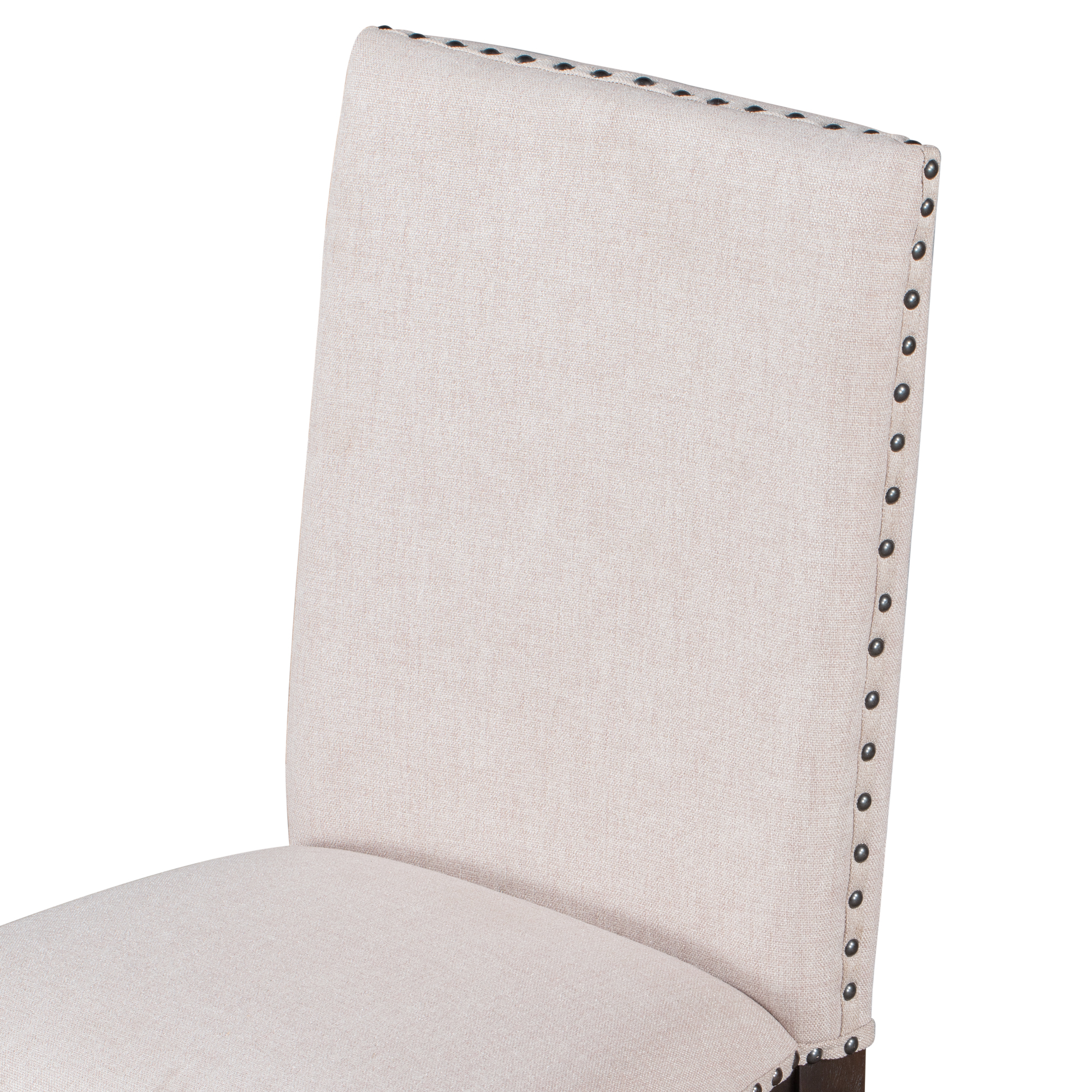 Our Dining Chair is deeply cushioned and richly upholstered in top-quality fabrics. Antique-bronze nailheads outline the seat and back. Comfortably seats up to 4 people. The thickness of cushion of chairs is 2.75 inches to guarantee wonderful using experiences.4. Comfortable Experience