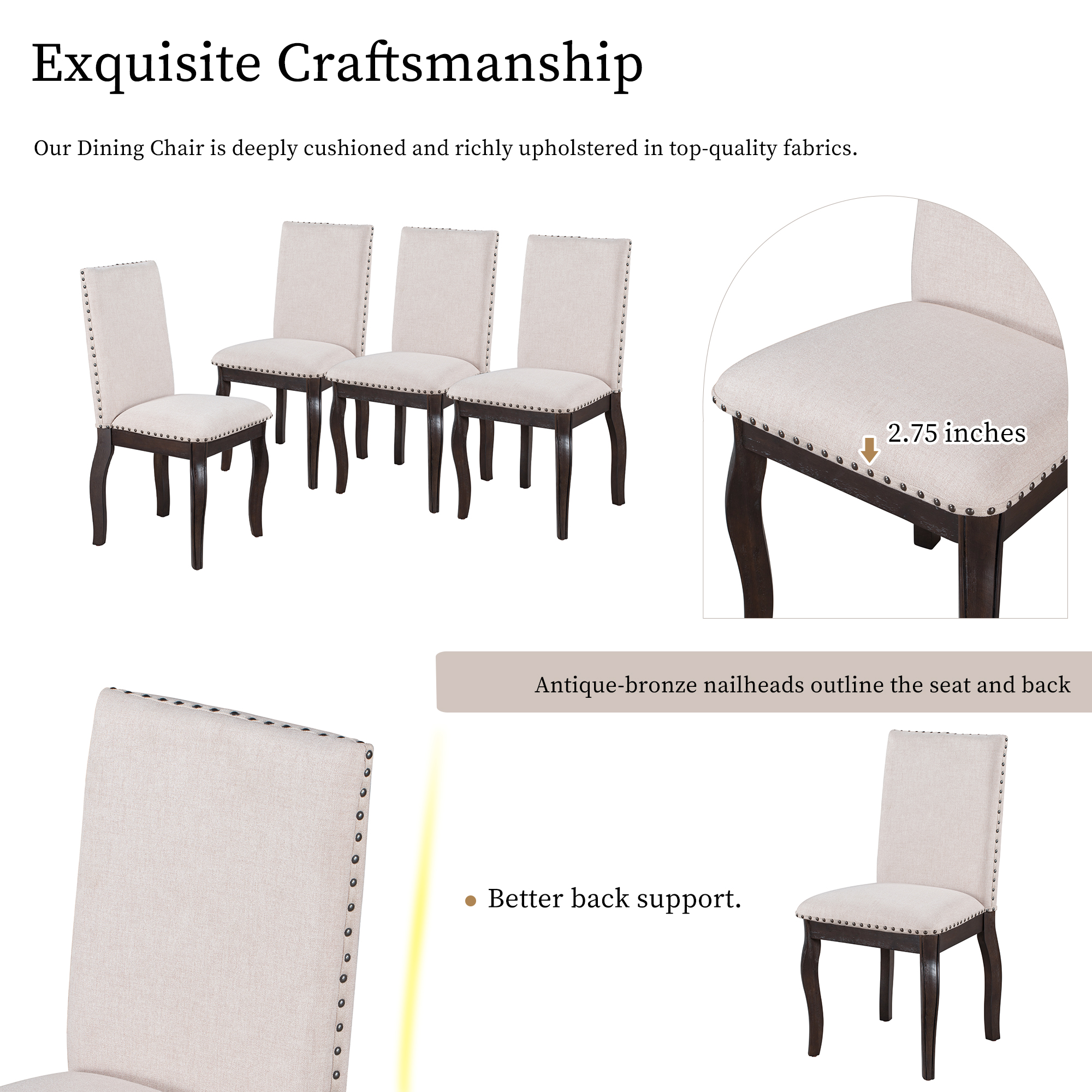 TREXM Set of 4 Dining chairs Wood Upholstered Fabirc Dining Room Chairs with Nailhead (Espresso)