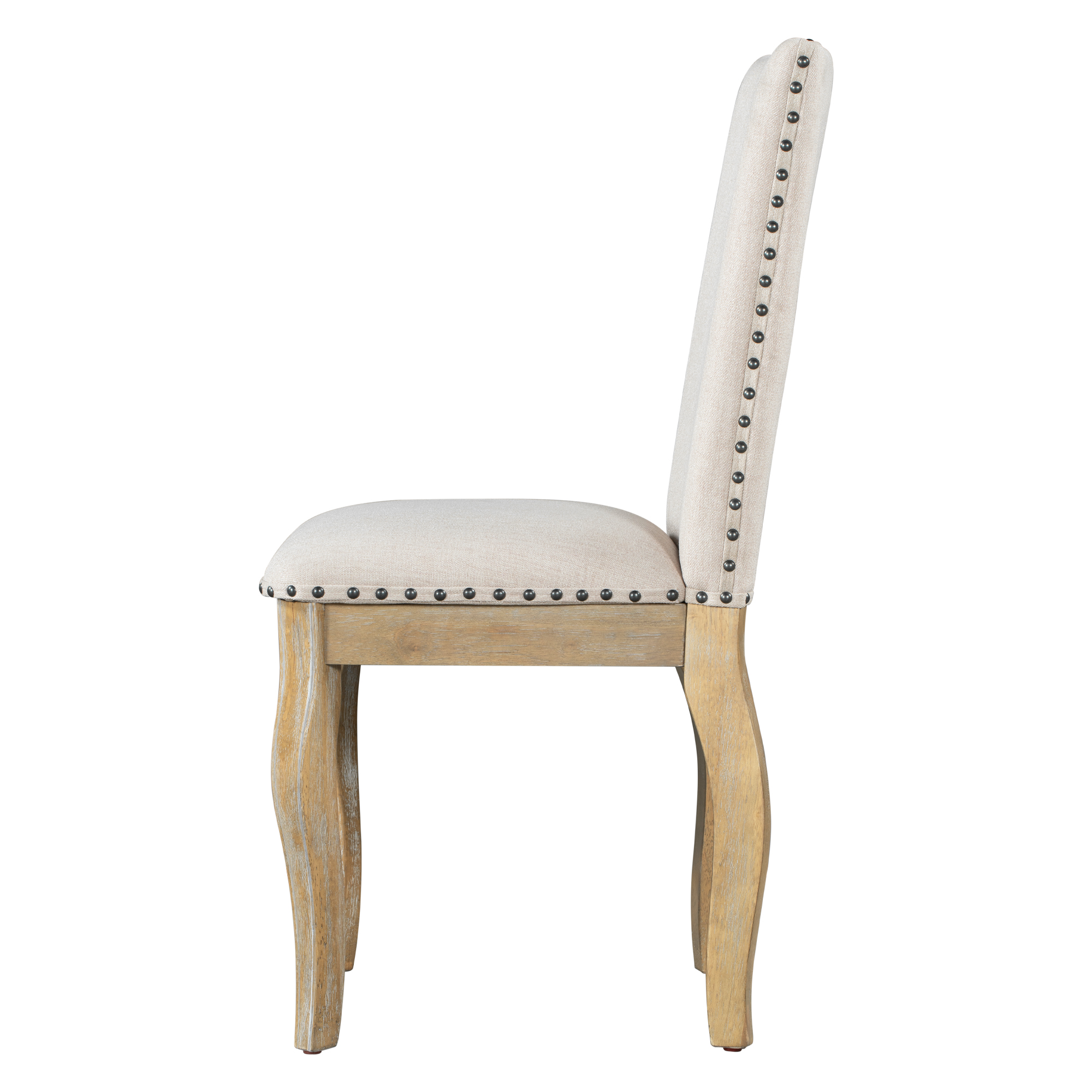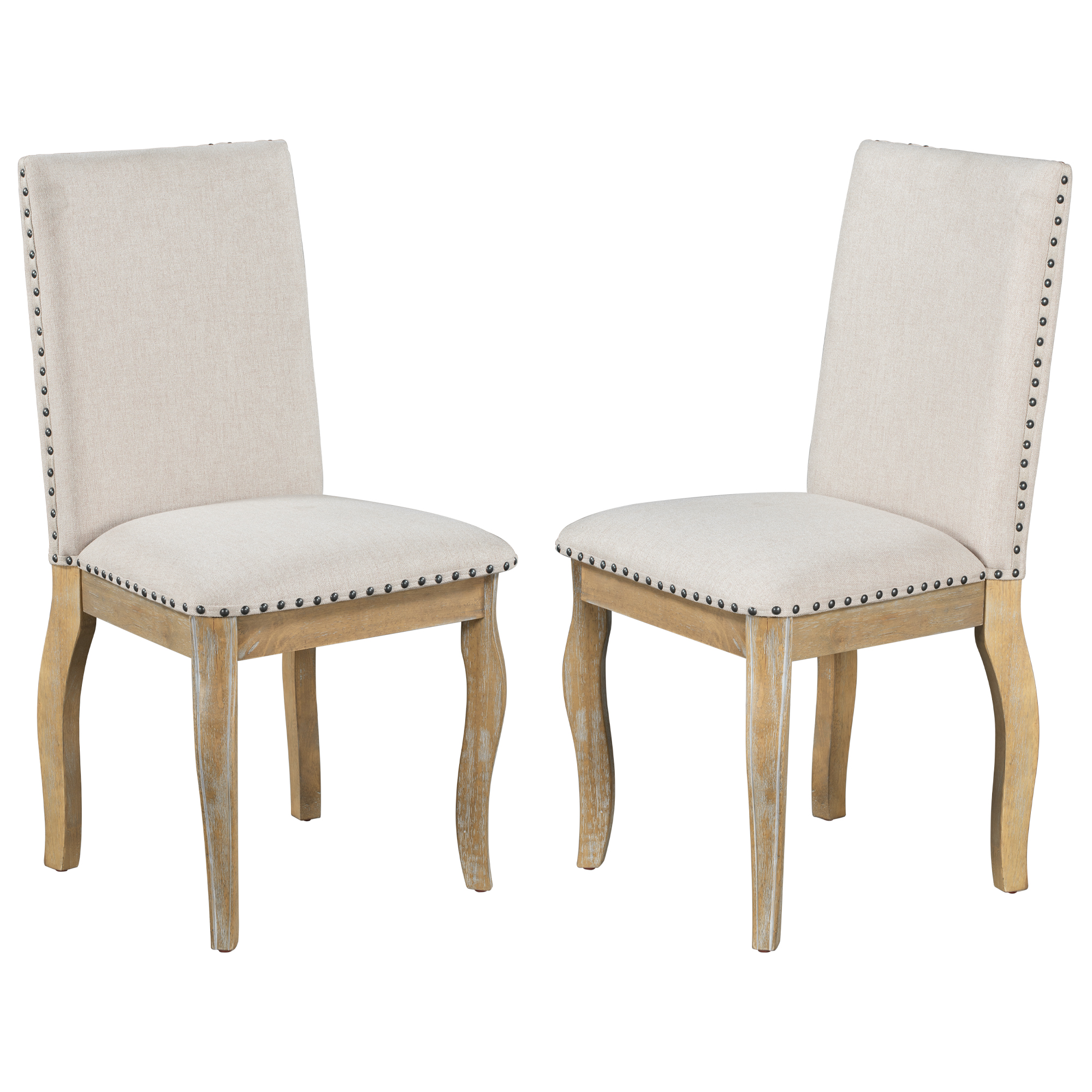 TREXM Set of 4 Dining chairs Wood Upholstered Fabirc Dining Room Chairs with Nailhead (Natural Wood Wash)