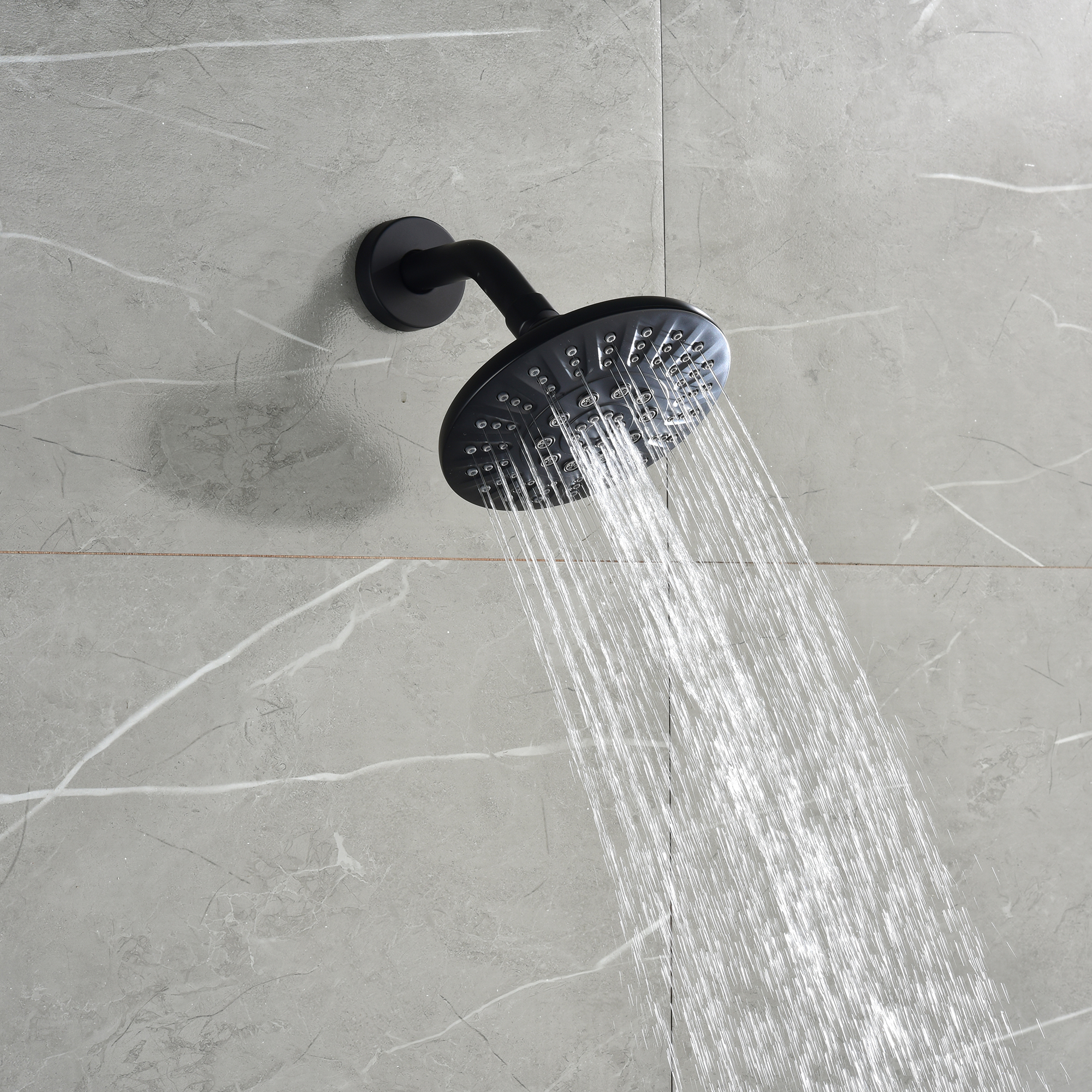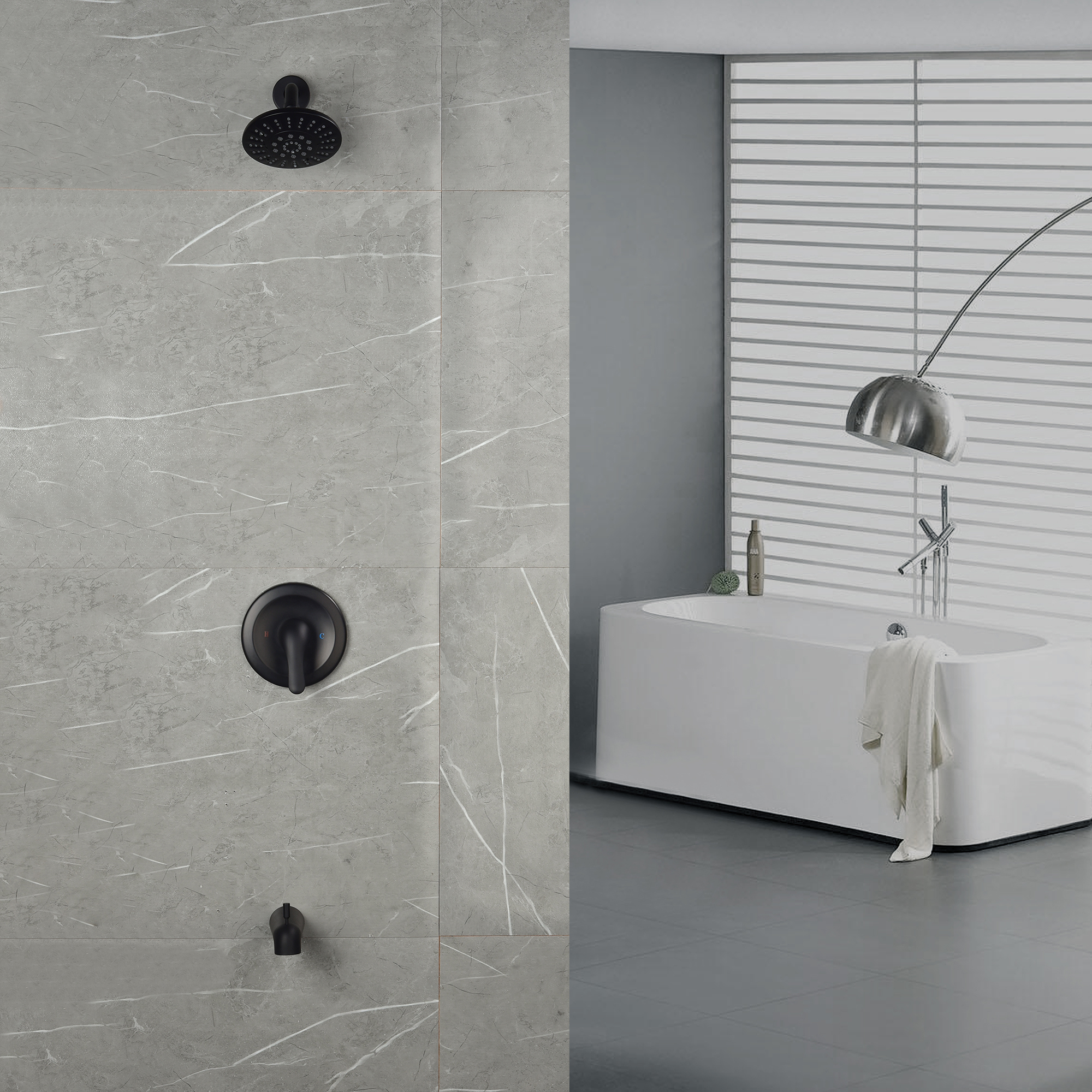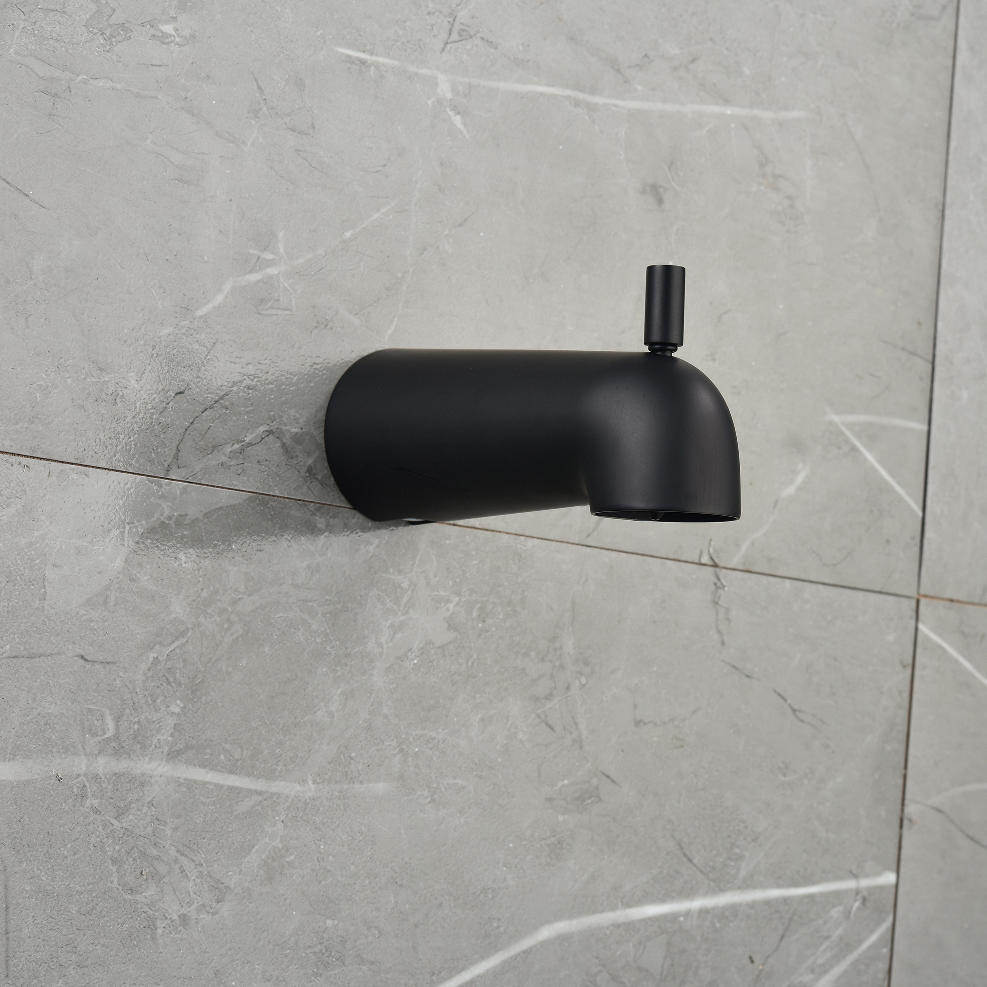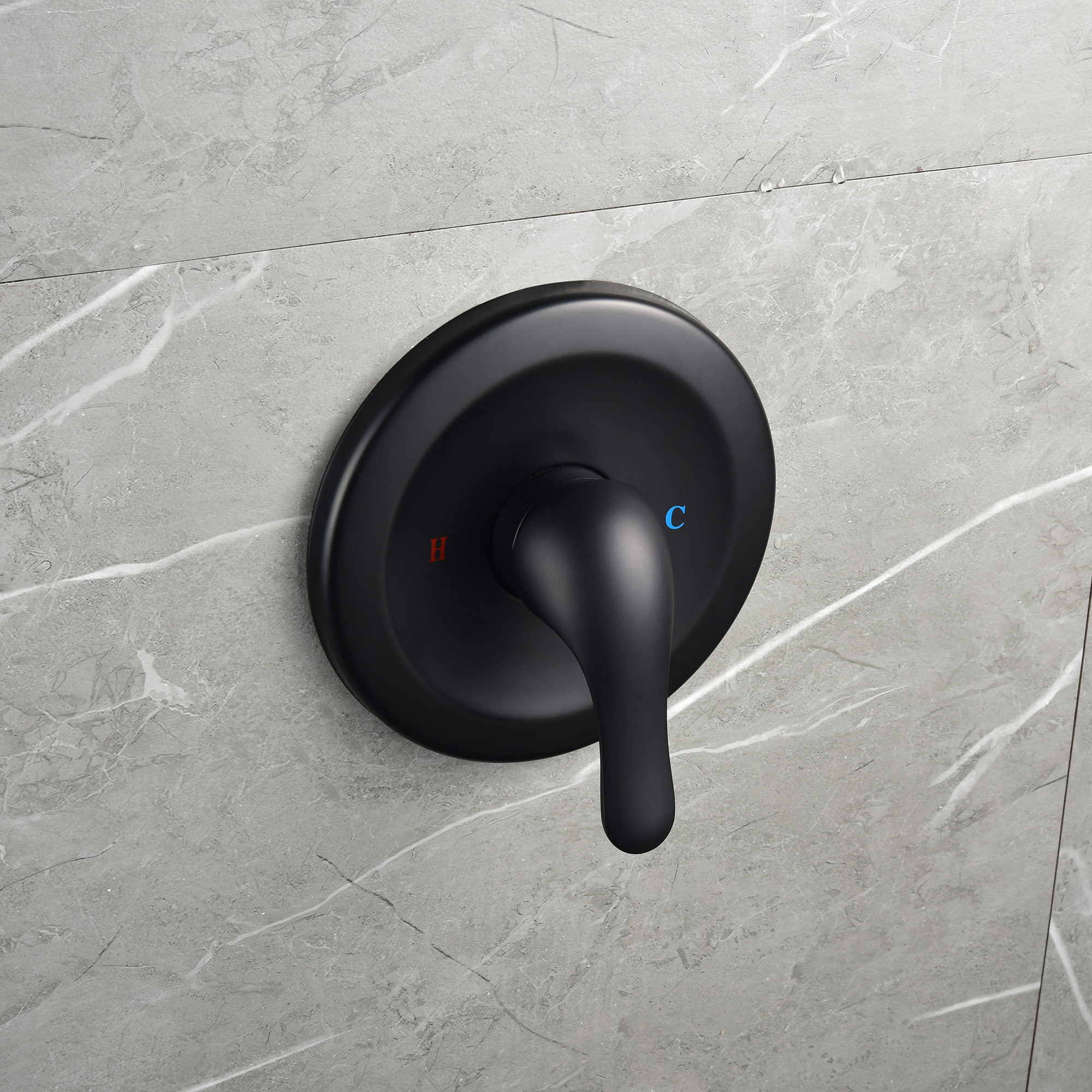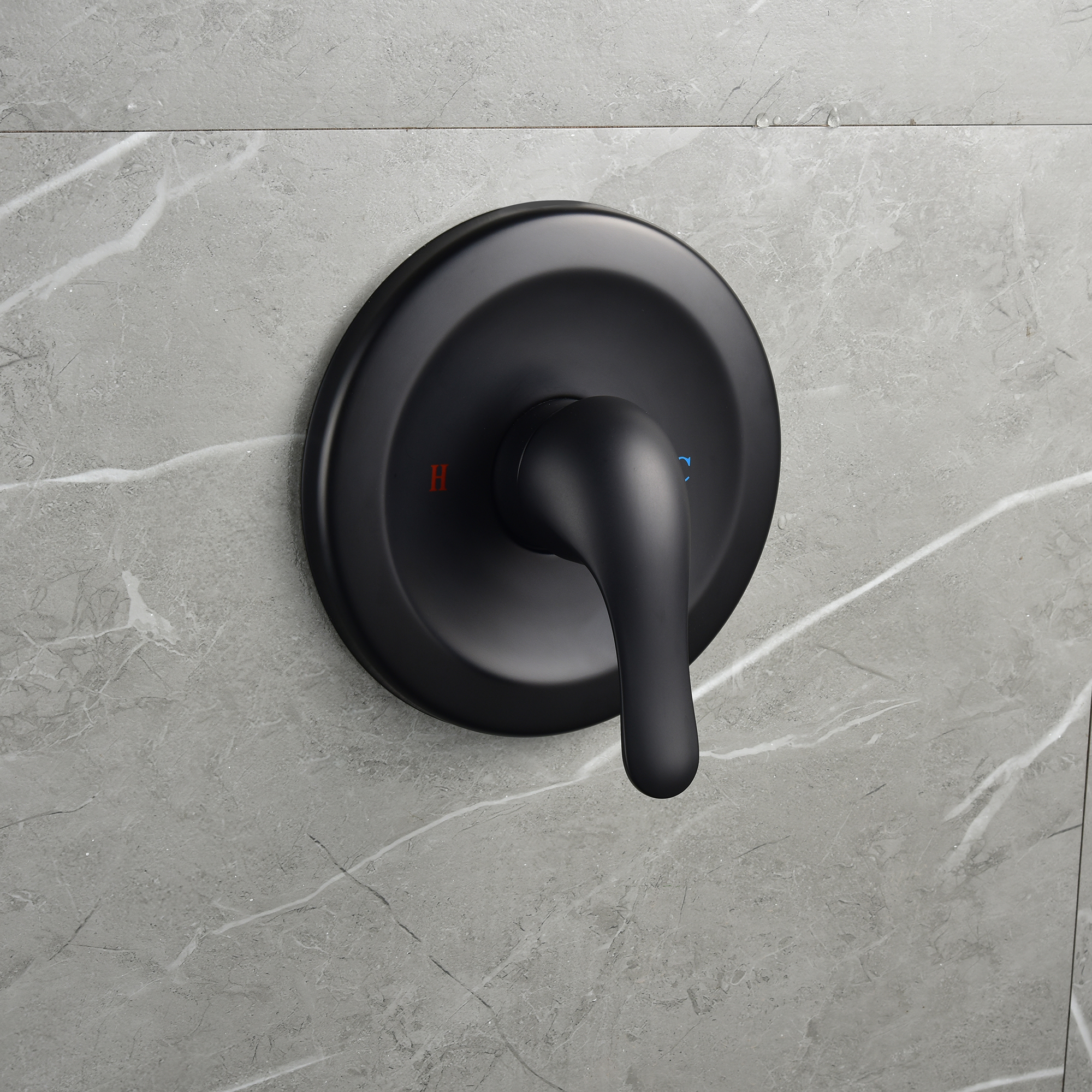 The shower fixtures include the black bathtub faucet. Turning on the single handle switch means the water came out from the black tub spout first, and putting up the bathtub switch means turning off the tub water.