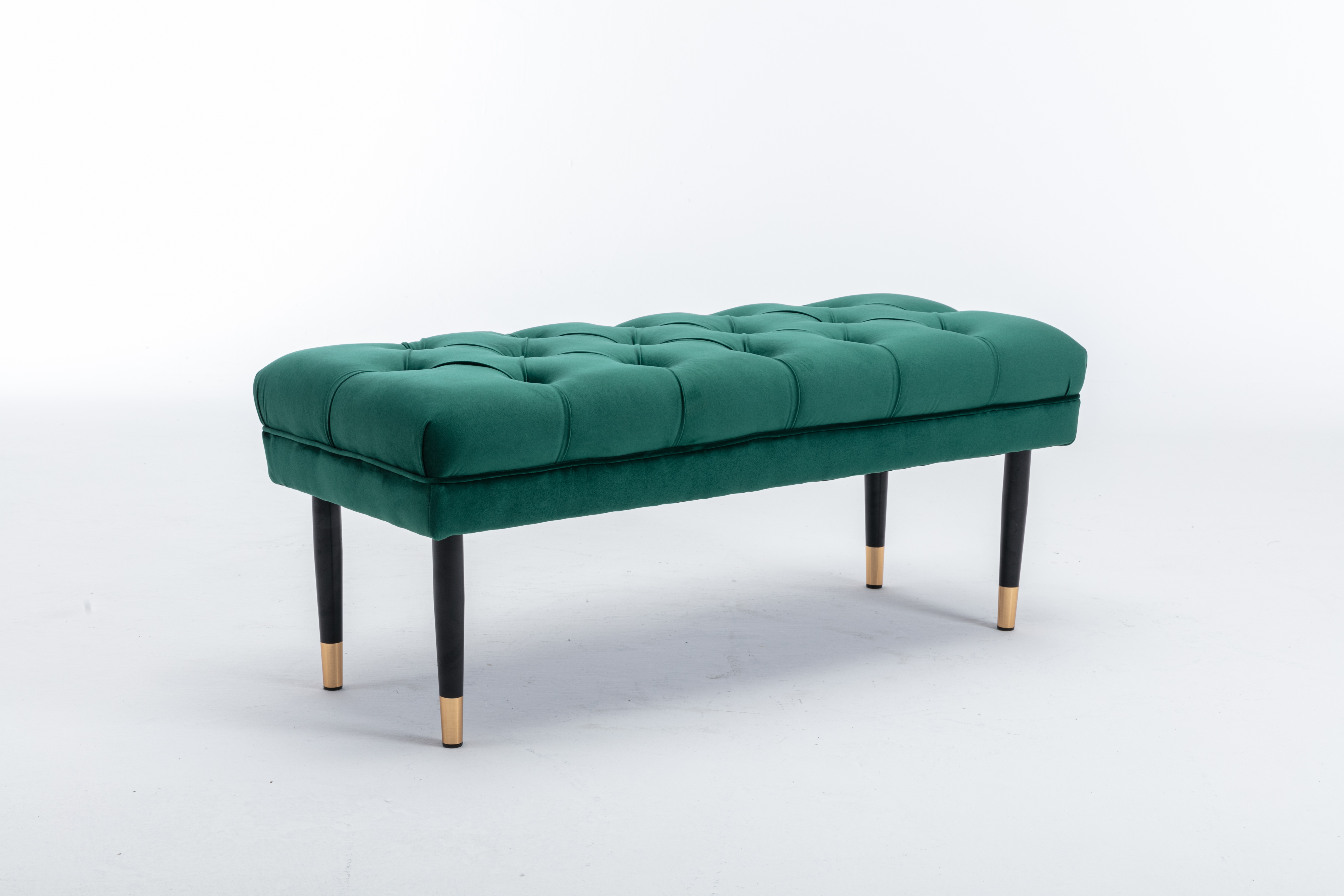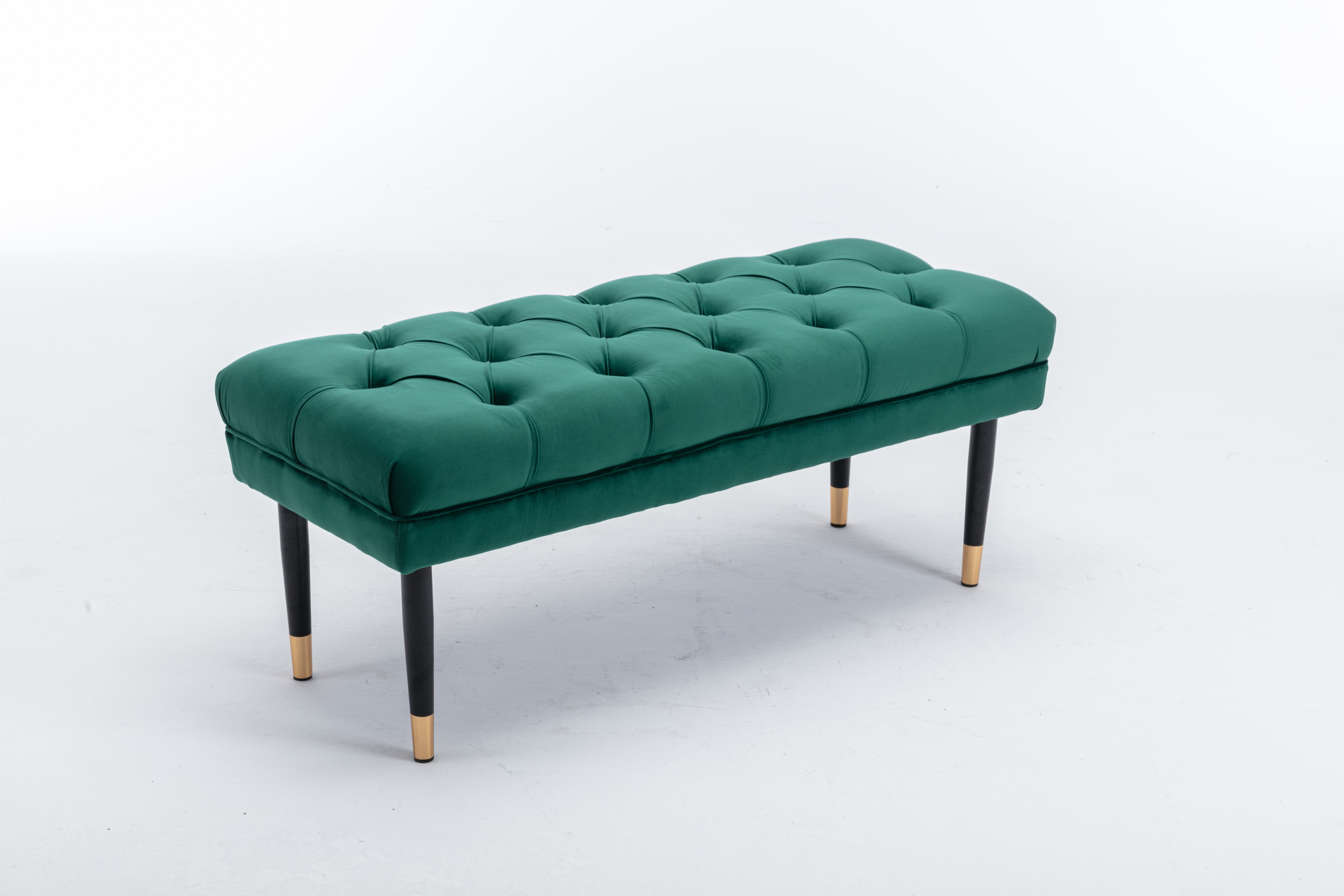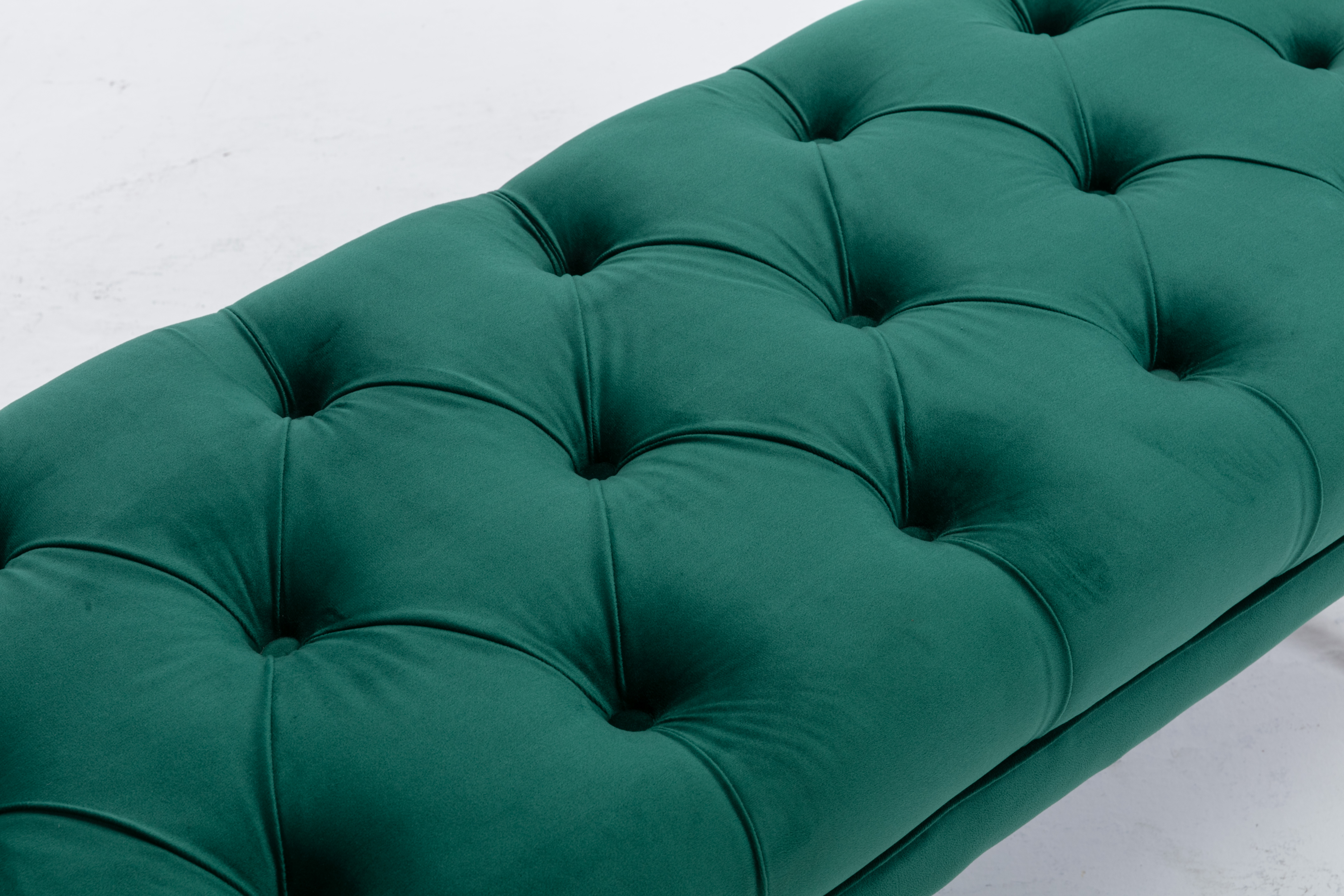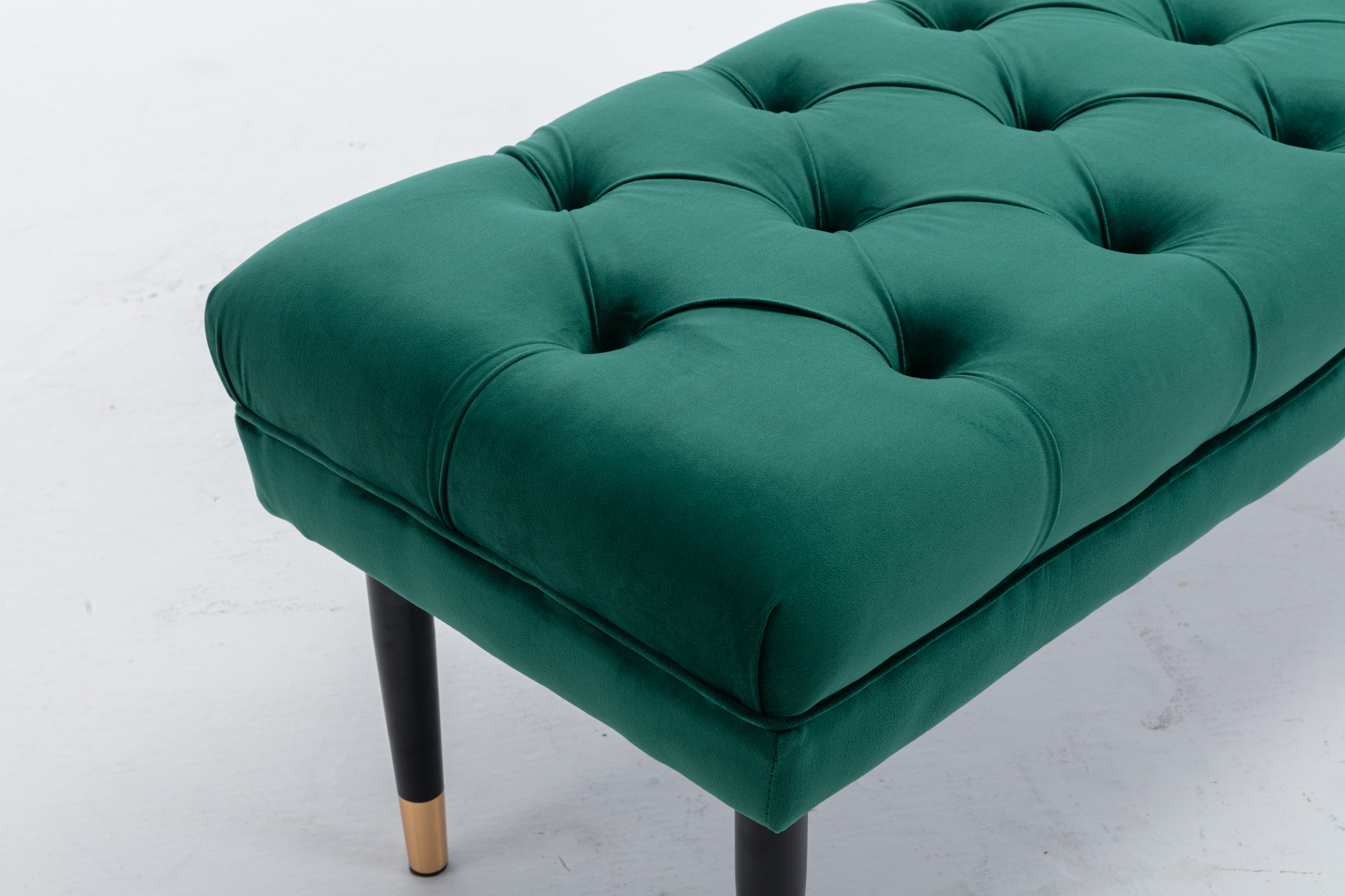 Tufted Bench Modern Velvet Button Upholstered Ottoman enches Bedroom Rectangle Fabric Footstool with Metal Legs for Living Room Entryway,Green