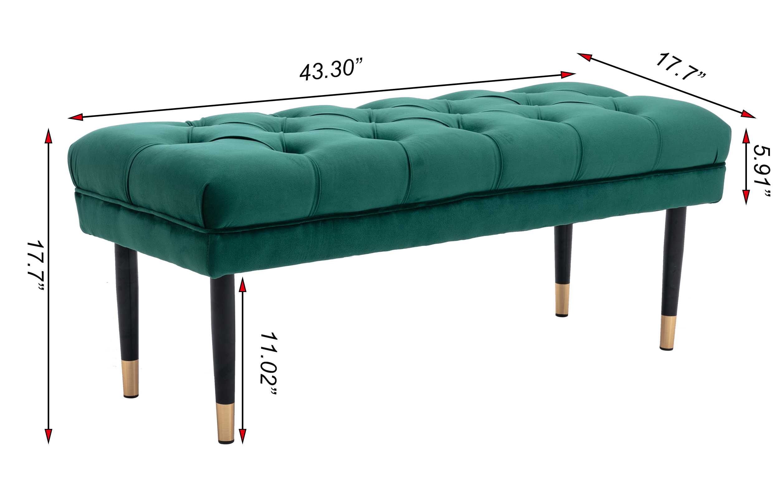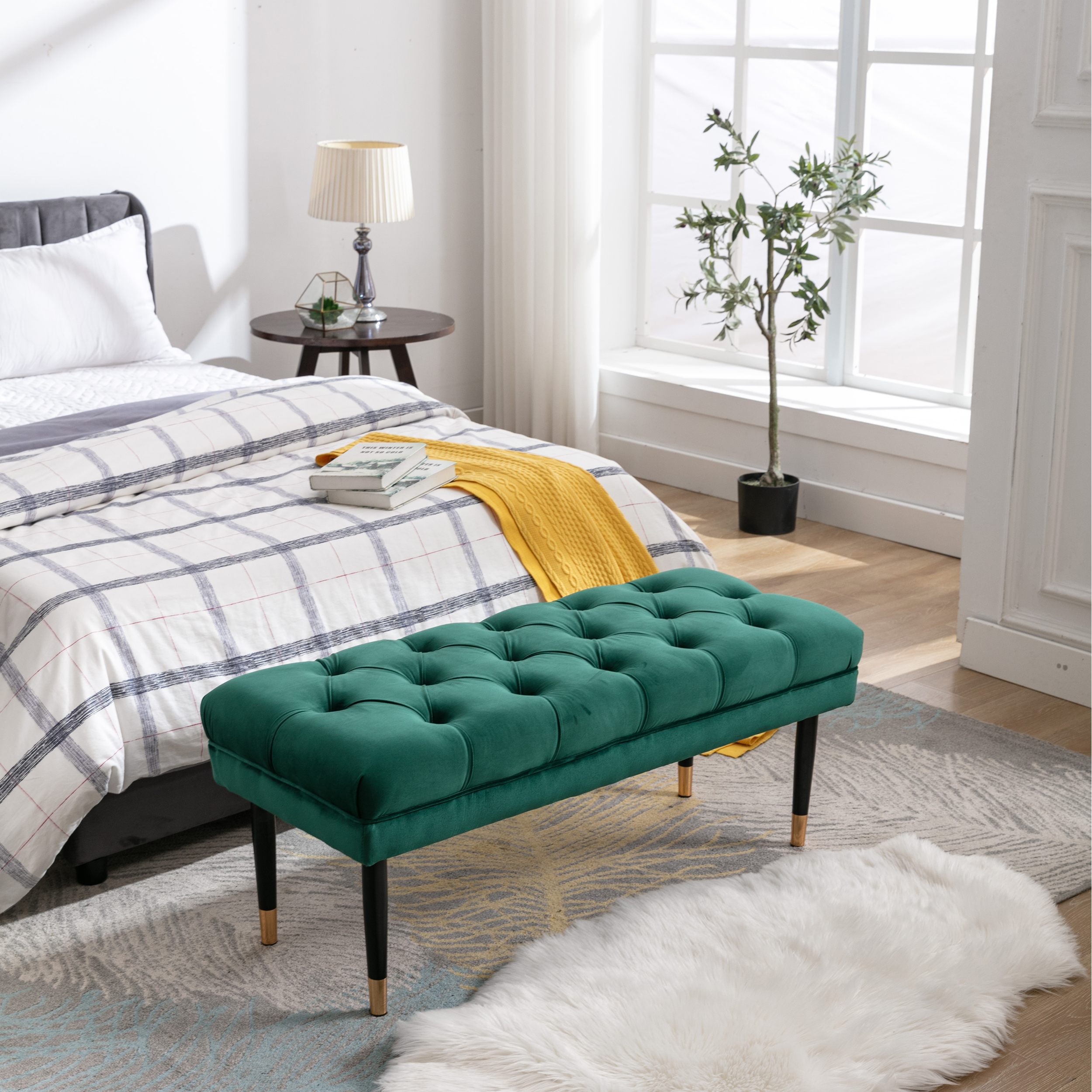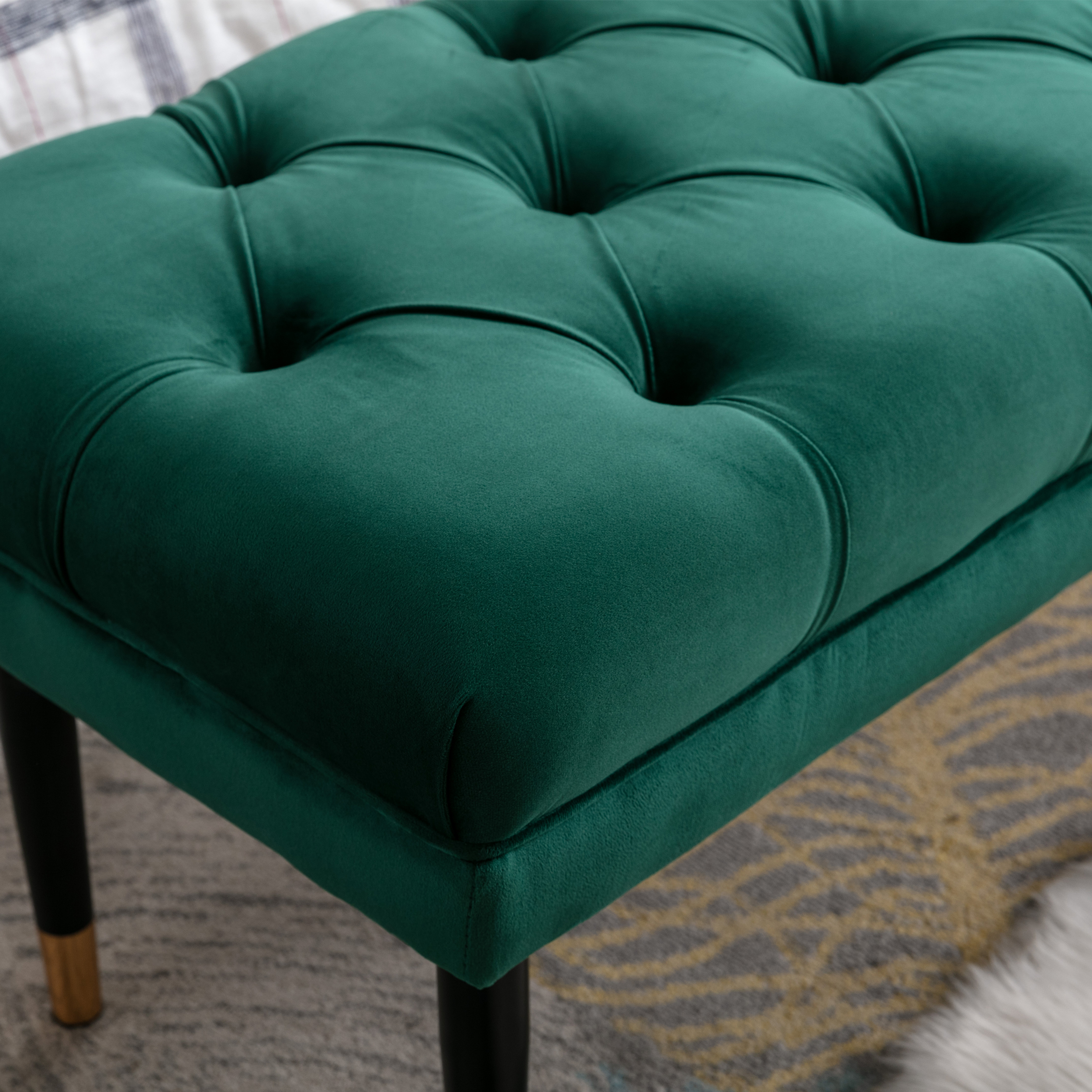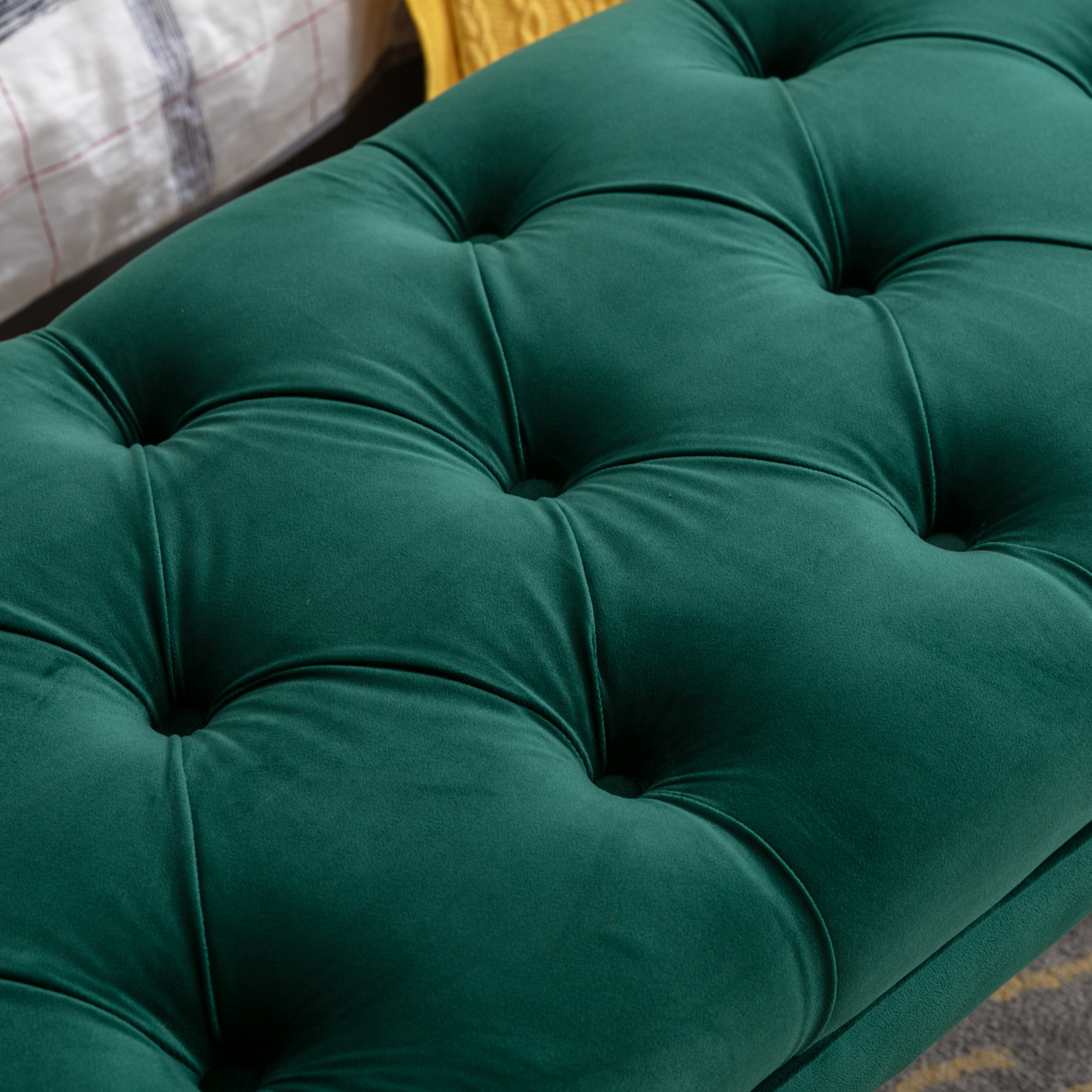 Tufted Bench Modern Velvet Button Upholstered Ottoman enches Bedroom Rectangle Fabric Footstool with Metal Legs for Living Room Entryway,Green