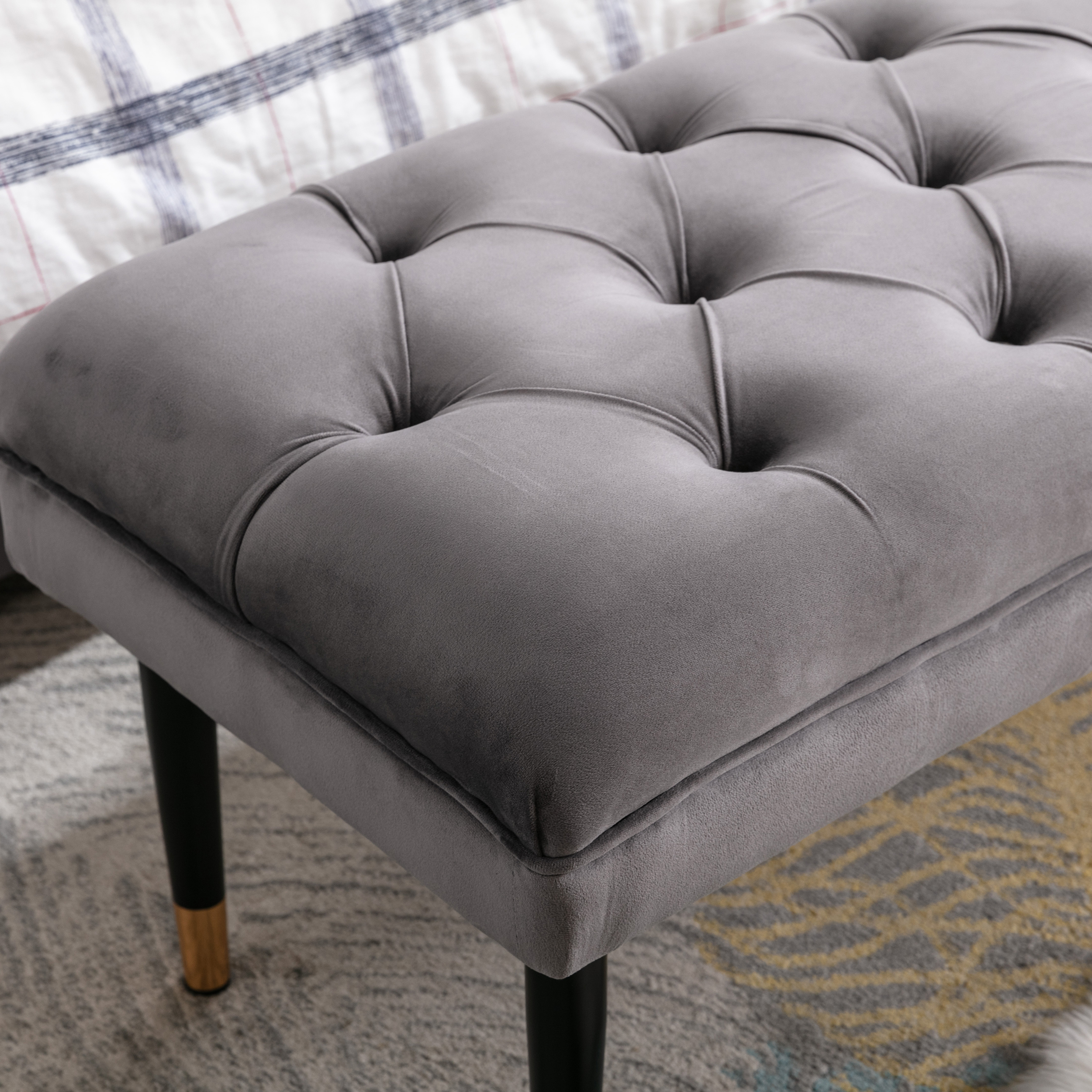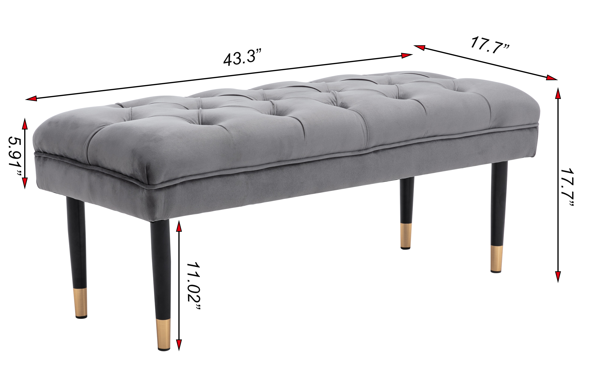 Tufted Bench Modern Velvet Button Upholstered Entryway Footstool17.7"W*43.3"D*H17.7"Floor to Seat Height:17.7"Seat Width: 17.7"Seat Length:43.3"Weight Capacity:300lb
