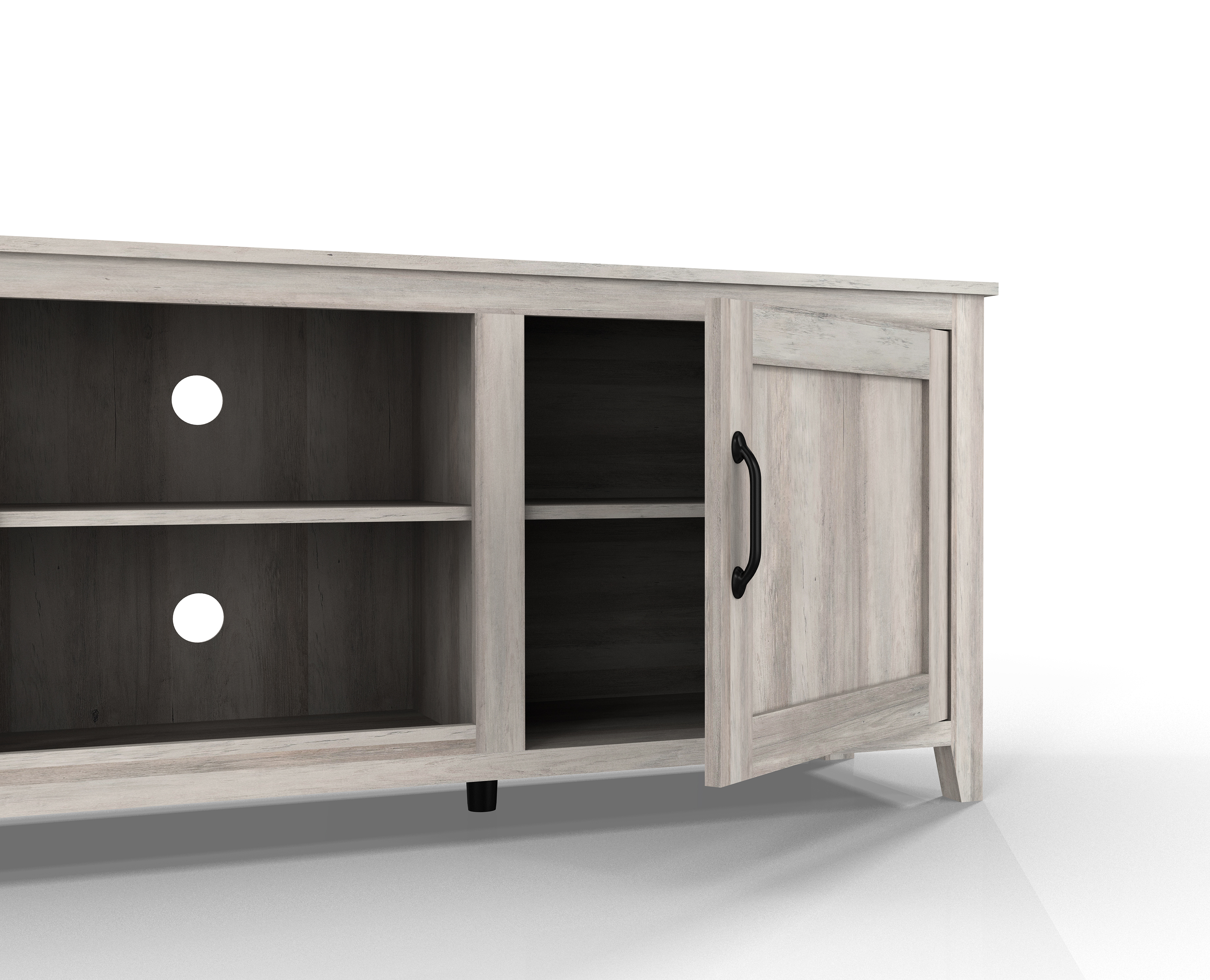 Traditional Wood Universal TV Stand Cabinet Doors and Open Shelves for TV's Flat Screen Living Room Storage Entertainment Center With Two Doors, Grey Walnut