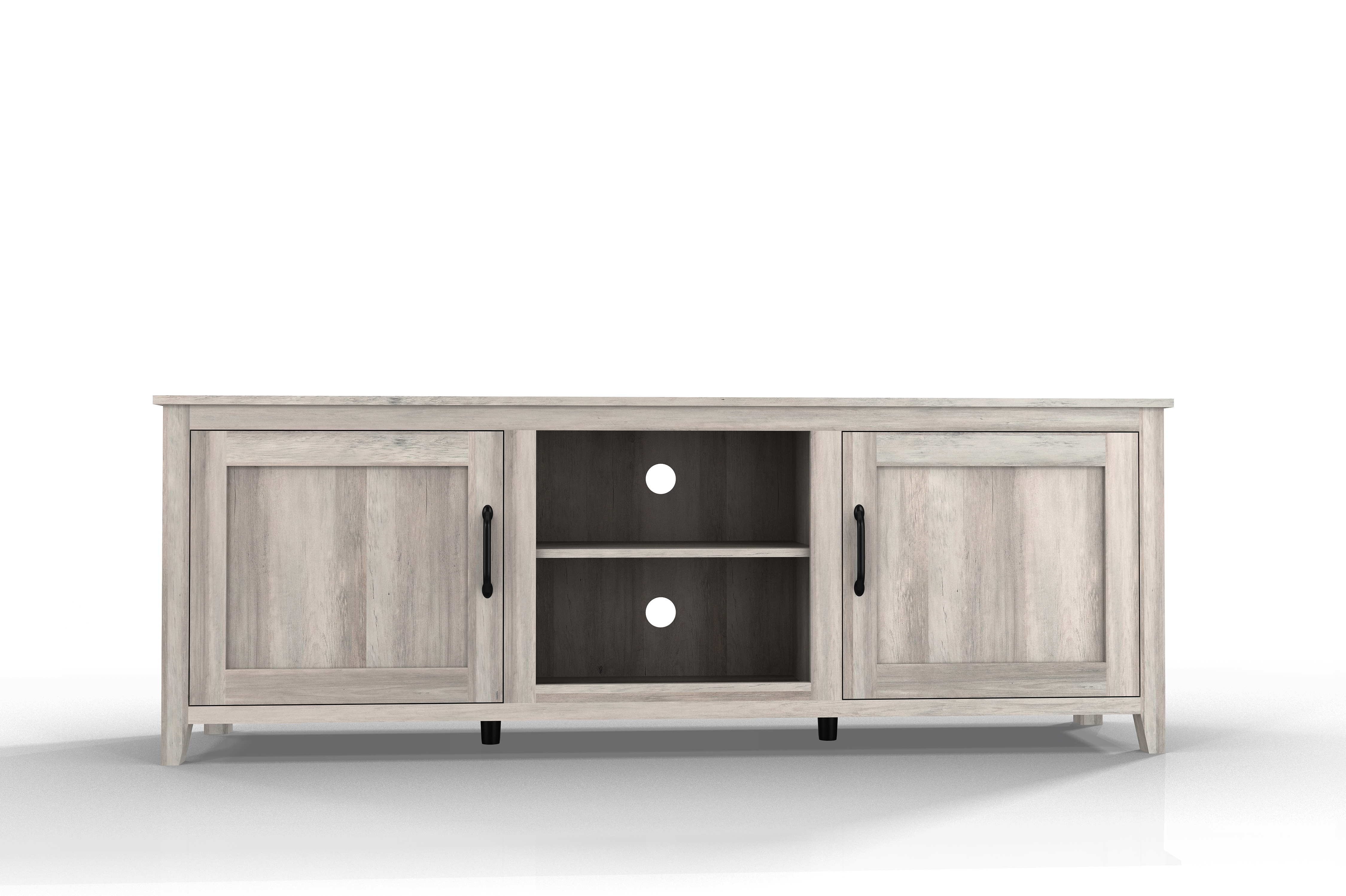 Ample Display and Storage Space: TV stand the spacious 70.08 inch long 15.35 inch wide tabletop can accommodate TV within 60 inches, 4open storage compartments cabinet for TV box, game console, remote controls, or anything you like.