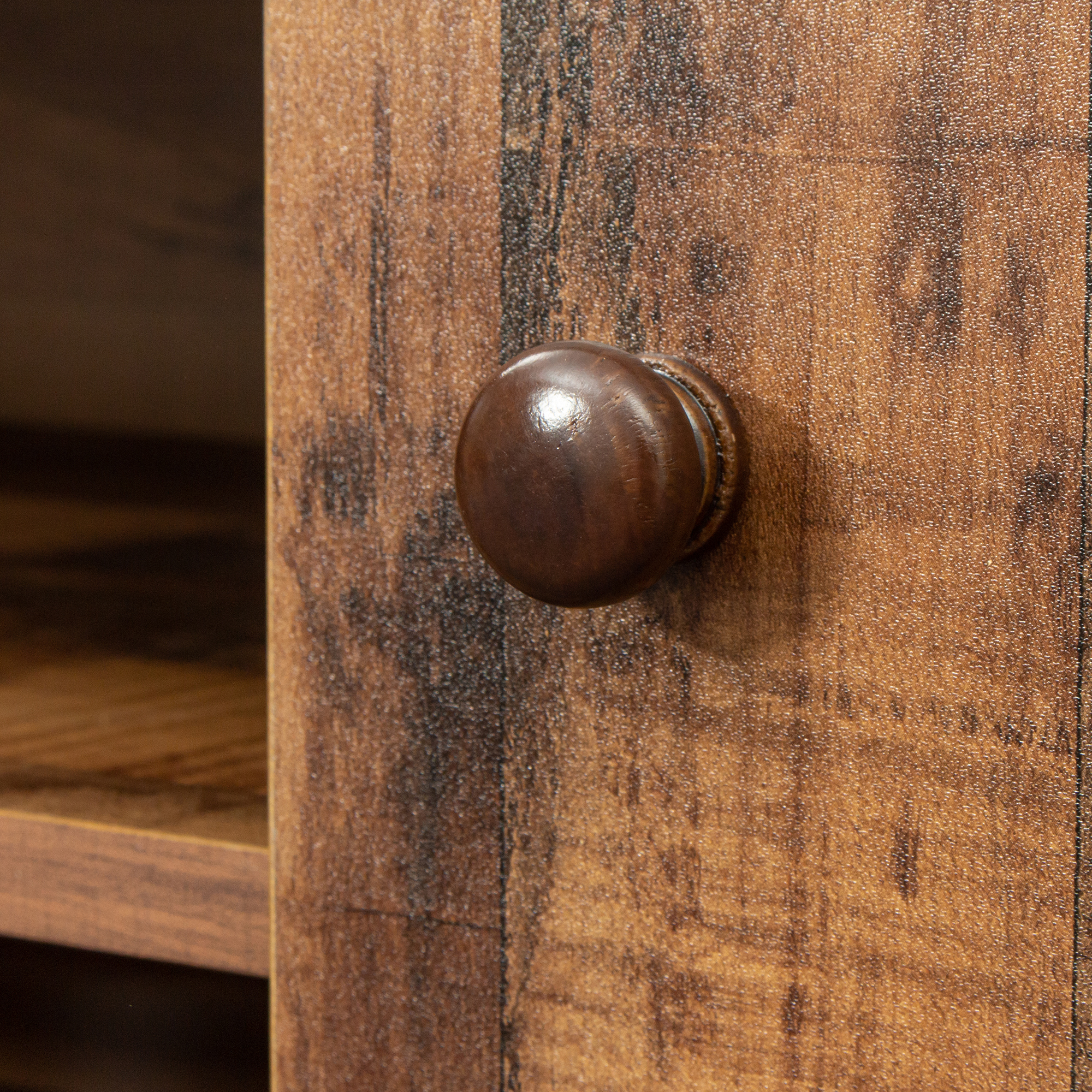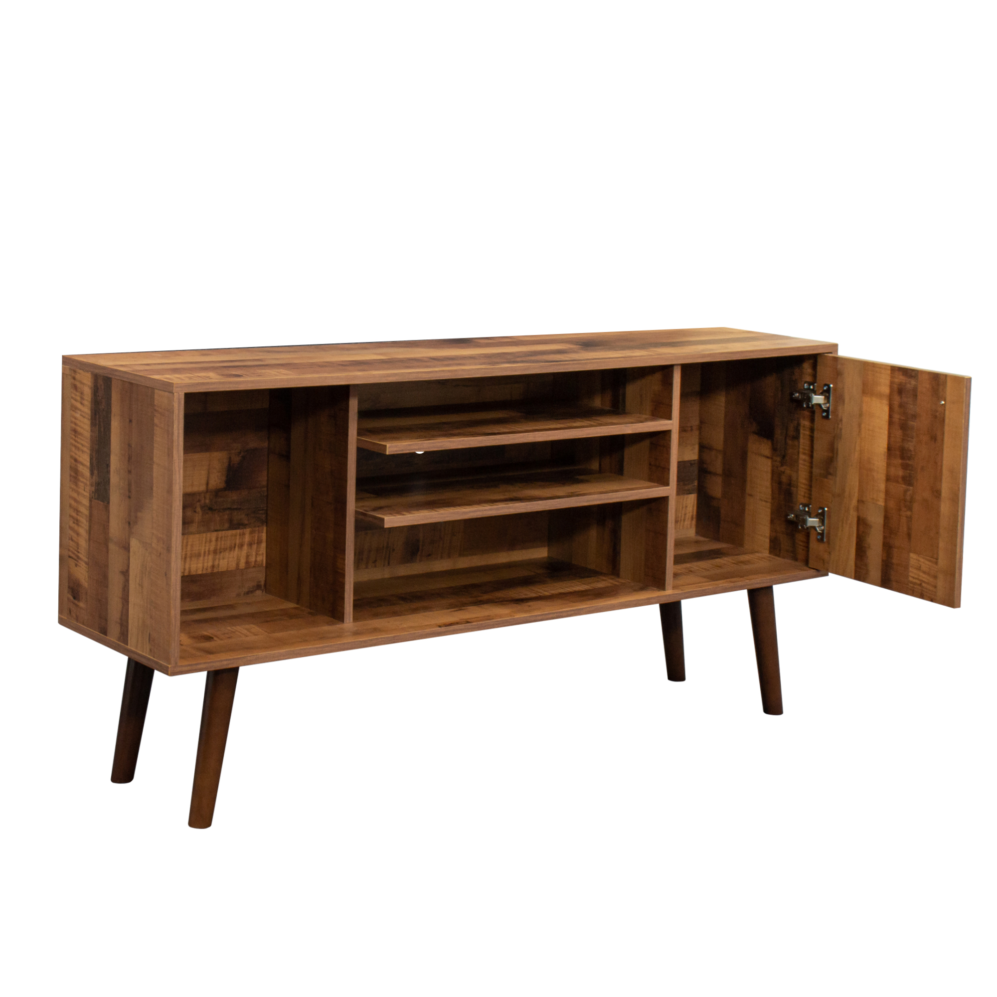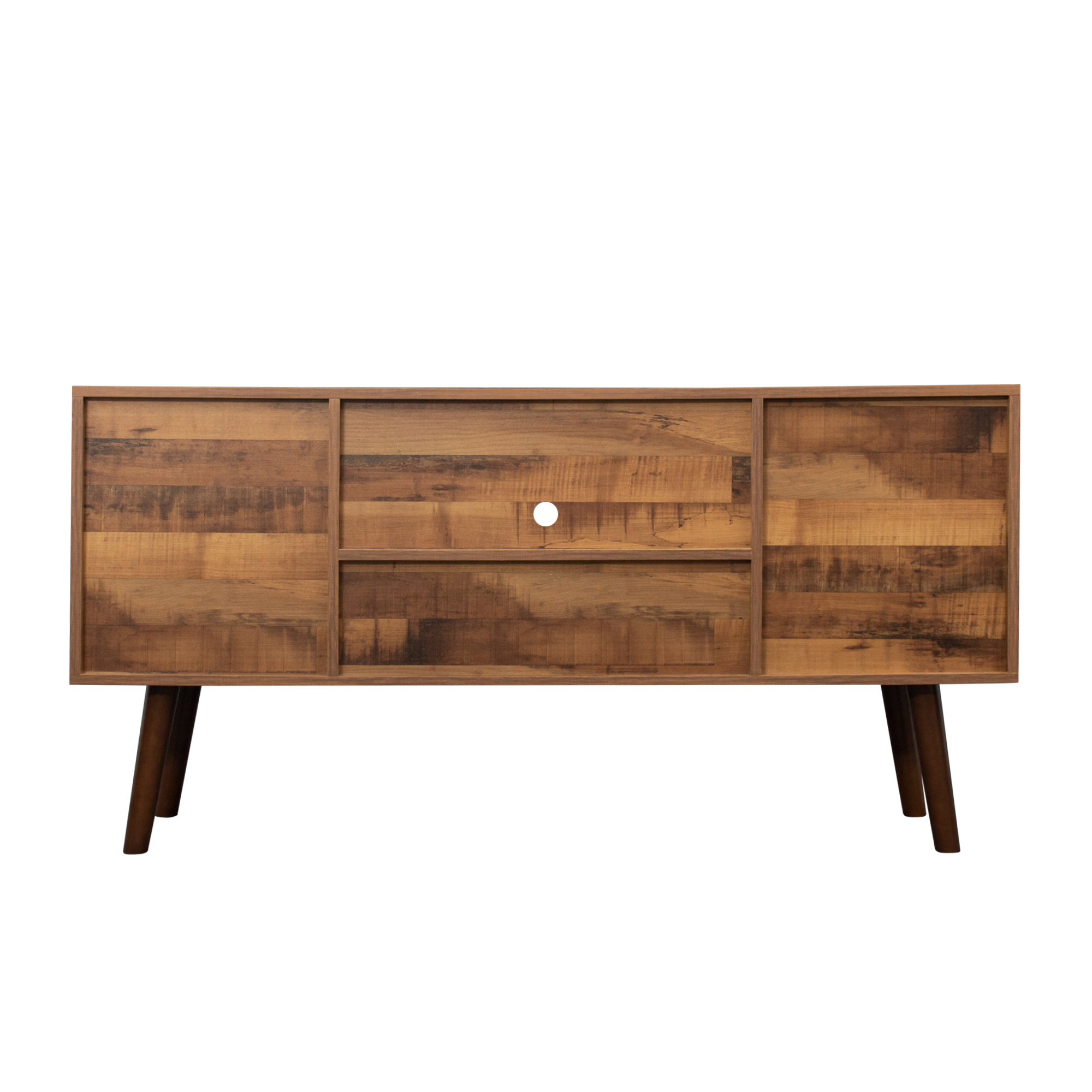 Have 1 storage and 2 open shelves ,which provide more area to storage and display.Material:This TV Stand material is 15mm particle bpard,back board is 3mm MDF.Made of wooden structure with melamine finish for durability and easy maintenance.Durable&Sturdy frame: This TV stand with rich textured veneer not only gives an attractive modern look but also features superior stability and its resistance against wear and tear.Four solid wood legs are used, which can make the cabinet stronger.Worry-Free Assembly: Comes with all necessary hardware and an illustrated instruction manual to help you set up this nightstand quickly and without difficulties. Please feel free to contact us if you encounter any problems during the assembly process. We will provide the best solution online 24 hours all day.