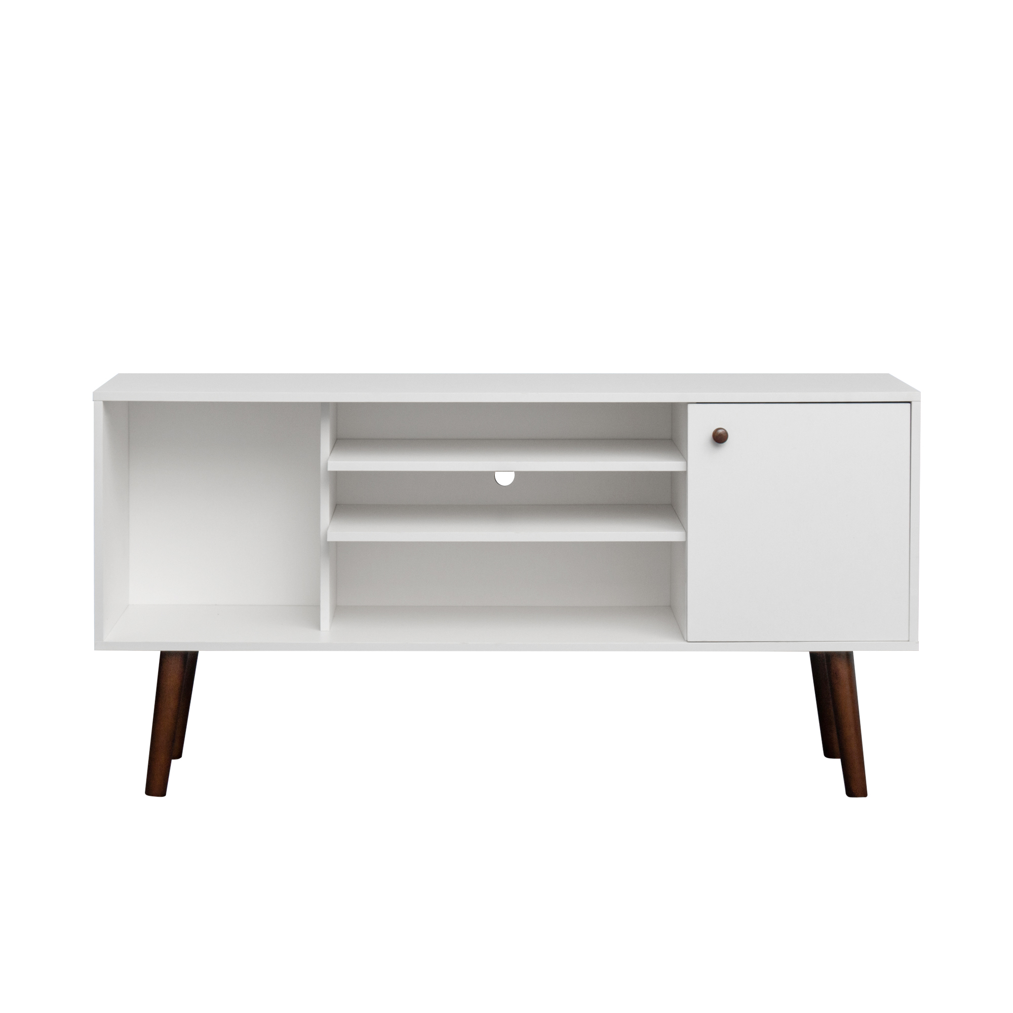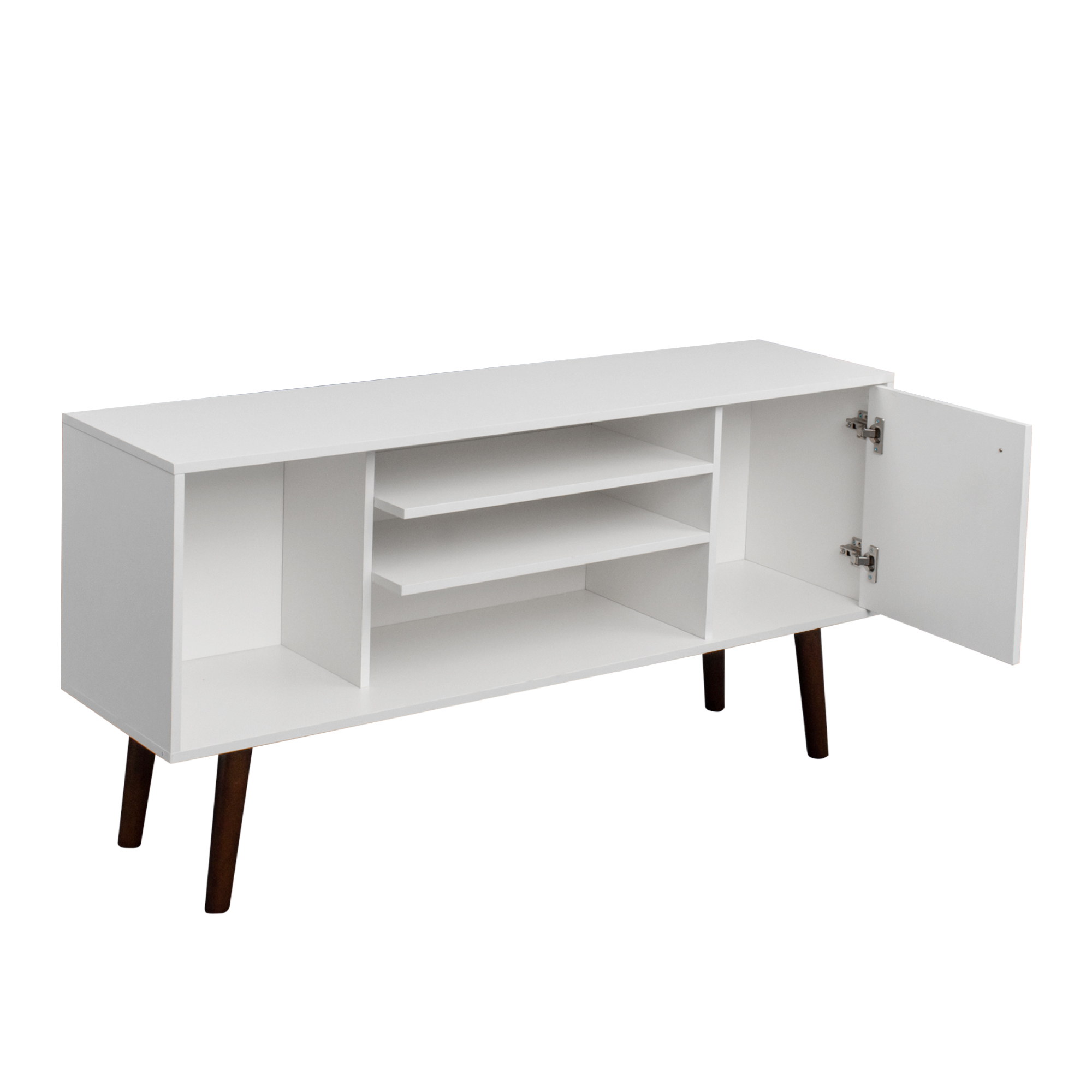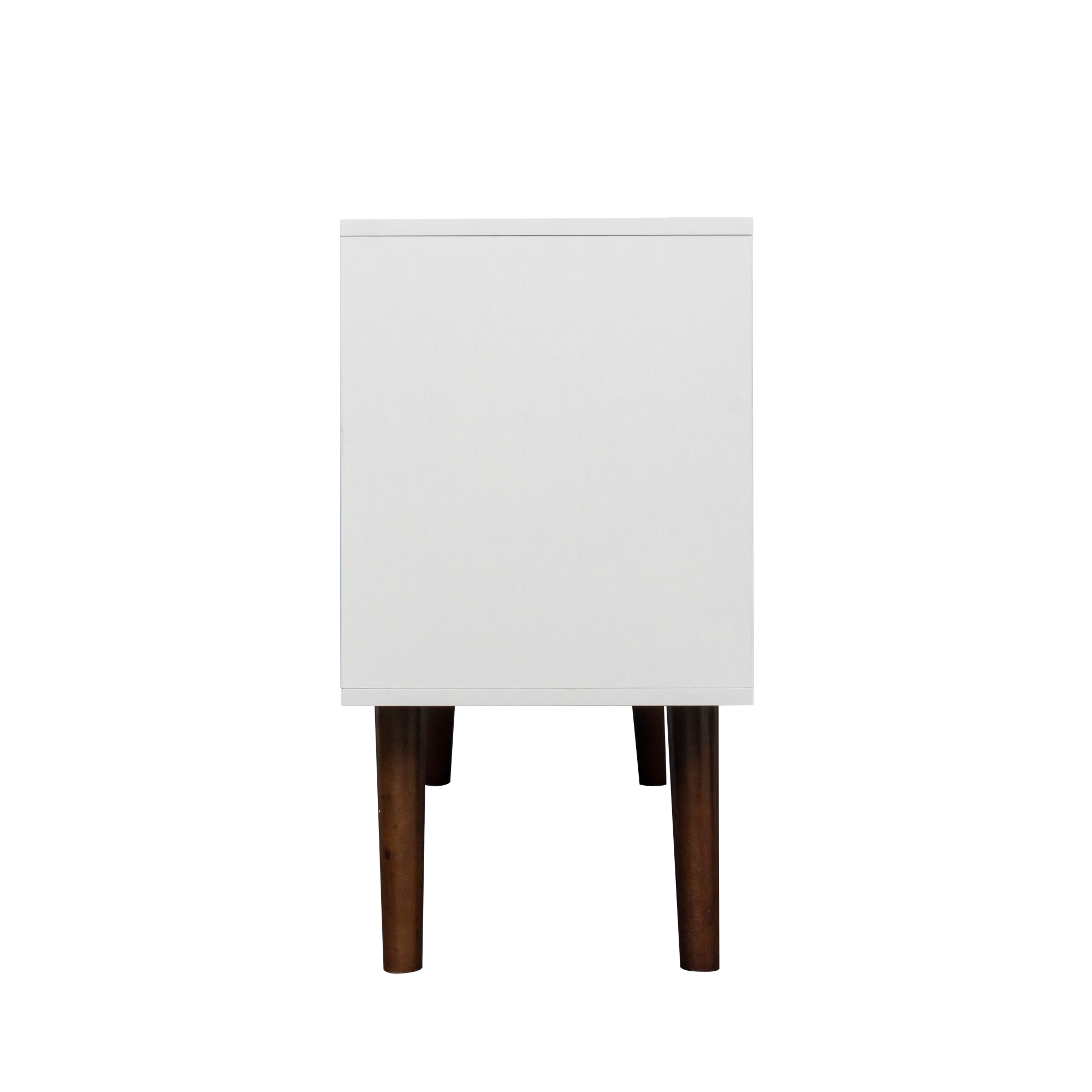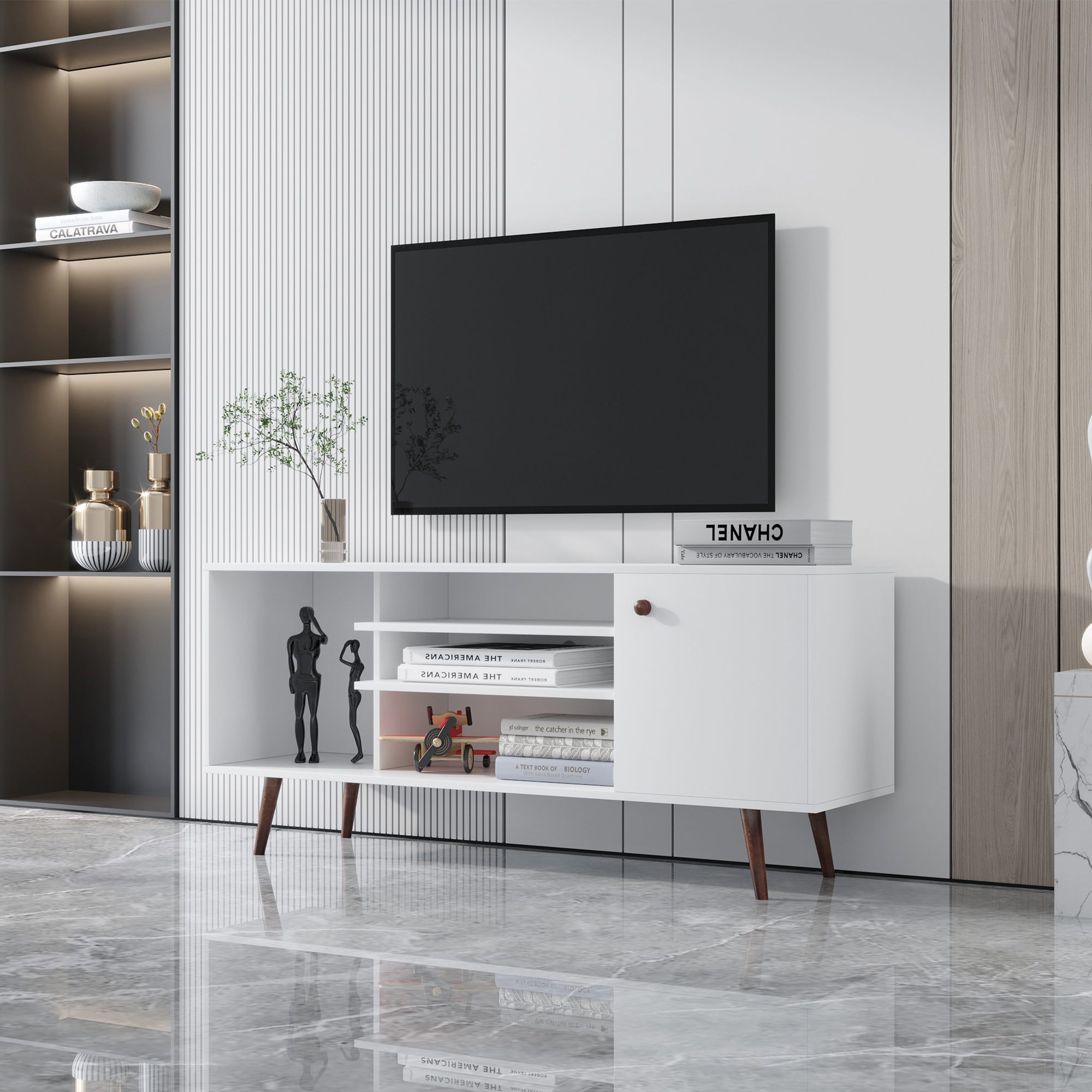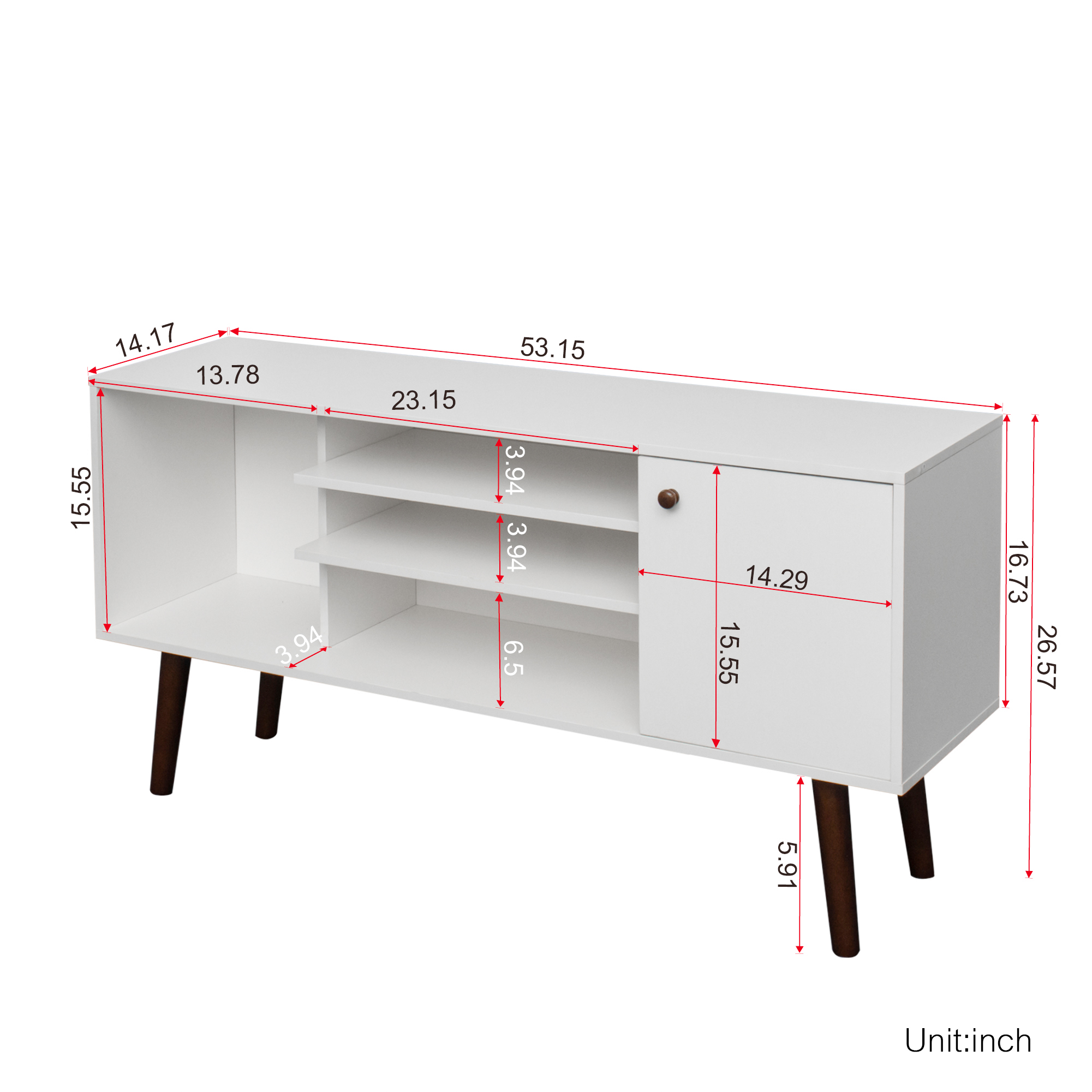 Have 1 storage and 2 open shelves ,which provide more area to storage and display.Material:This TV Stand material is 15mm particle bpard,back board is 3mm MDF.Made of wooden structure with melamine finish for durability and easy maintenance.Durable&Sturdy frame: This TV stand with rich textured veneer not only gives an attractive modern look but also features superior stability and its resistance against wear and tear.Four solid wood legs are used, which can make the cabinet stronger.Worry-Free Assembly: Comes with all necessary hardware and an illustrated instruction manual to help you set up this nightstand quickly and without difficulties. Please feel free to contact us if you encounter any problems during the assembly process. We will provide the best solution online 24 hours all day.