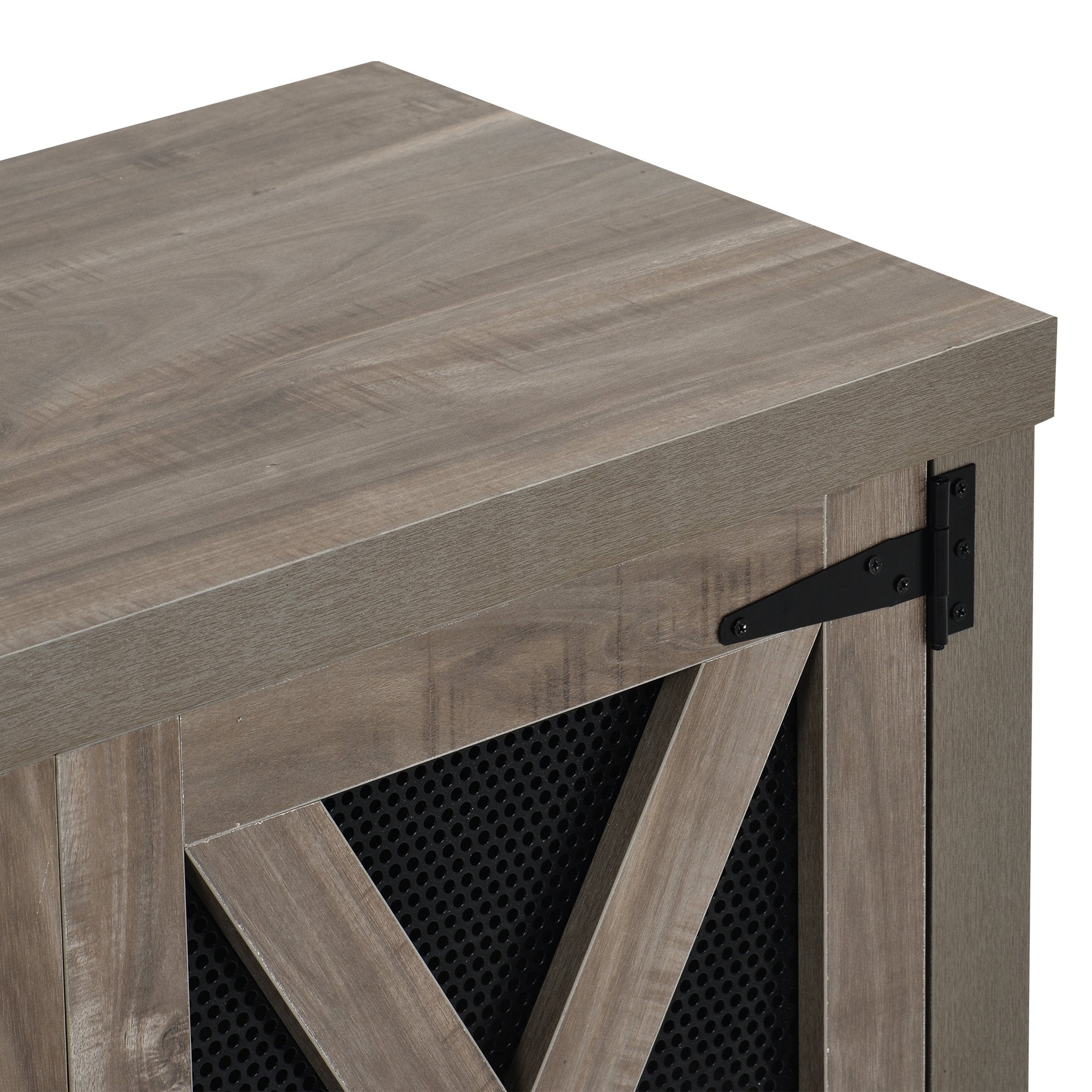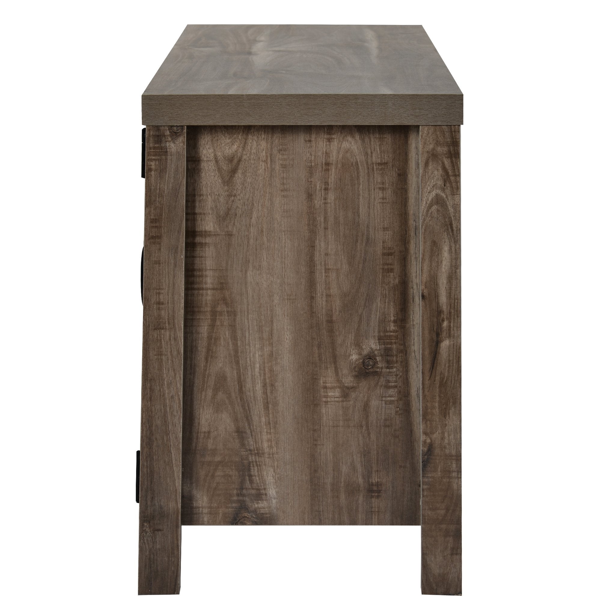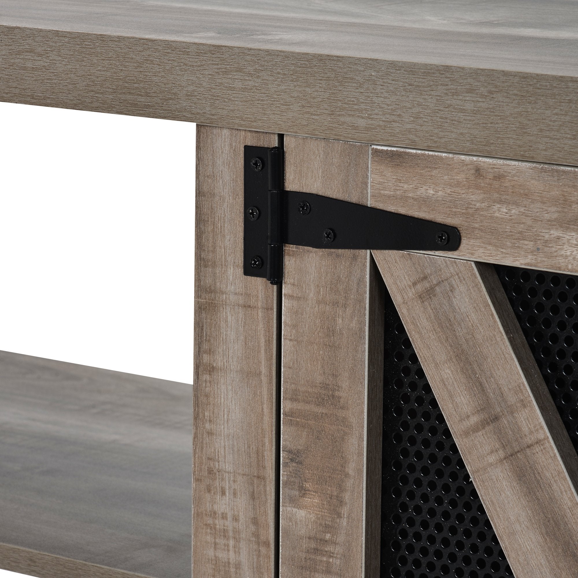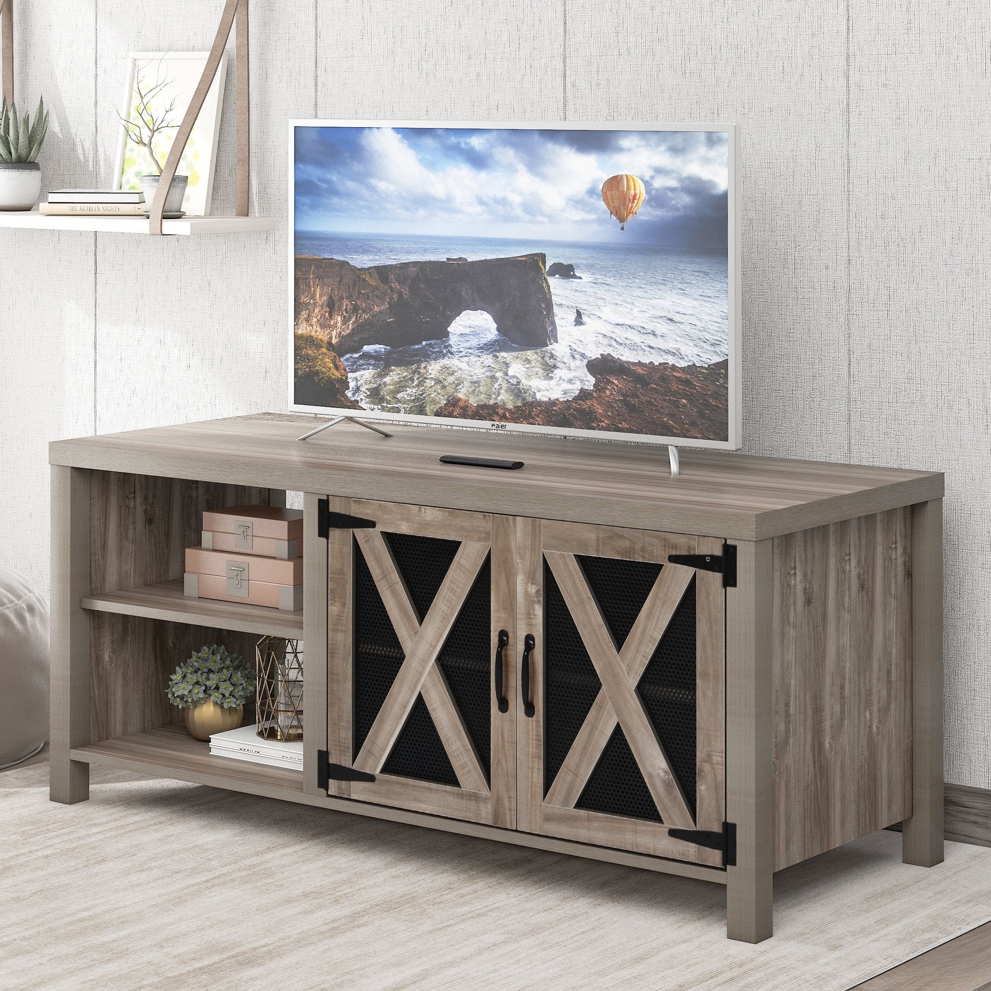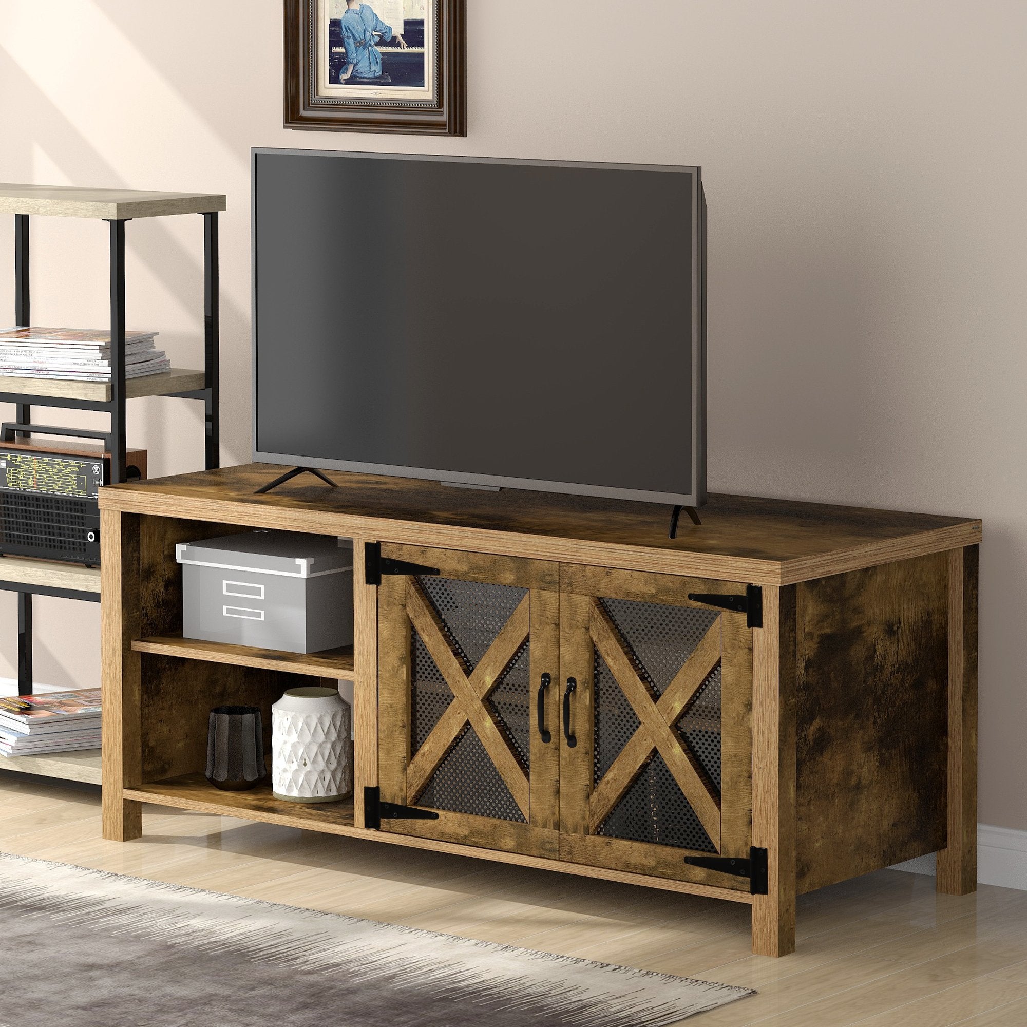 Update the look of your home with this rustic TV stand. With closed storage space behind mesh x-frame cabinet doors and open storage space to fit your media, electronics, and décor. The exposed hinges and mesh metal accents create a feeling that you'll love having in your home, whether in your living room, bedroom, or kitchen. This versatile console provides additional storage space and can be used as a storage cabinet or buffet.