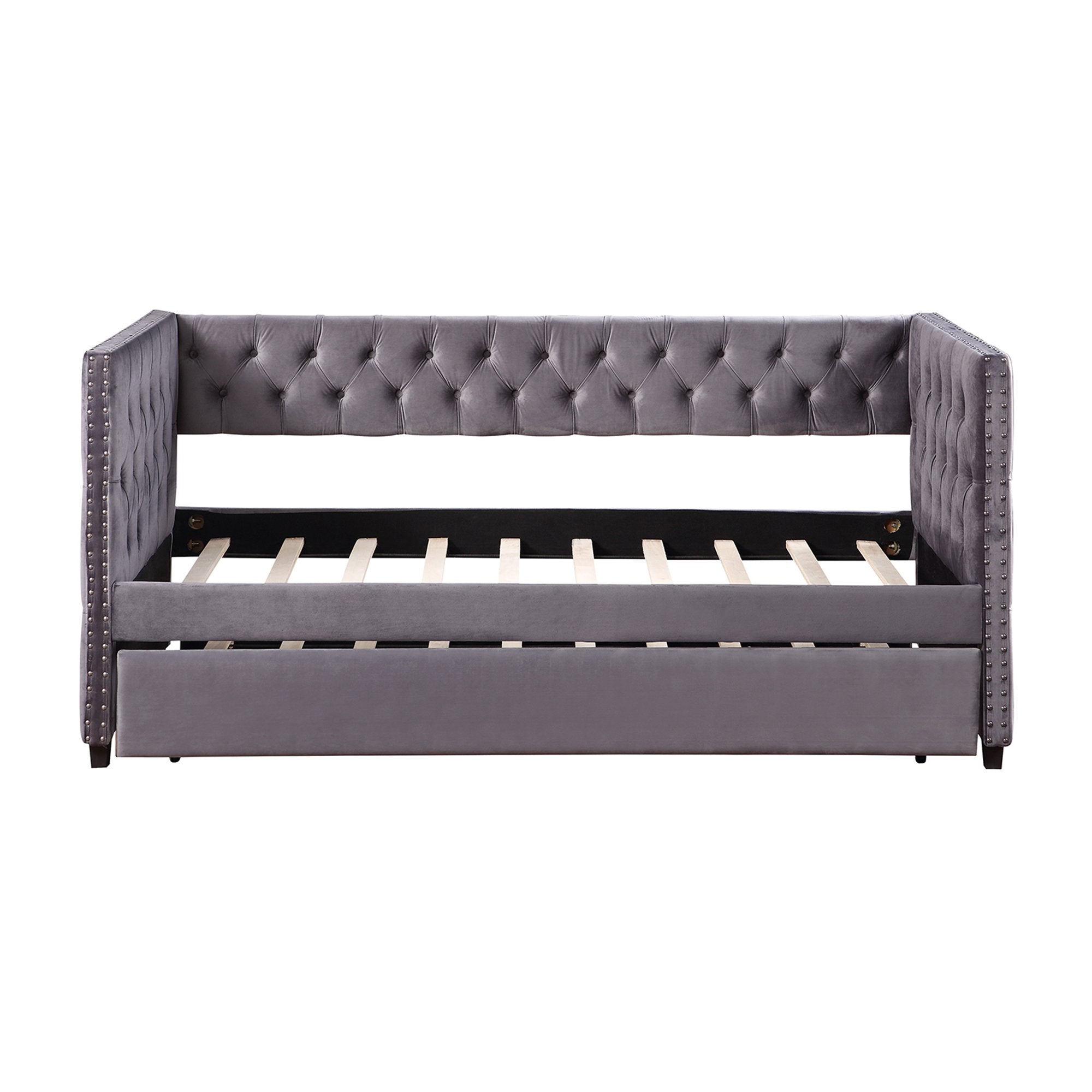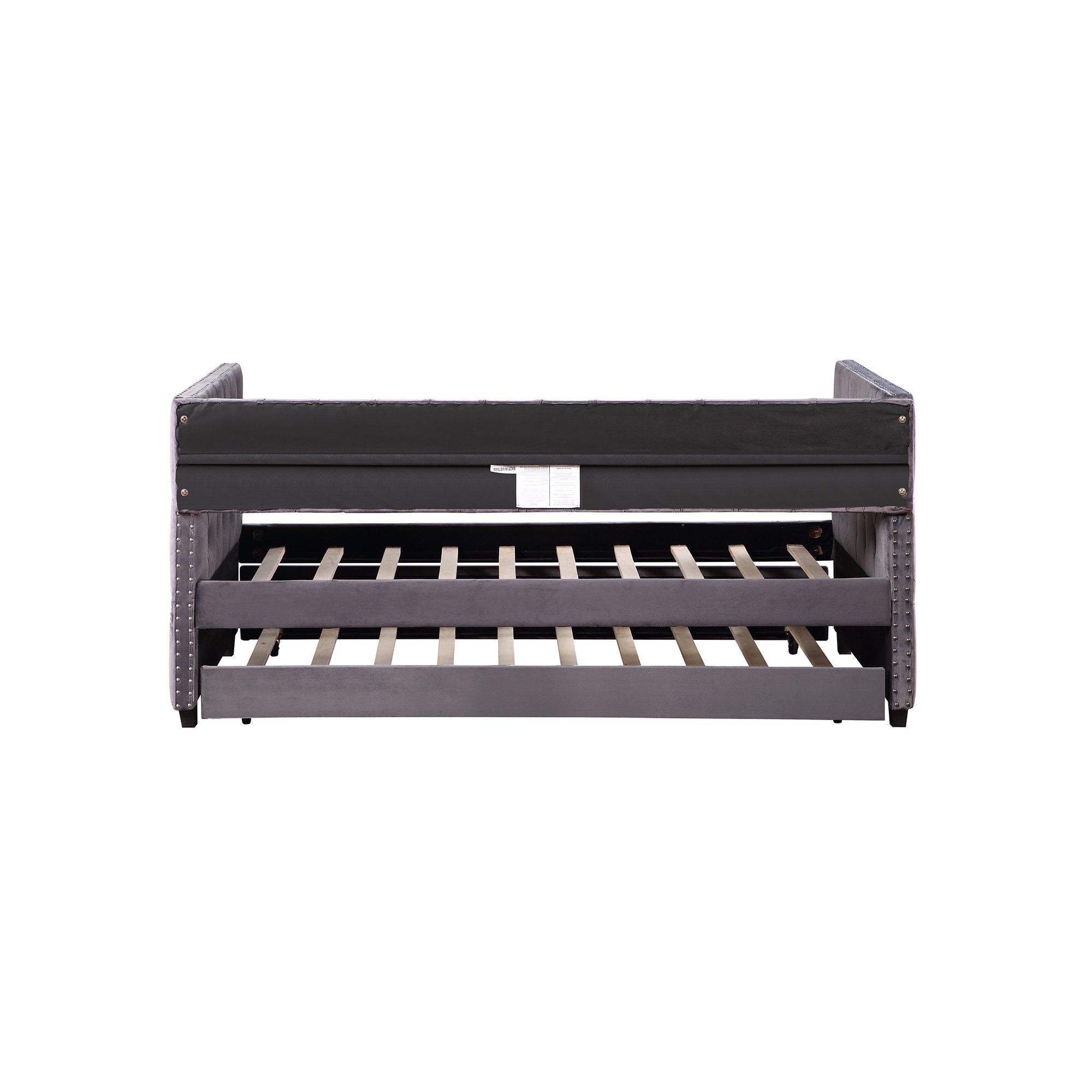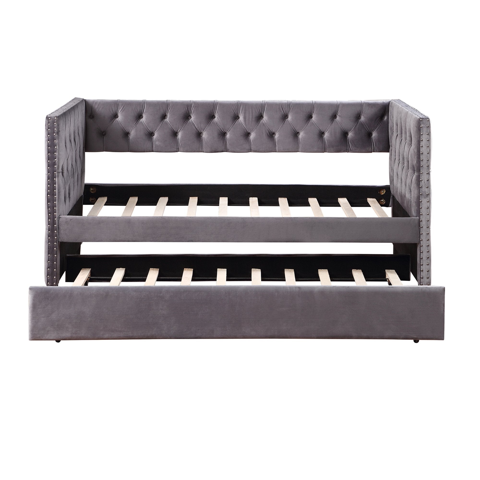 Twin Daybed with Trundle, Upholstered Tufted Sofa Bed with Nailhead Trim, Gray