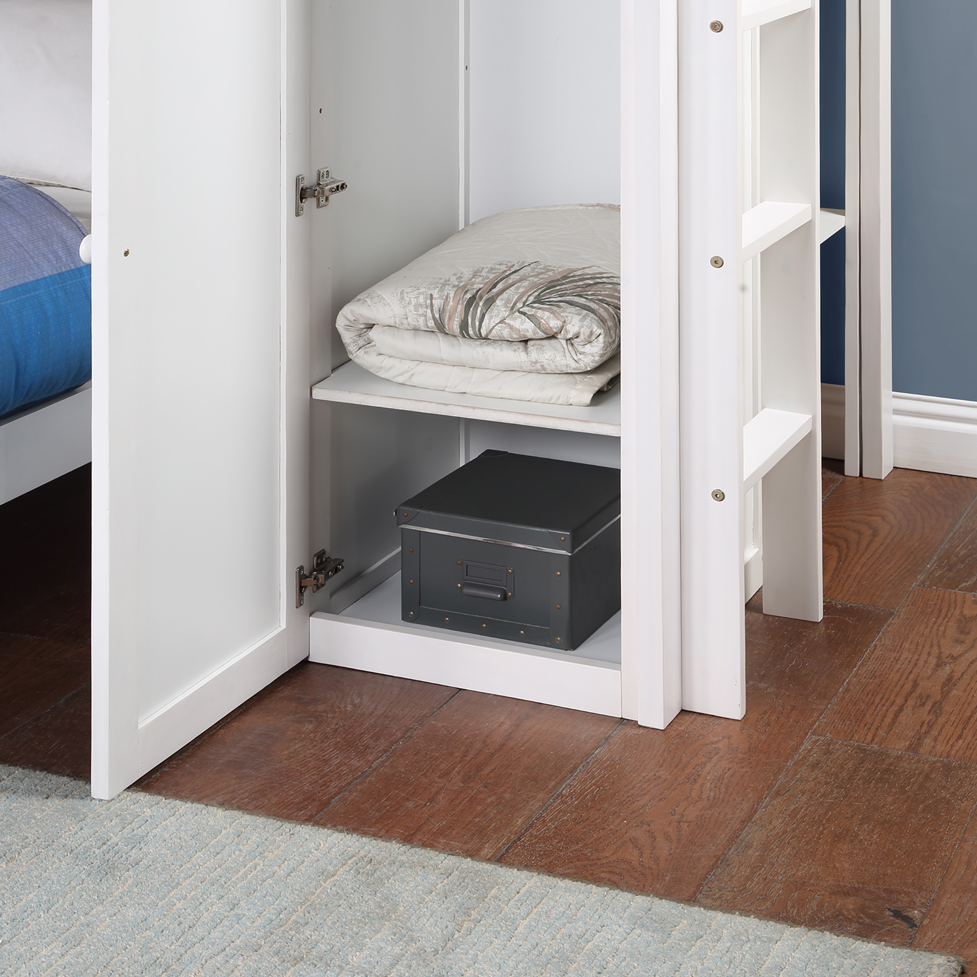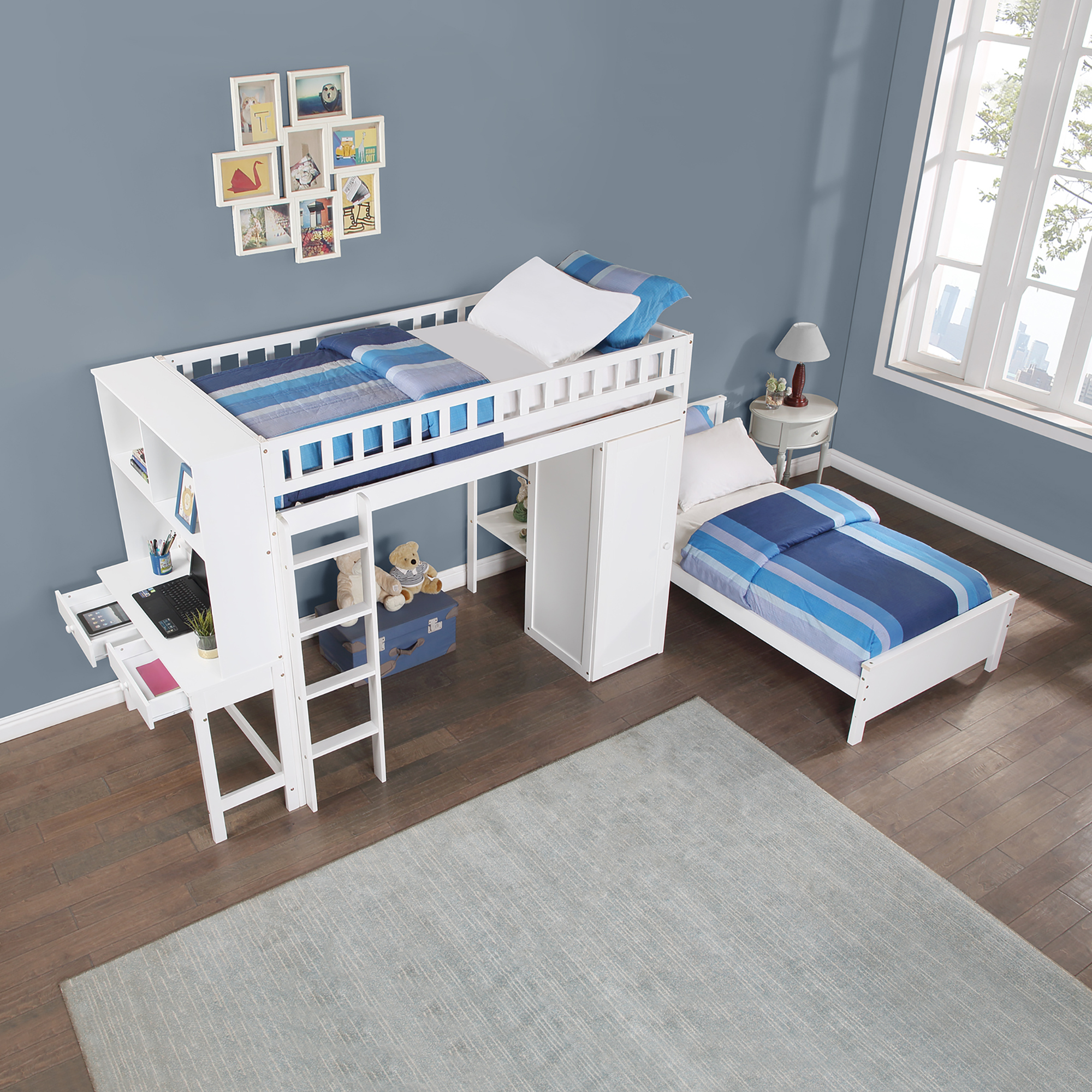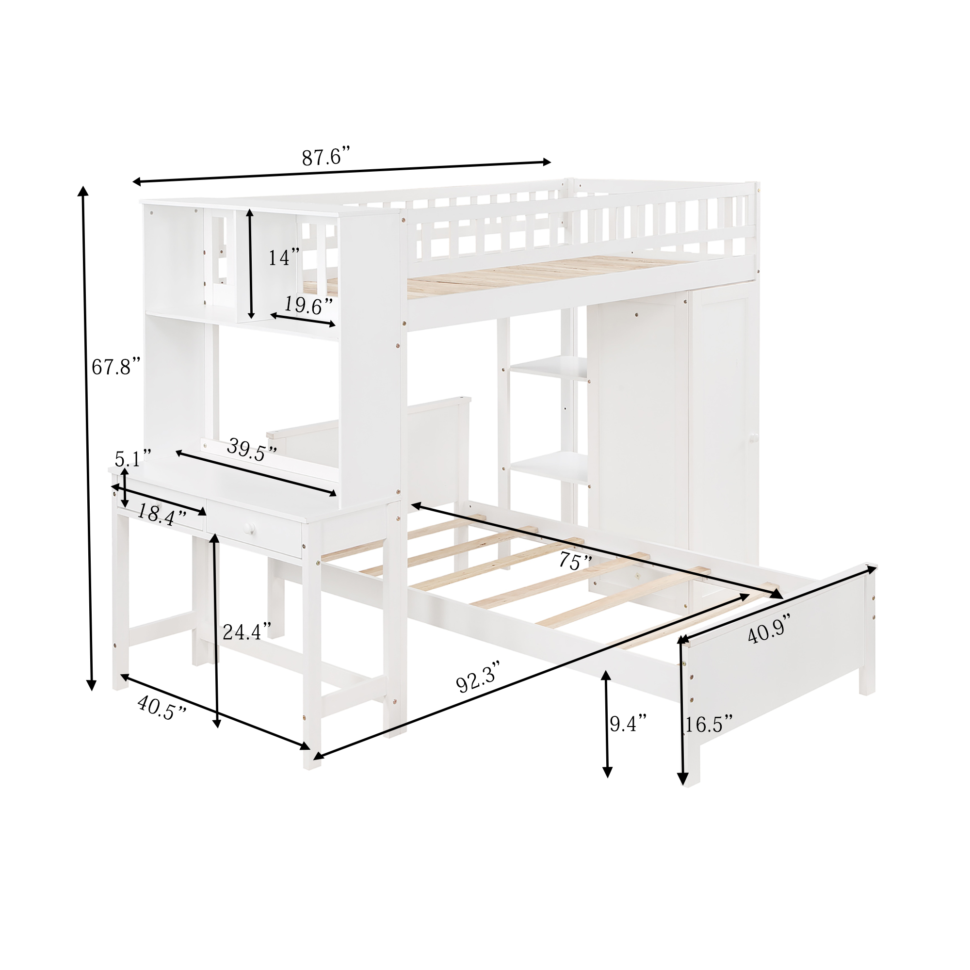 - [Loft Bed for Large Families] A twin bed combined with a desk, closet, and storage shelf. This loft bed provides a convenient and flexible arrangement option for large families and sleepovers by taking advantage of vertical space. This product provides an extra twin bed for families with multiple children·
