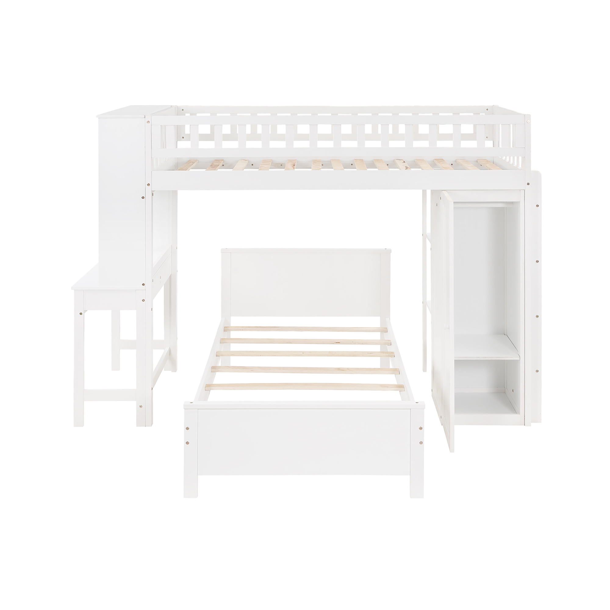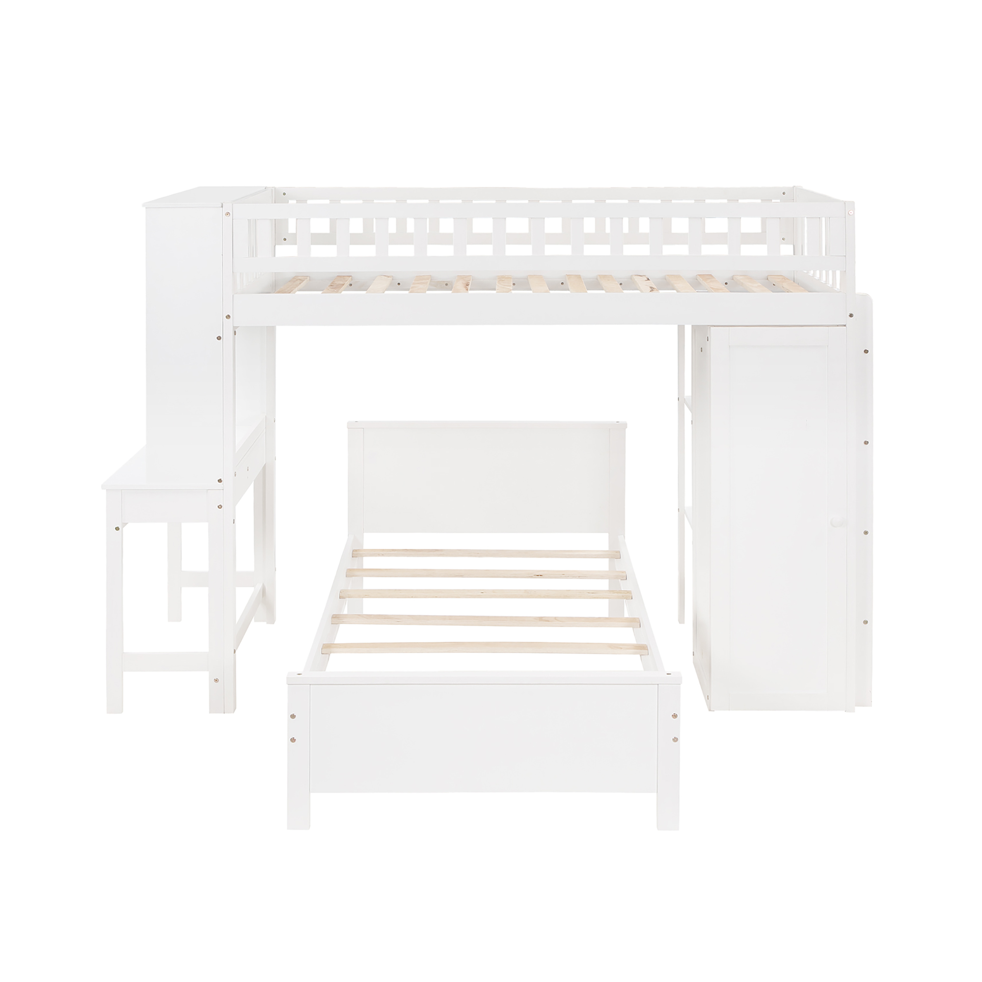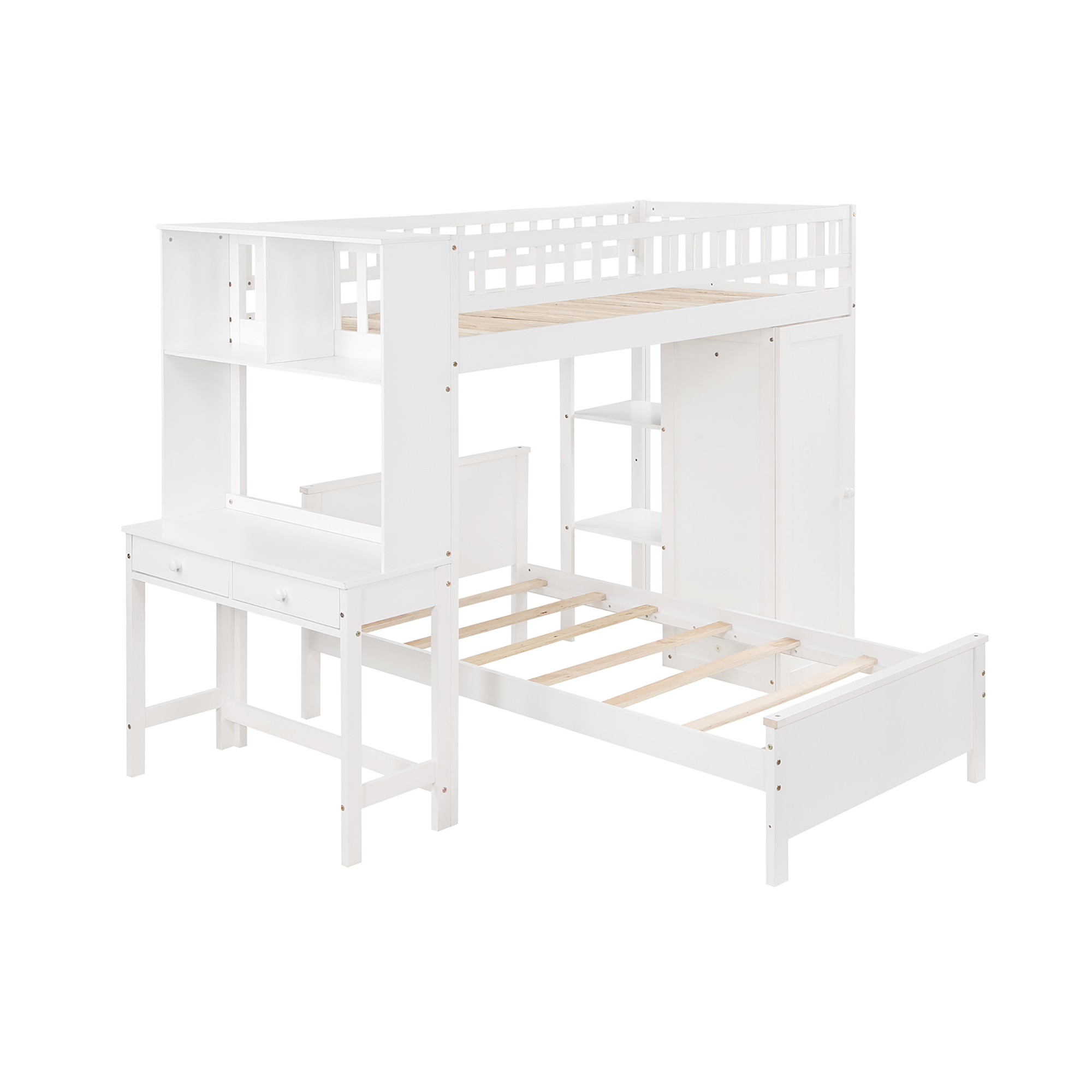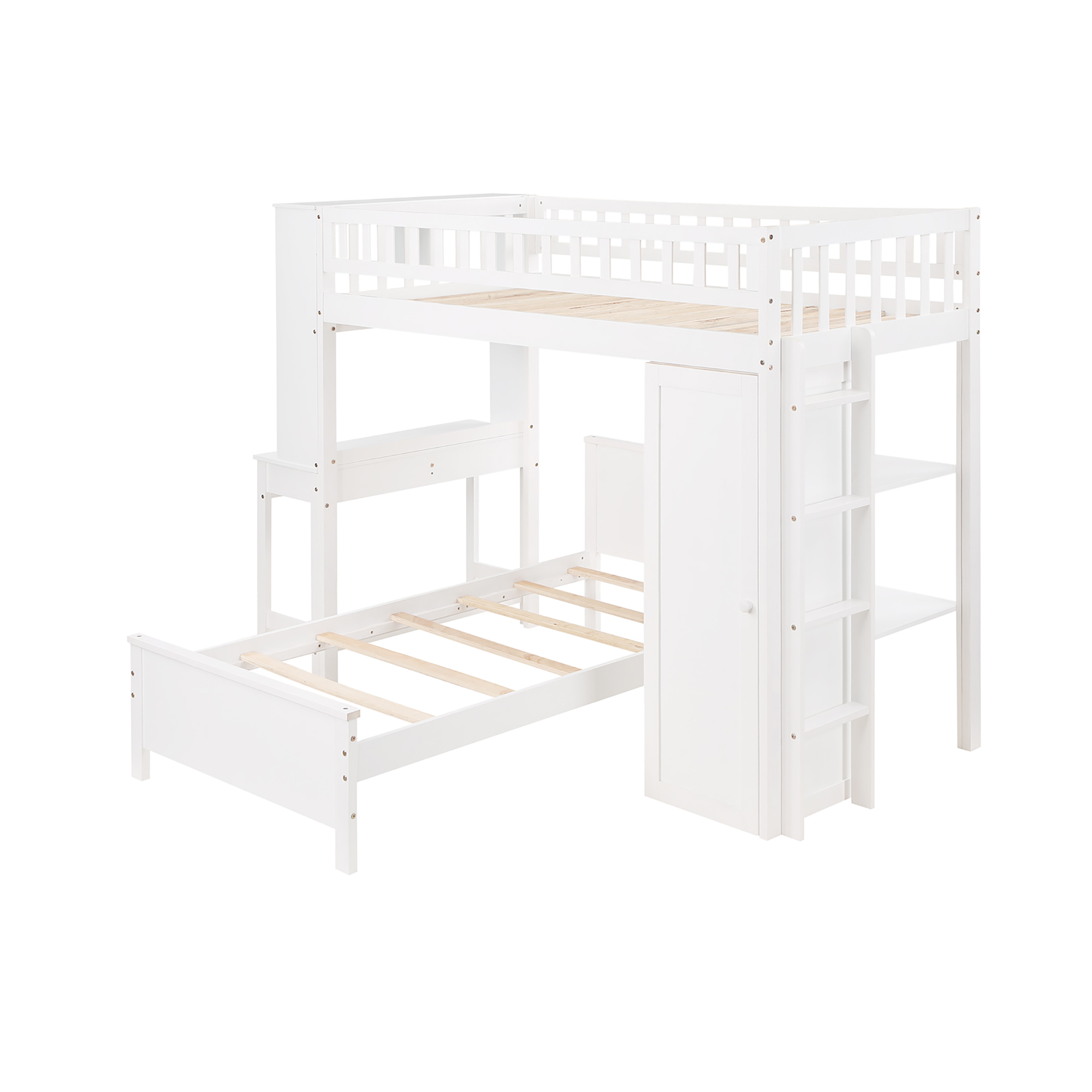 - [Loft Bed for Large Families] A twin bed combined with a desk, closet, and storage shelf. This loft bed provides a convenient and flexible arrangement option for large families and sleepovers by taking advantage of vertical space. This product provides an extra twin bed for families with multiple children·