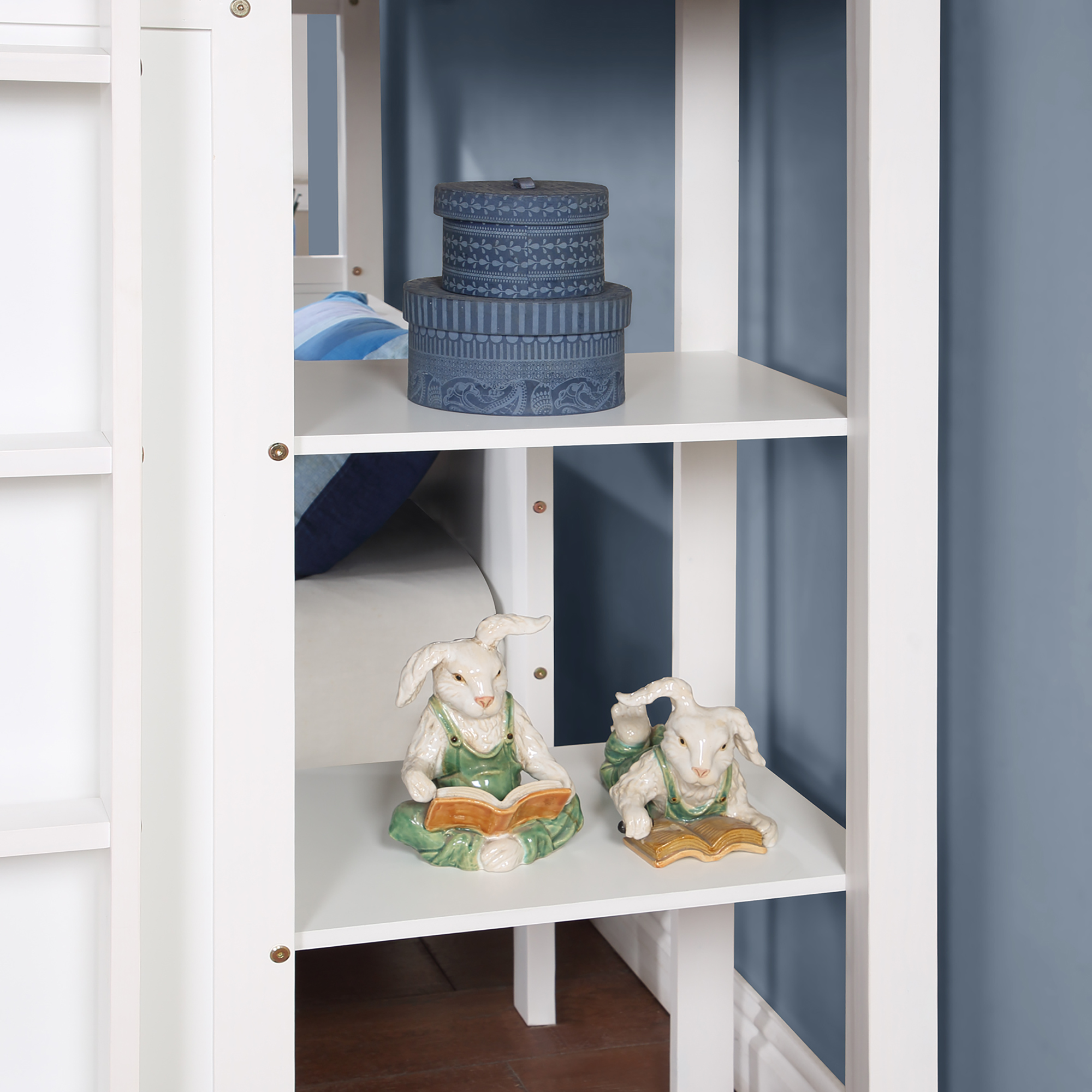 - [Multiple Function] The supporting desk can provide a place for children to study in daily life, shelves and closet can provide more storage space, and the shelf height of the closet can be easily adjusted from 14" to 28"