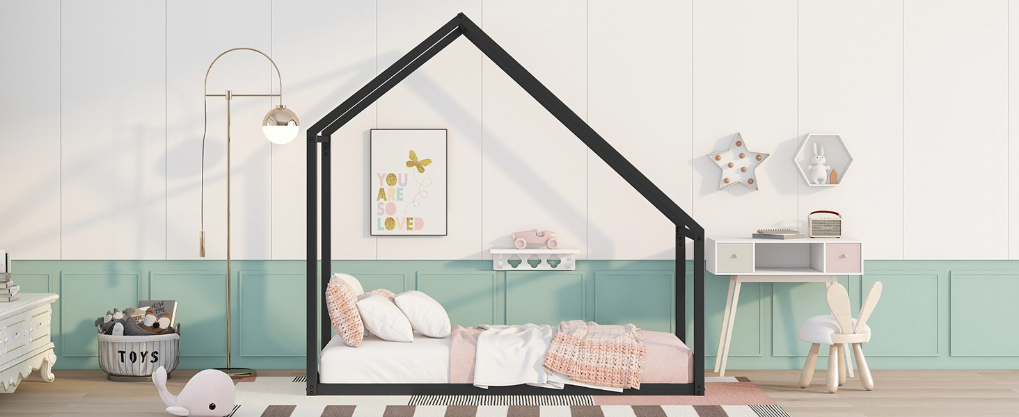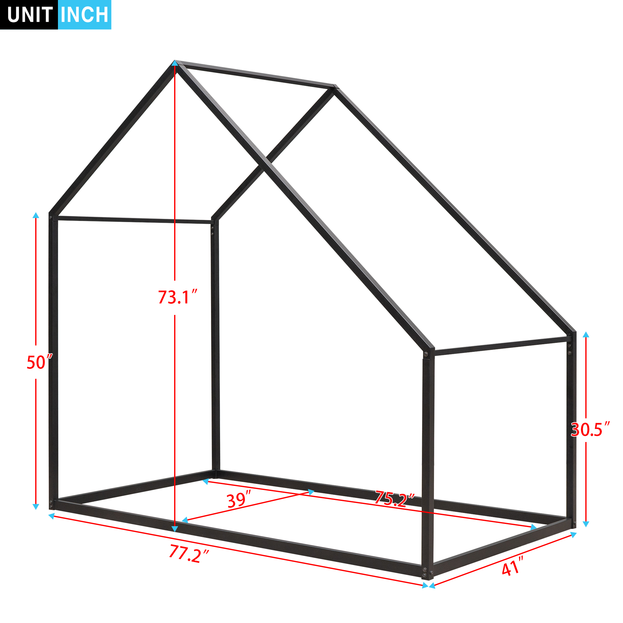 [Superior Quality] The twin size house bed is constructed with metal frame that can enhance stability and durability. Slats are not included, you need to prepare box springs or foundations.