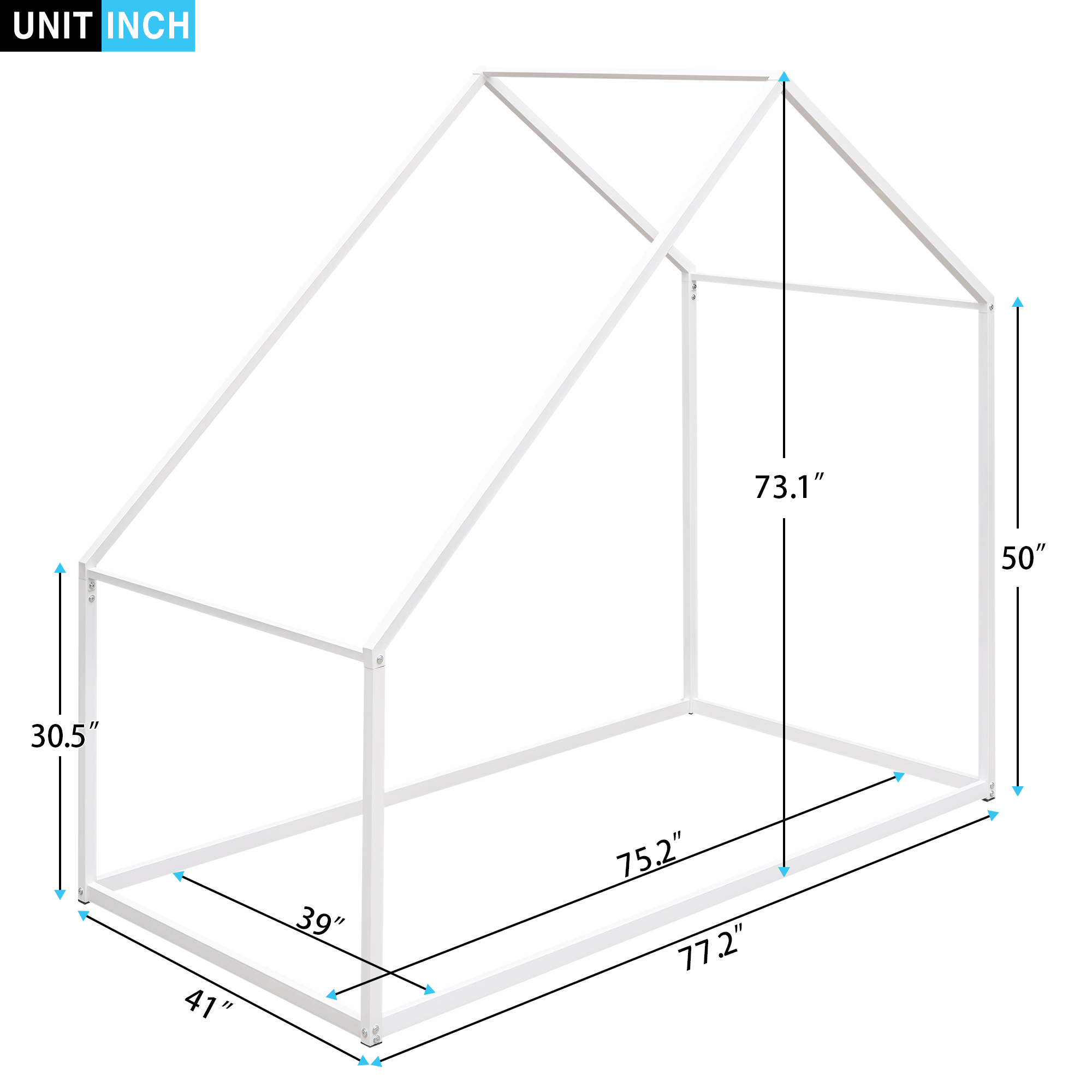 [Superior Quality] The twin size house bed is constructed with metal frame that can enhance stability and durability. Slats are not included, you need to prepare box springs or foundations.