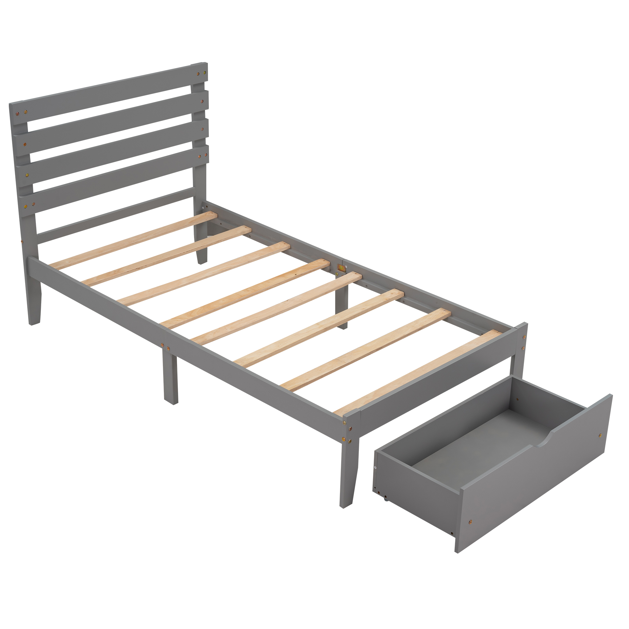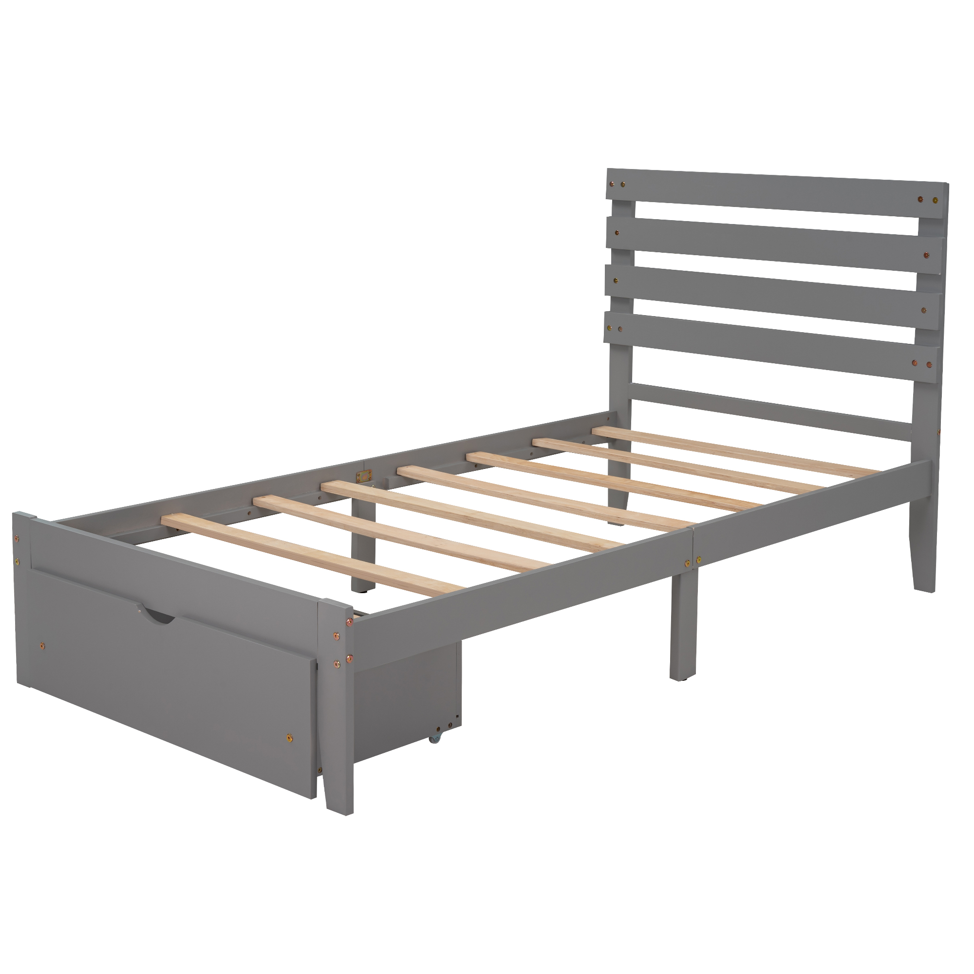 This platform bed features simple and modern appearance, suitable for any room layout. The headboard is consisted of wood slats, easy to assemble and provides great support when you’re leaning on it. Constructed of solid pine wood and MDF, the platform bed can withstand the test of time and serve your family for many years. The under-bed drawer is available for you to store your stuff, you can put the drawer either side of the bed. Coming with great quality and elegant appearance, the bed will definitely be your best additional to your bedroom.