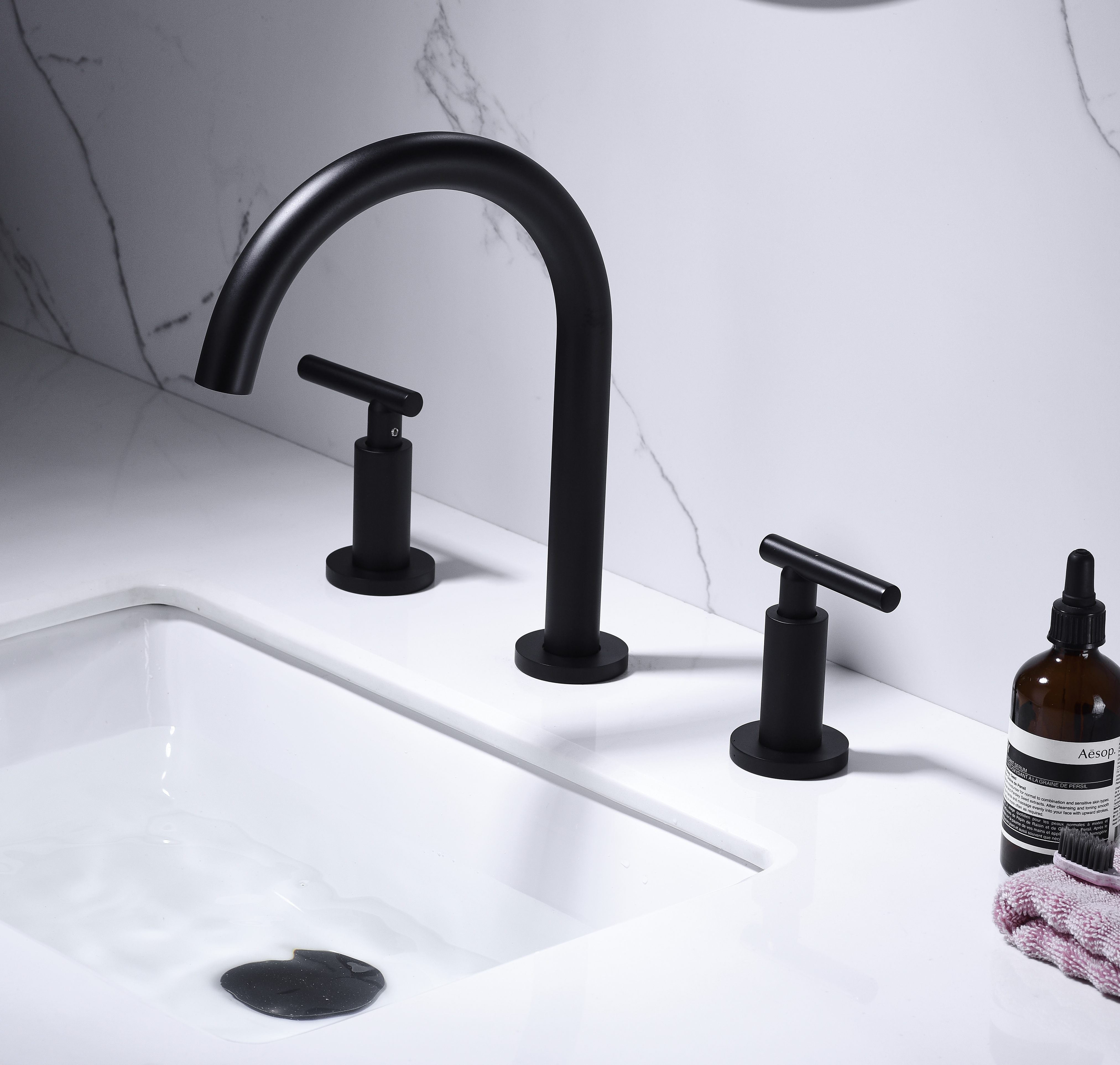 Two Handle High Arc Widespread Bathroom Sink Faucet 3 Hole Our Bathroom Faucet made of brass, the purity is 50% higher than ordinary brass, is healthier and stronger. Reliability is the biggest significance of faucet.The high-quality ceramic & copper cartridge developed has passed 500,000 cycles of water tightness test to ensure that the faucet is stable and will not leak water. CEC listed. Flow Rate: 1.2 Gallons Per Minute.The NEOPERL aerator imported from Germany strengthens the foaming effect of the dense honeycomb, the water flow is dense and soft without splashing, can save 35% of water consumption. Humanized detachable aerator, you can clear hard water blockage at any time.【 Easy Installation 】Creative 3-head quick connection design can help you install by yourself with 15mins, without a plumber and save the fee, the box contains all you need (including supply hoses and pop up drain). Just do it yourself, let you be a Hero of your Family.
