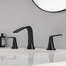 Two-Handle Widespread Bathroom Faucet Black Bathroom Faucet 8 Inch 3 Holes Waterfall Bath Sink Lavatory Supply Lines Hose