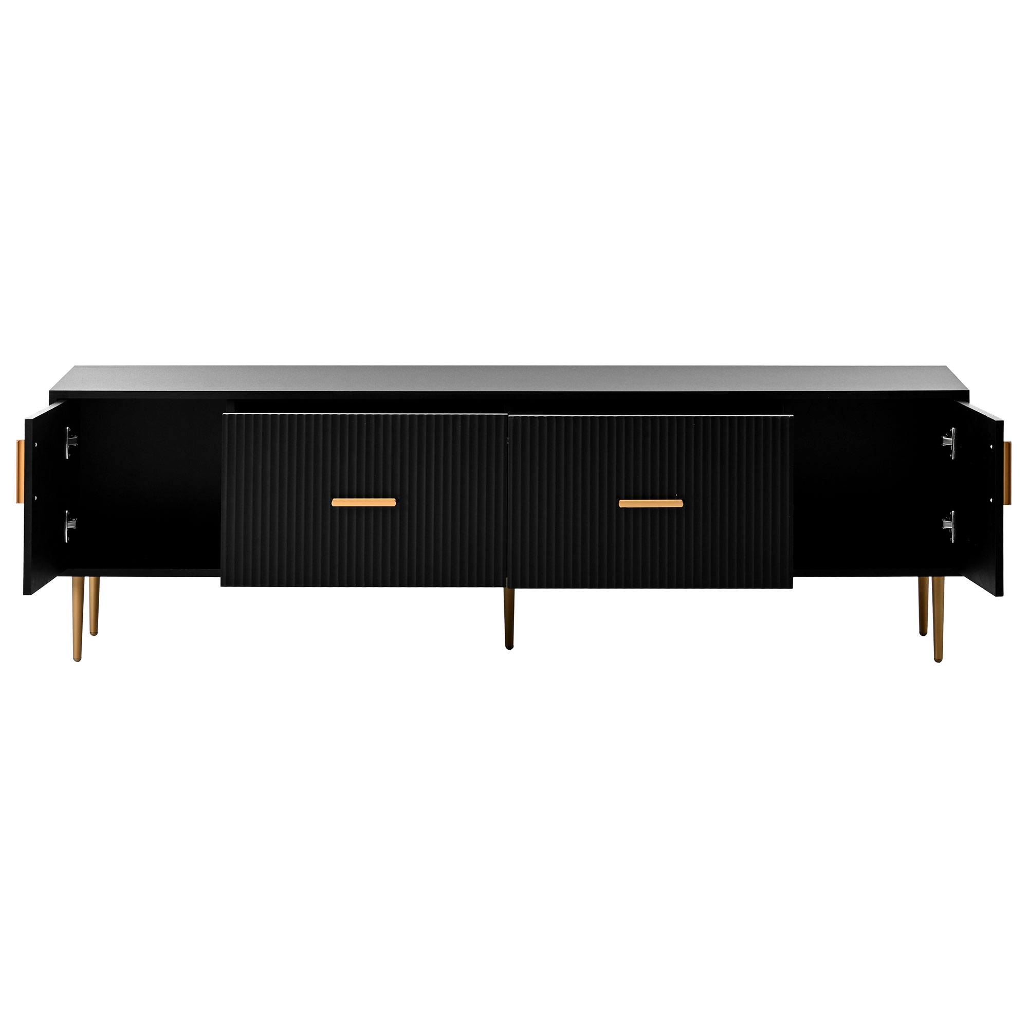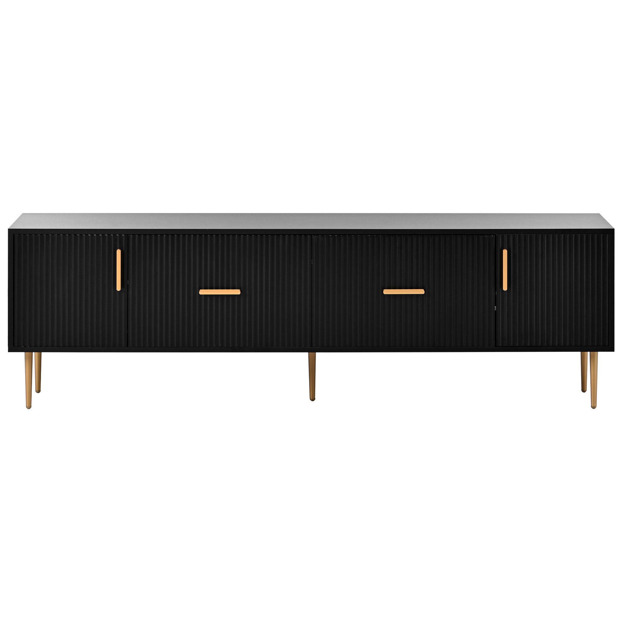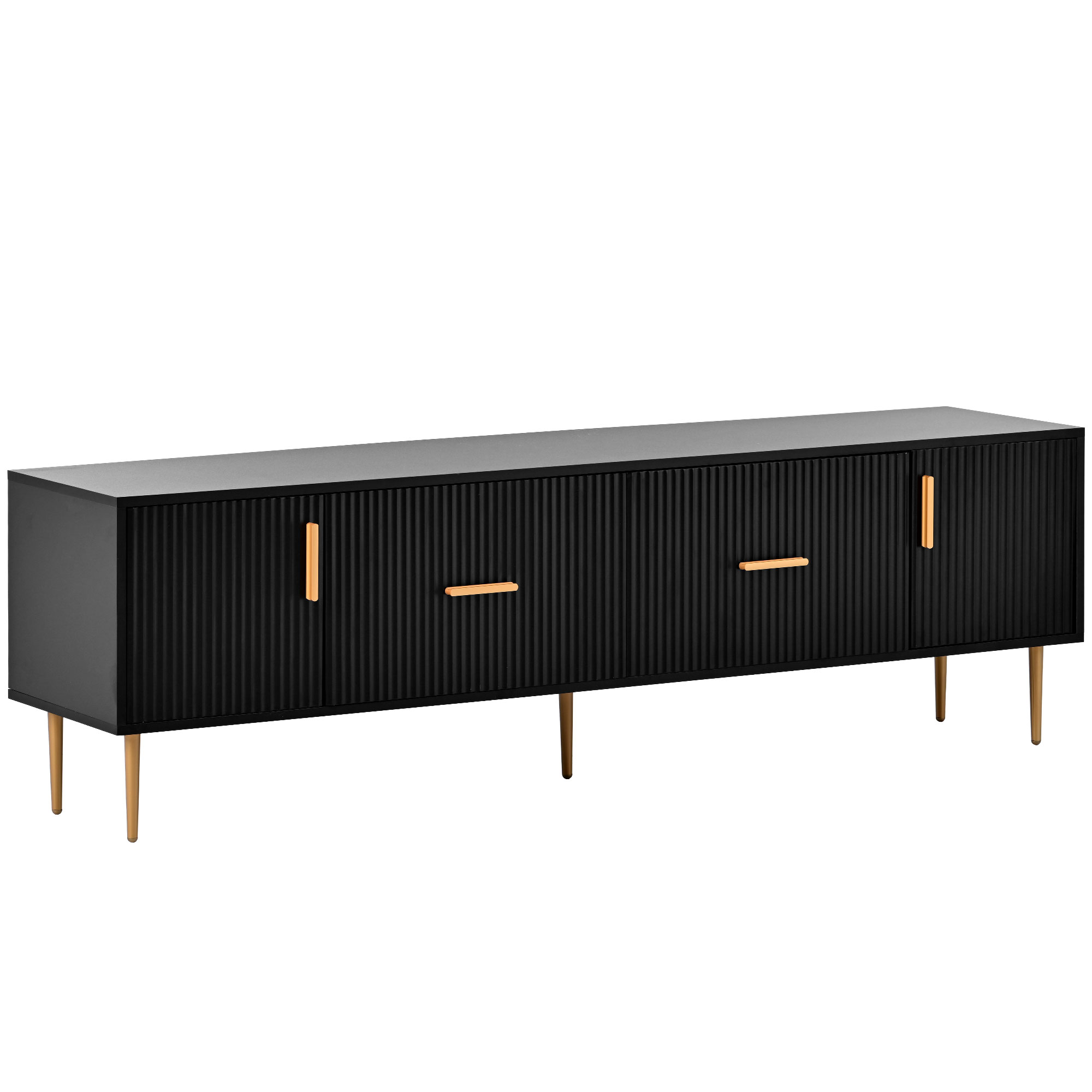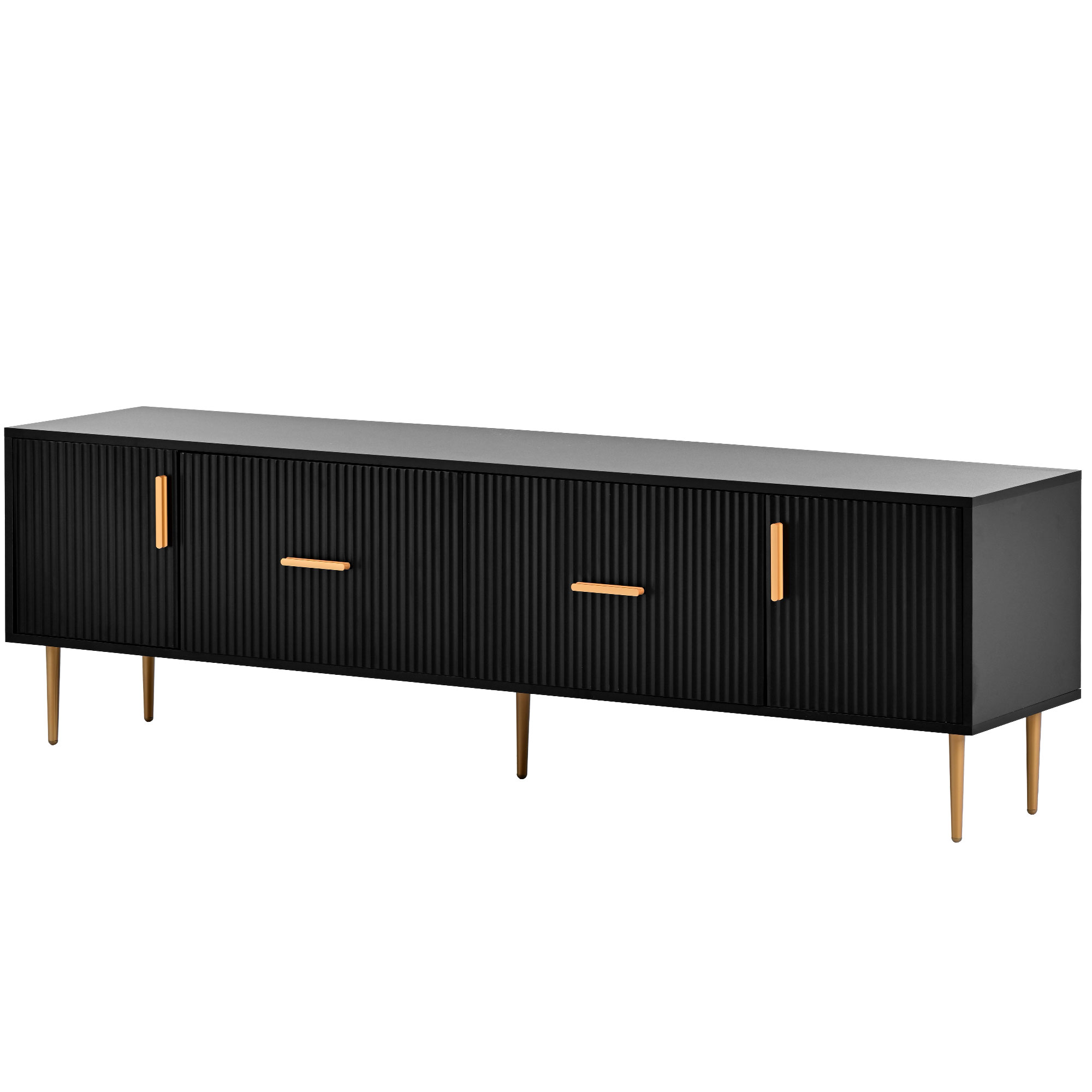 This modern TV Stand has been designed with both style and practicality in mind. Made of high quality materials and featuring a contemporary design and 5 champagne legs, this durable TV Stand offers plenty of room and storage for your television equipment, media, and other accessories. It is easy to install, and perfect for any living room or entertainment center. Add a modern and fresh touch to your home with the stylishly designed TV Stand!