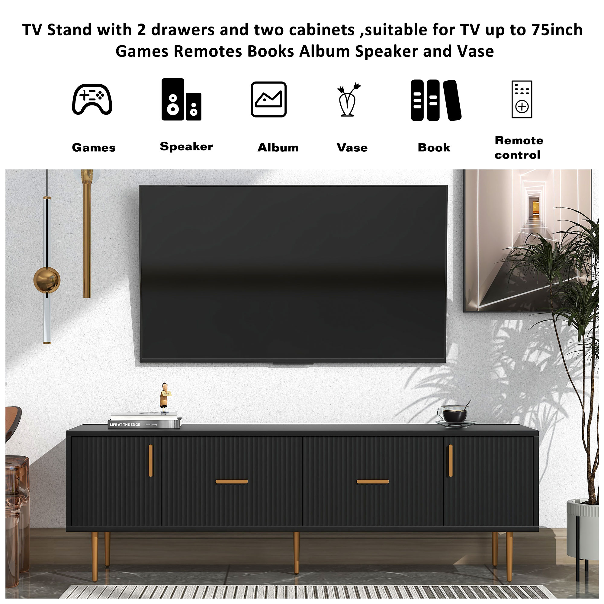 - [SPACIOUS] This TV Stand offers ample storage space, providing you with plenty of room for all your favorite television equipment, media, and accessories.