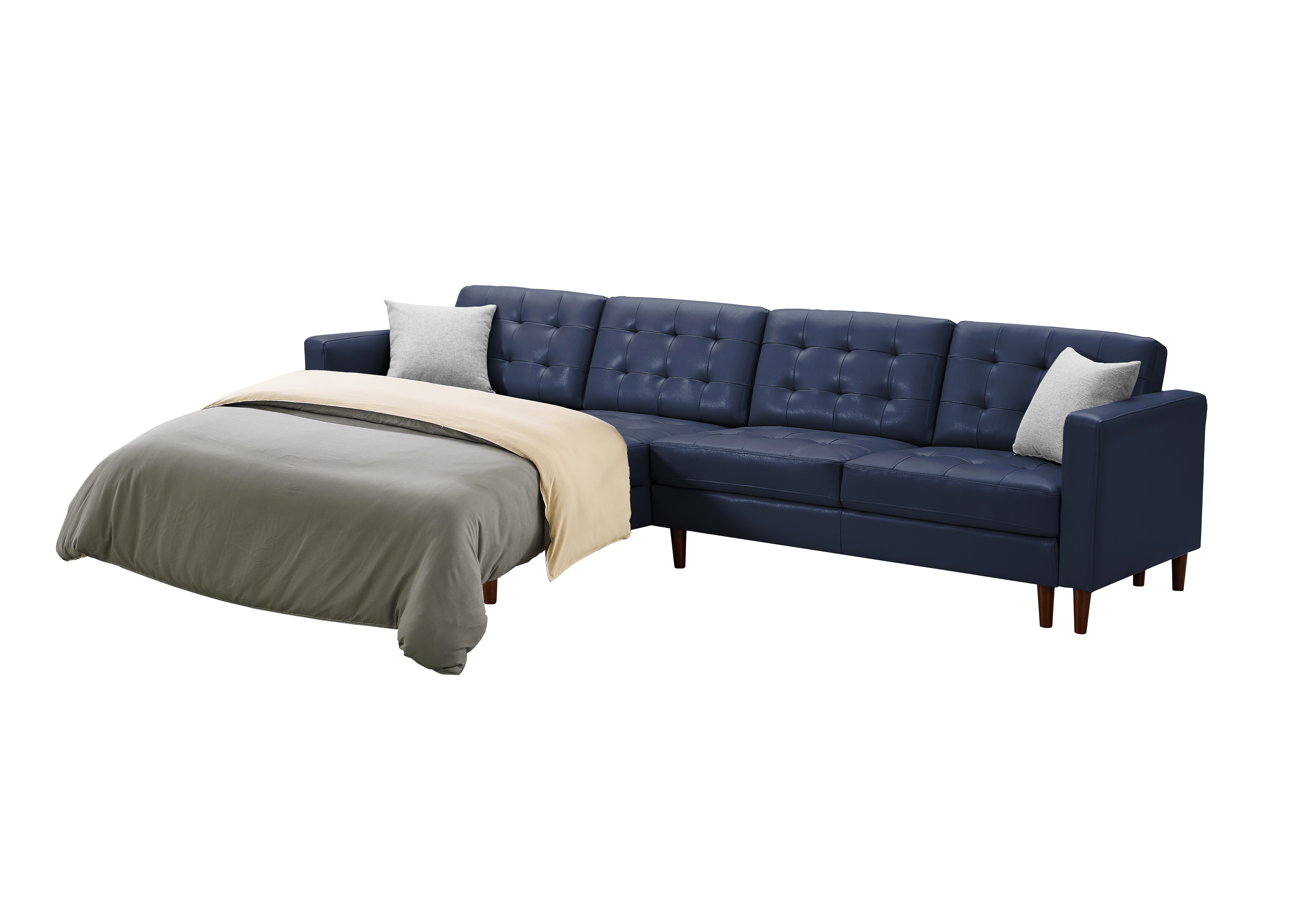 Suitable for large space sofa in living room, high density sponge, tufted backrest, with two throw pillows, solid wood legs.