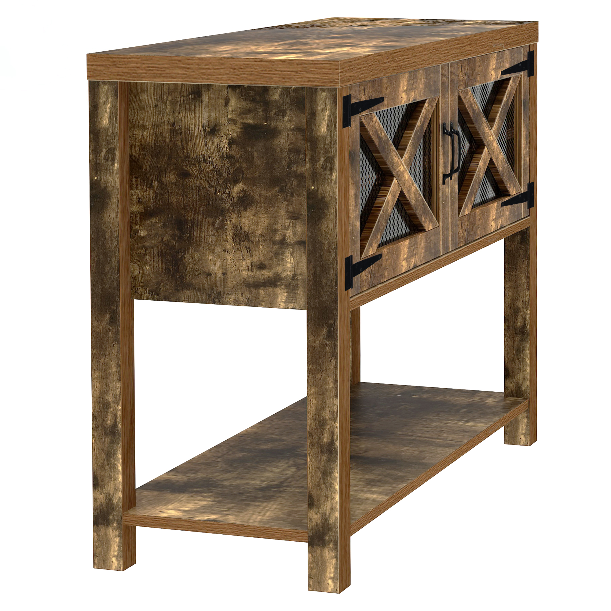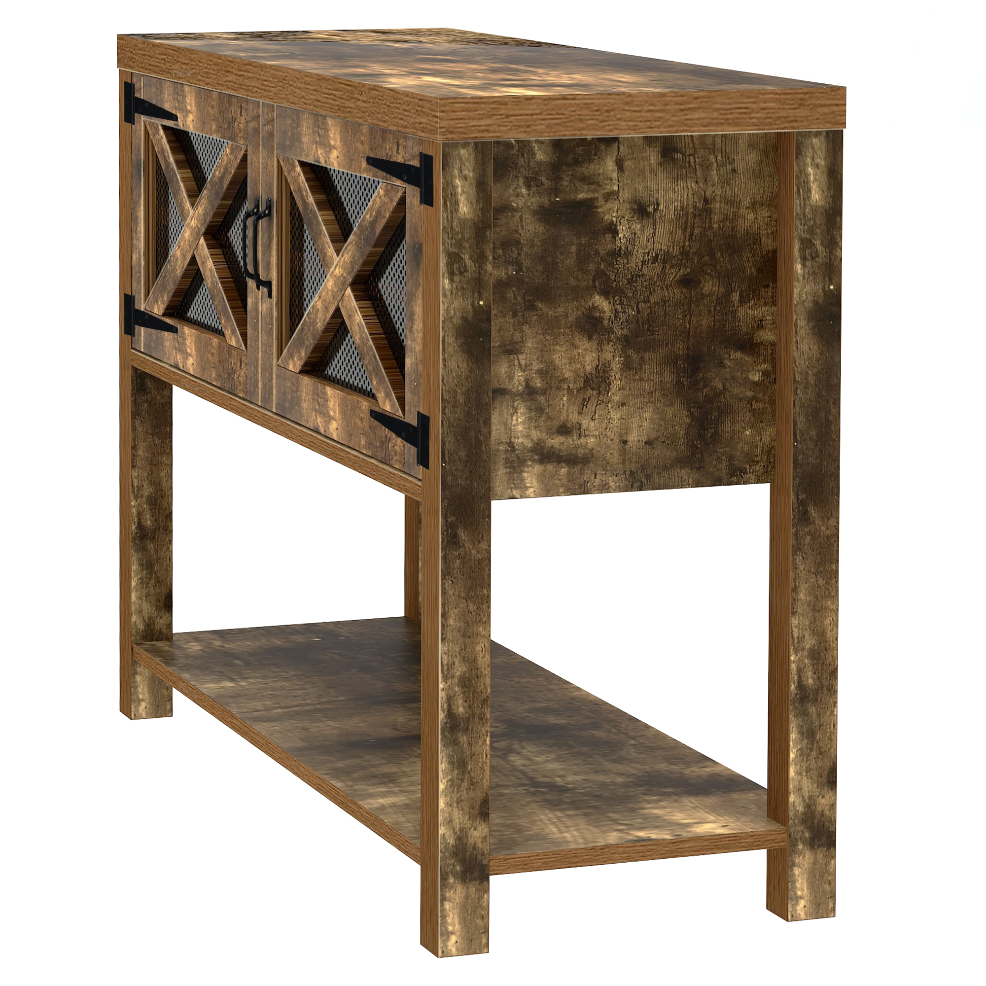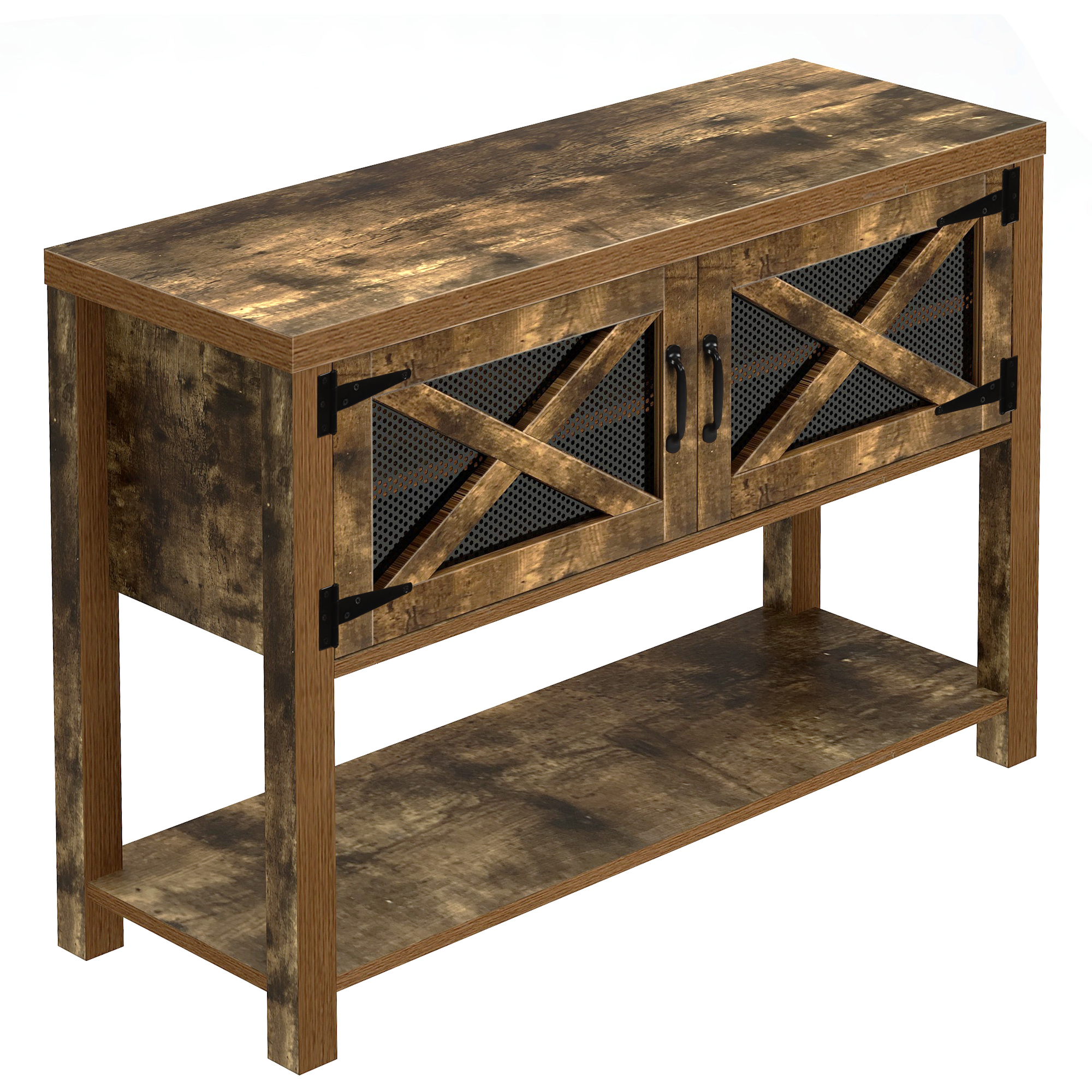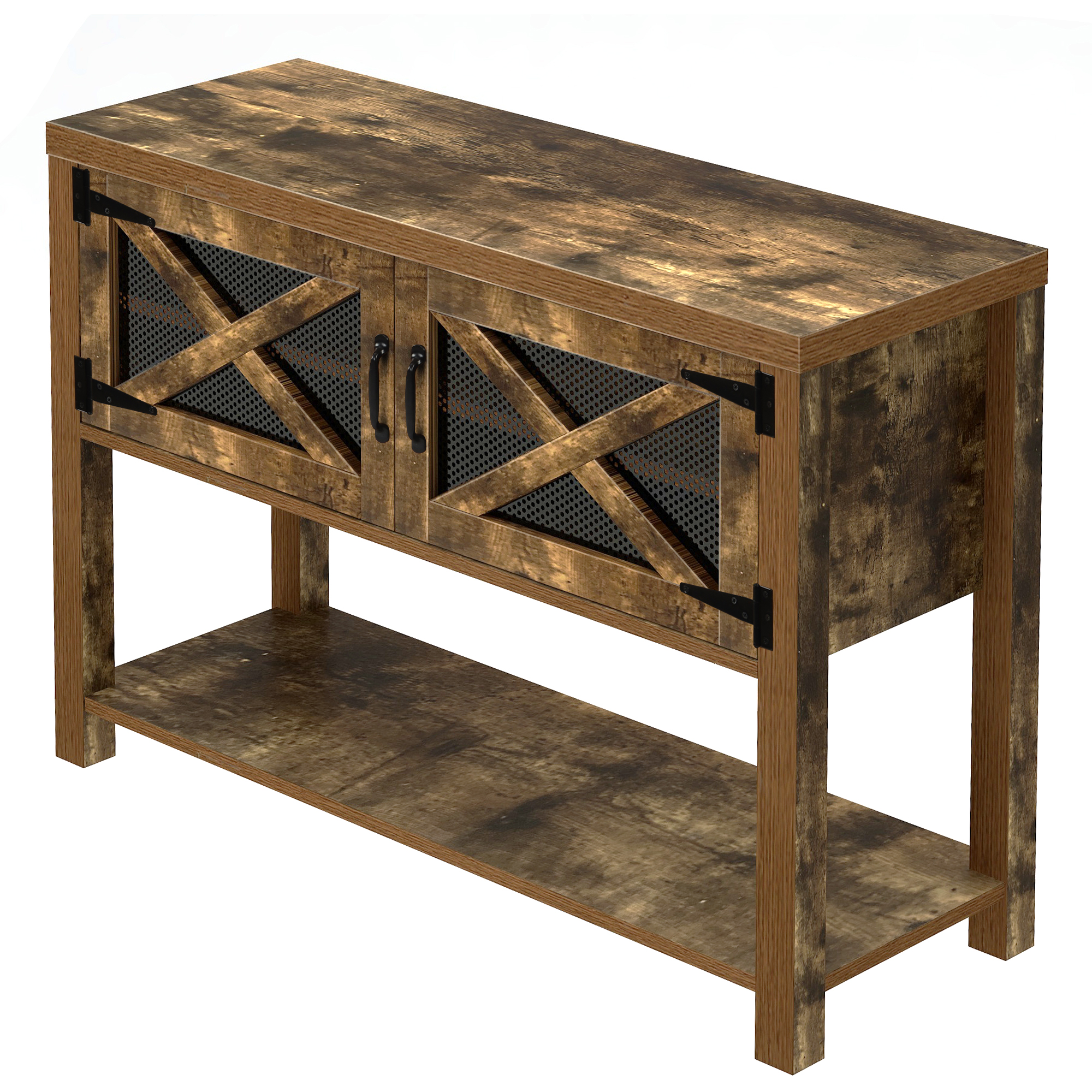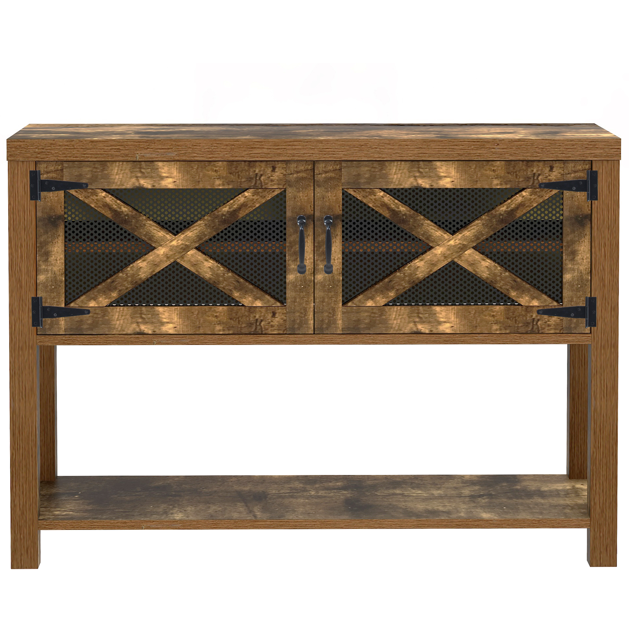 This rustic console with mesh metal door cabinets and simple lines make this TV stand look classic and elegant. It can be used as TV stand, also perfect for sofa table, hallway Table, entry table, entertainment center, media stand, storage console table, etc.