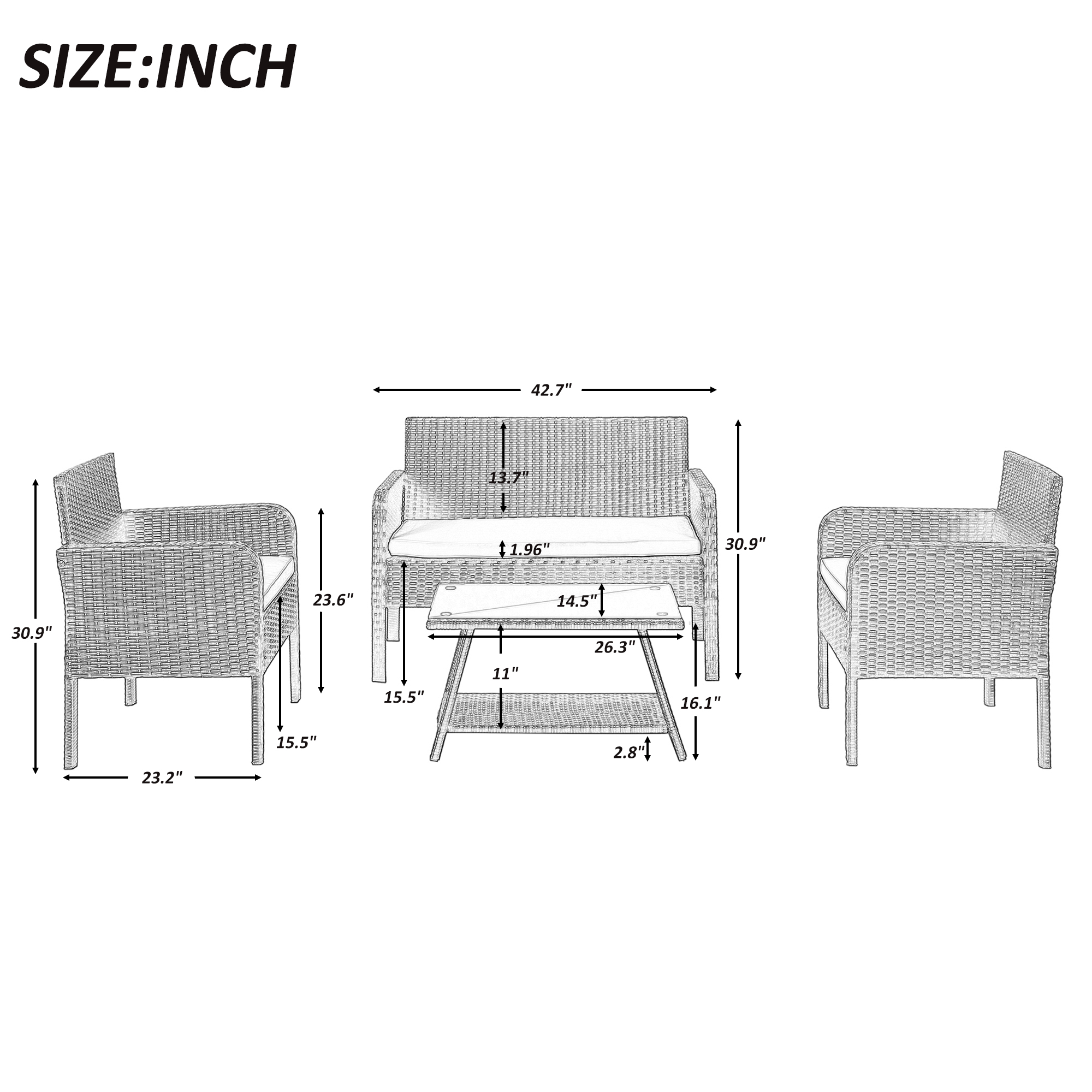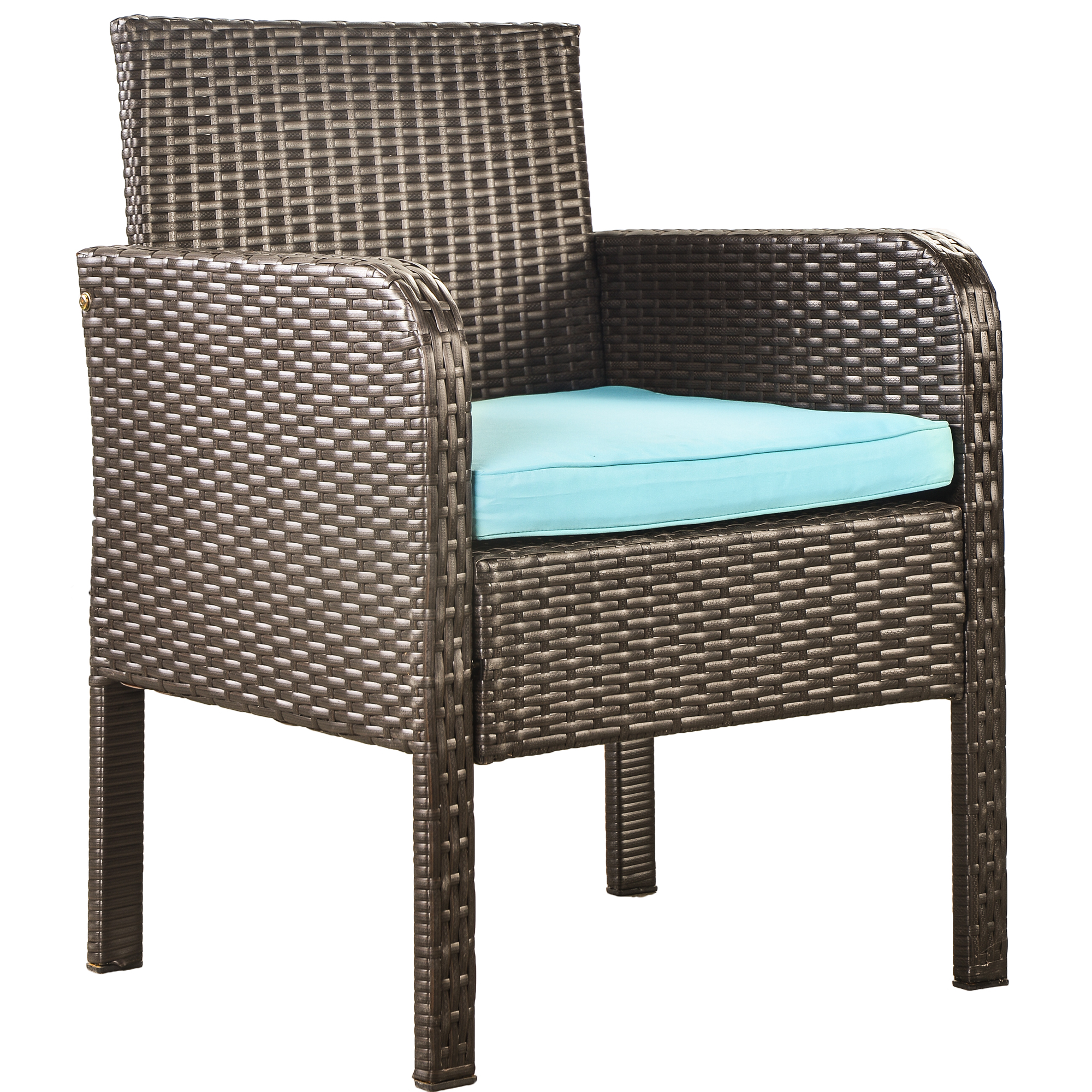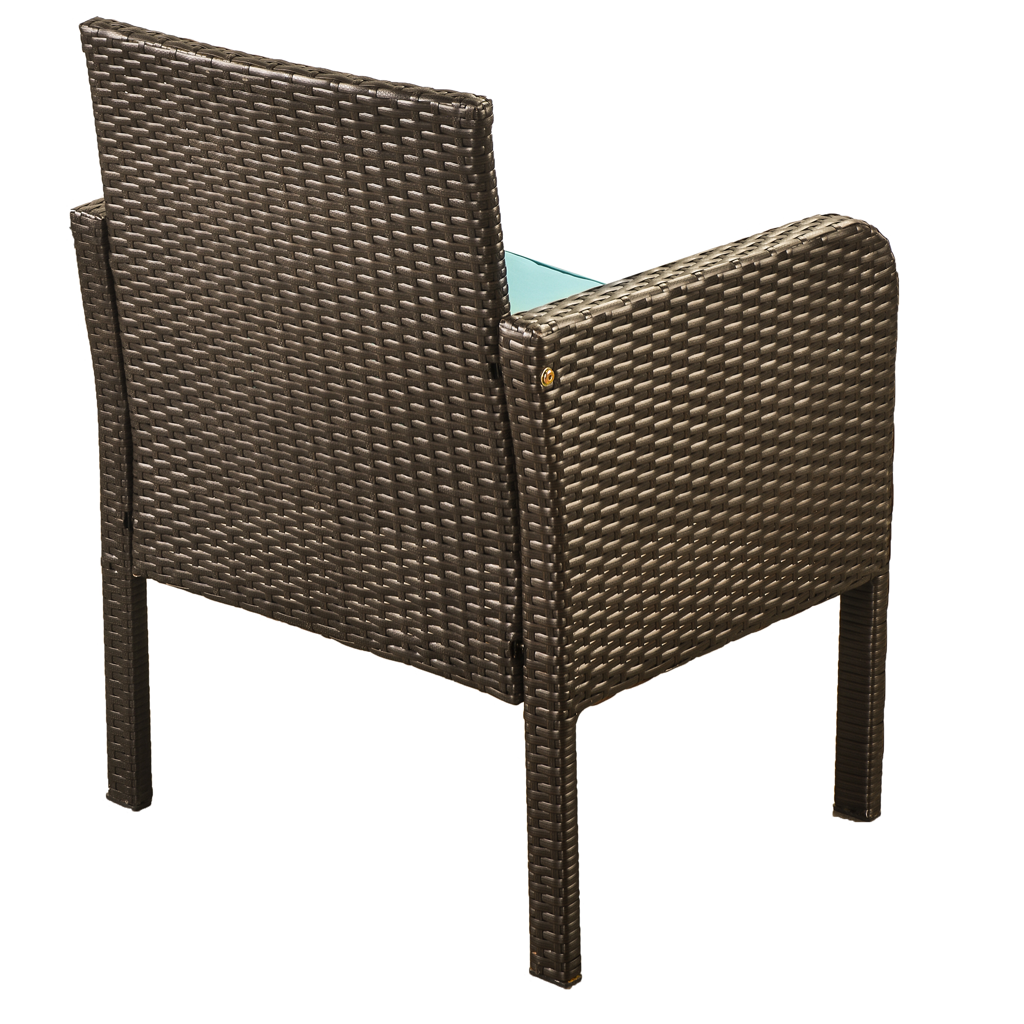 Take an elegant approach when it comes to furnishing your backyard or patio. Complete with 4 pieces, this set can seat a total of 4 people, coming with 2 chairs and a loveseat. Outfitted with soft foam cushions this, patio set offers the perfect blend of comfort and charm, also boasting rich cobalt blue cushion upholstery that is easy to spot clean and has been double stitched for maximum durability. The gradient commercial grade rattan has been formulated to be weather proof to prevent untimely cracking, fading, rot and more adding to overall longevity. Enjoy the center coffee table and entertain guests with food and drinks with its shatter resistant tempered glass top.
