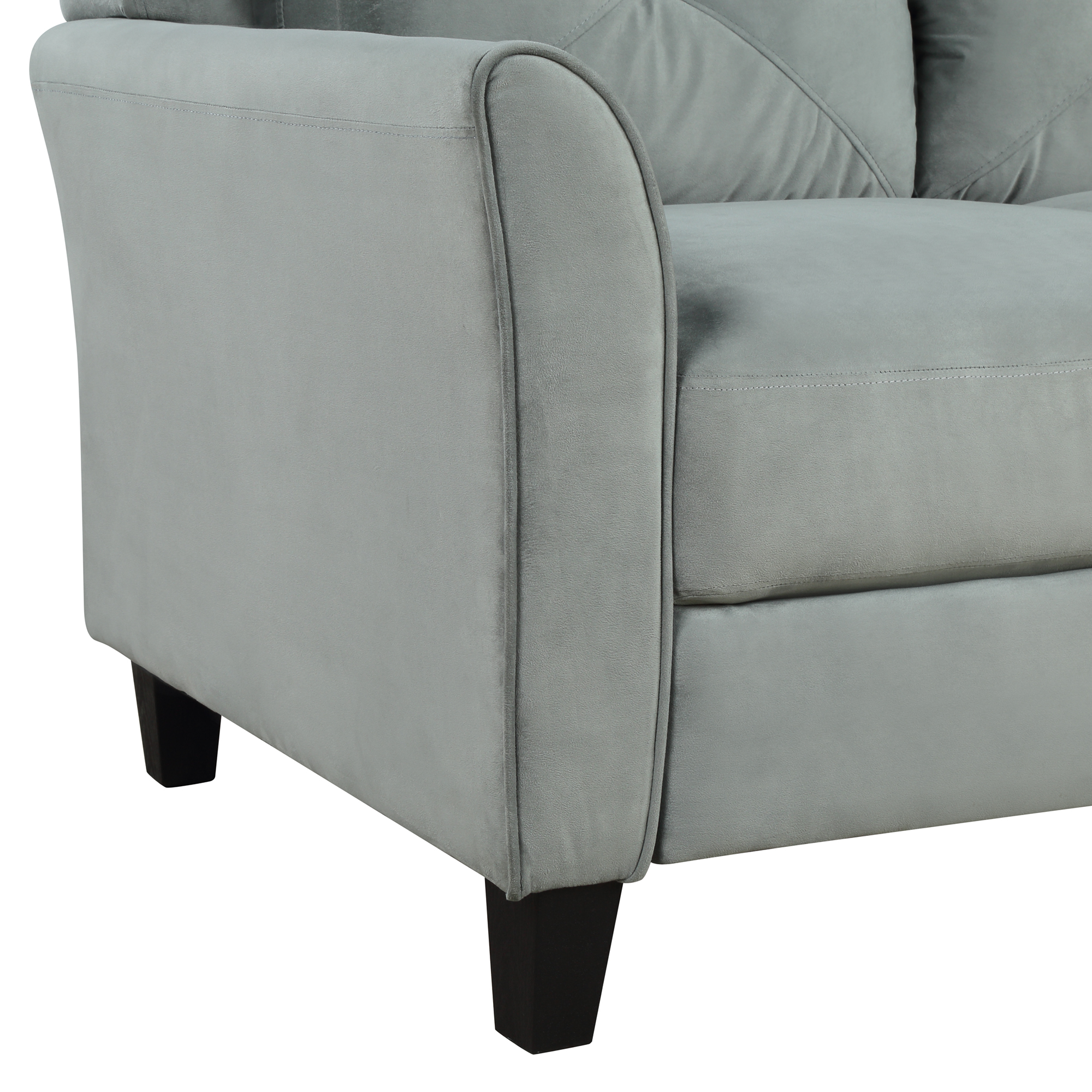 Each rounded back cushion features diamond button tufted accents for a traditional polished appearance