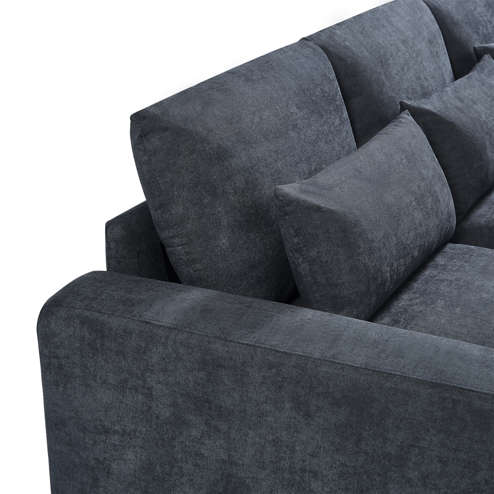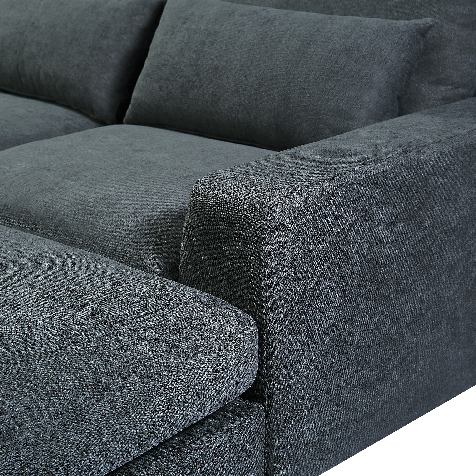 [Comfortable ] Upholstered in tough linen with cushions featuring thick foam and feather cushion padding for prime relaxation. Lean back and stretch out your legs out long on the chaise lounge when you or guests need more space. Customize the placement of the four pillows anywhere you would like to add increased support when sitting after a long day or watching a movie.