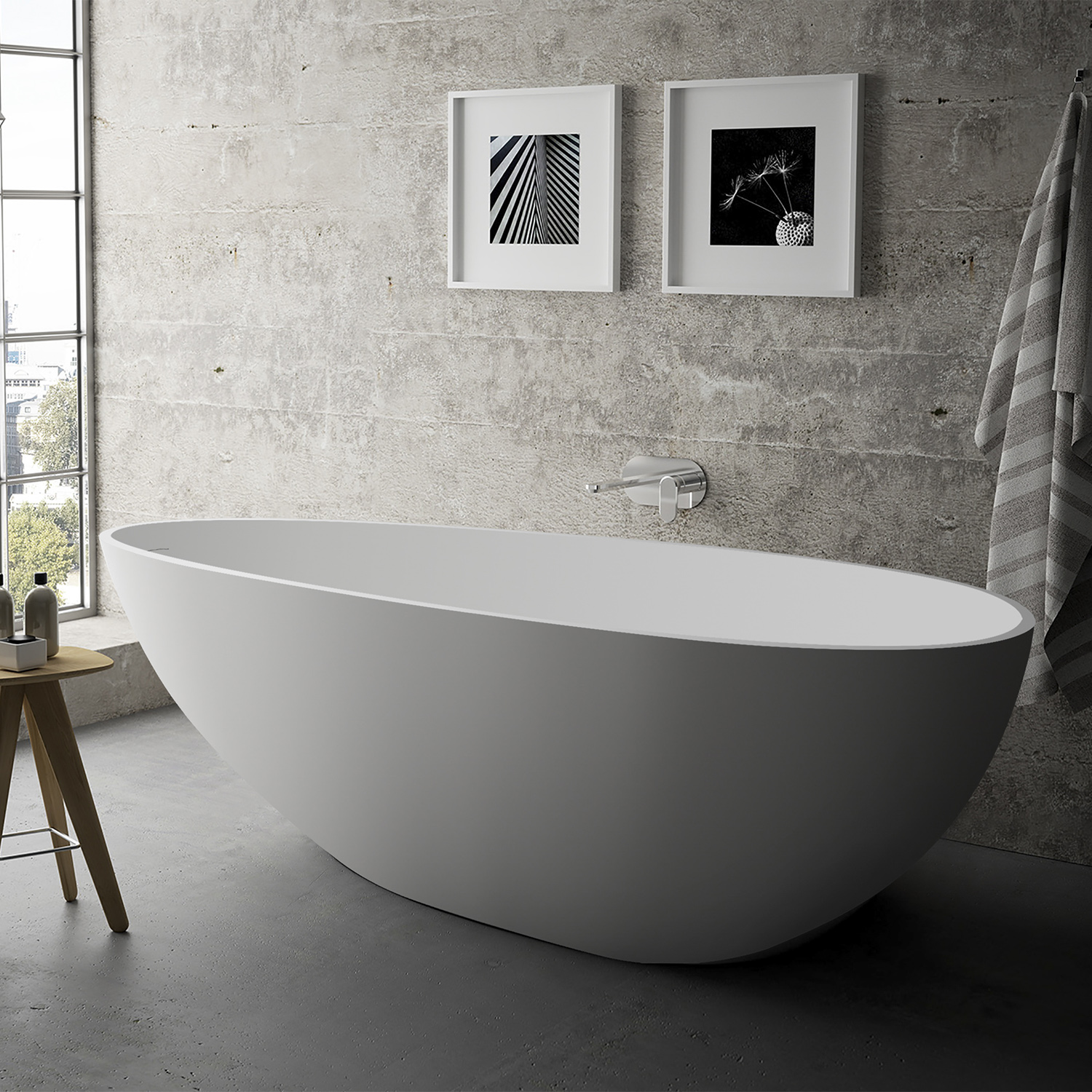 This freestanding tub is a very high-end product made of solid surface, which is very stable and can stand firmly on the floor.
