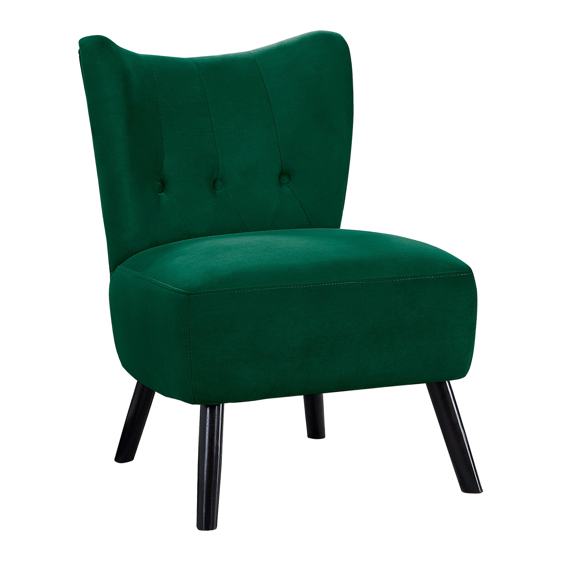 Features:-•Solid wood and plywood frame•Foam padding over pocket coils•Velvet Fabric upholstery•Attached back and seat cushions•Exposed wood legs with brown finish•Button-tufted chair back•Minimal assembly required•Weight capacity: 300lbs•Fabric Type: Velvet•Fabric Color: Green•Fabric Content: 100% polyesterProduct Description:-Fun and funky, these Collection will add vibrant accent to your home’s modern décor. The bold green velvet covering of this retro-inspired accent chair is sure to draw attention. Dark brown finished wood legs, button accent and contoured shape lend to the unique styling of the collection. Also available in gray, red, yellow and orange velvet coverings.Product Dimensions:-Overall Dimension: 22.5" x 27.5" x 33"HSeat Width: 22.5"Seat Depth: 18.5"Seat Height: 18.5"Listing Includes :- One Accent Chair Only.Simple Assembly Requires.Shipment Service:Shipping Service Include Curb Side Delivery With Free Lift Gate Service.NOTE : No Inside Home Delivery.Shipment will take around 8-14 Business days