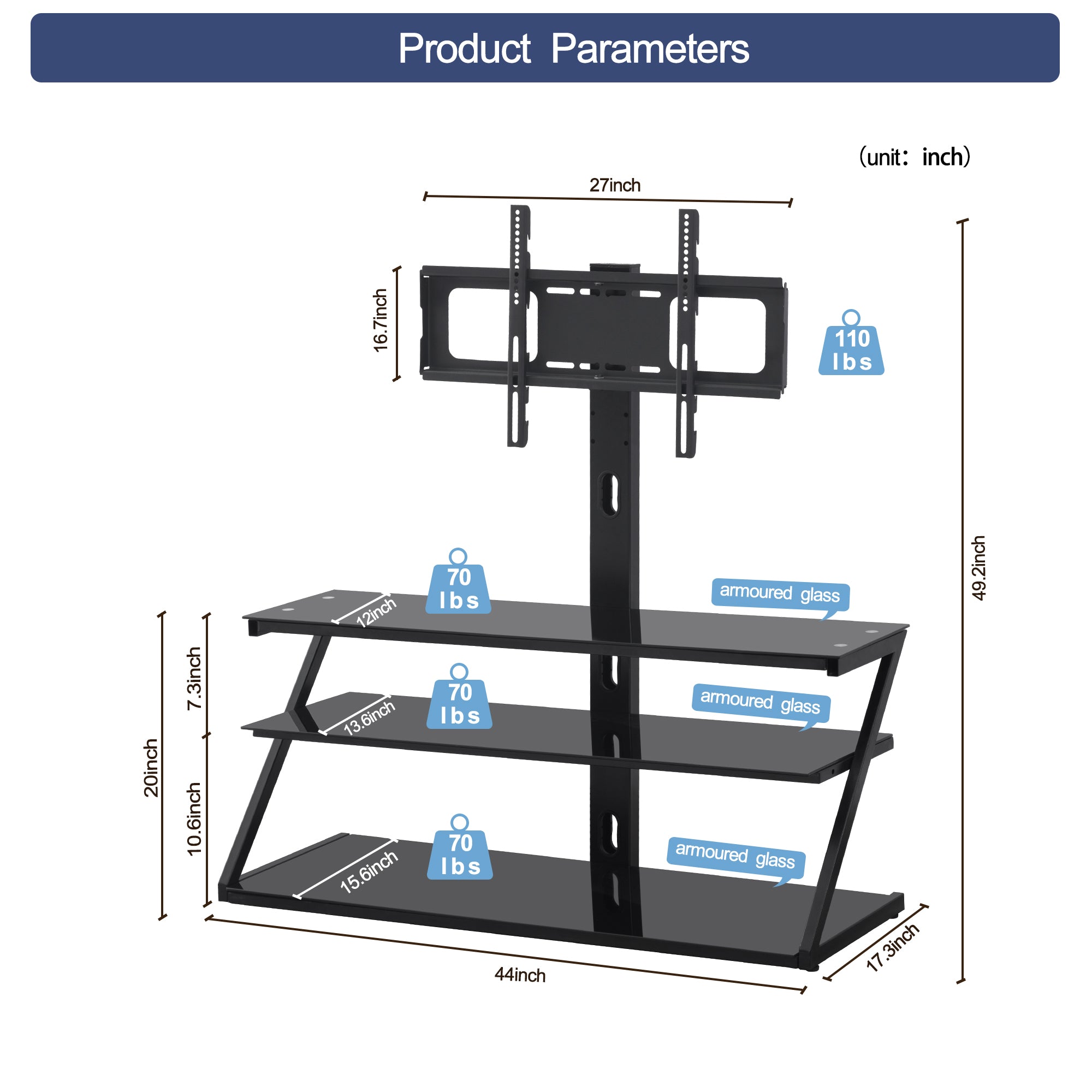 3-TIER GLASS SHELF - Can accommodate more entertainment equipment,Such as DVD, stereo, PS4, game console, etc.