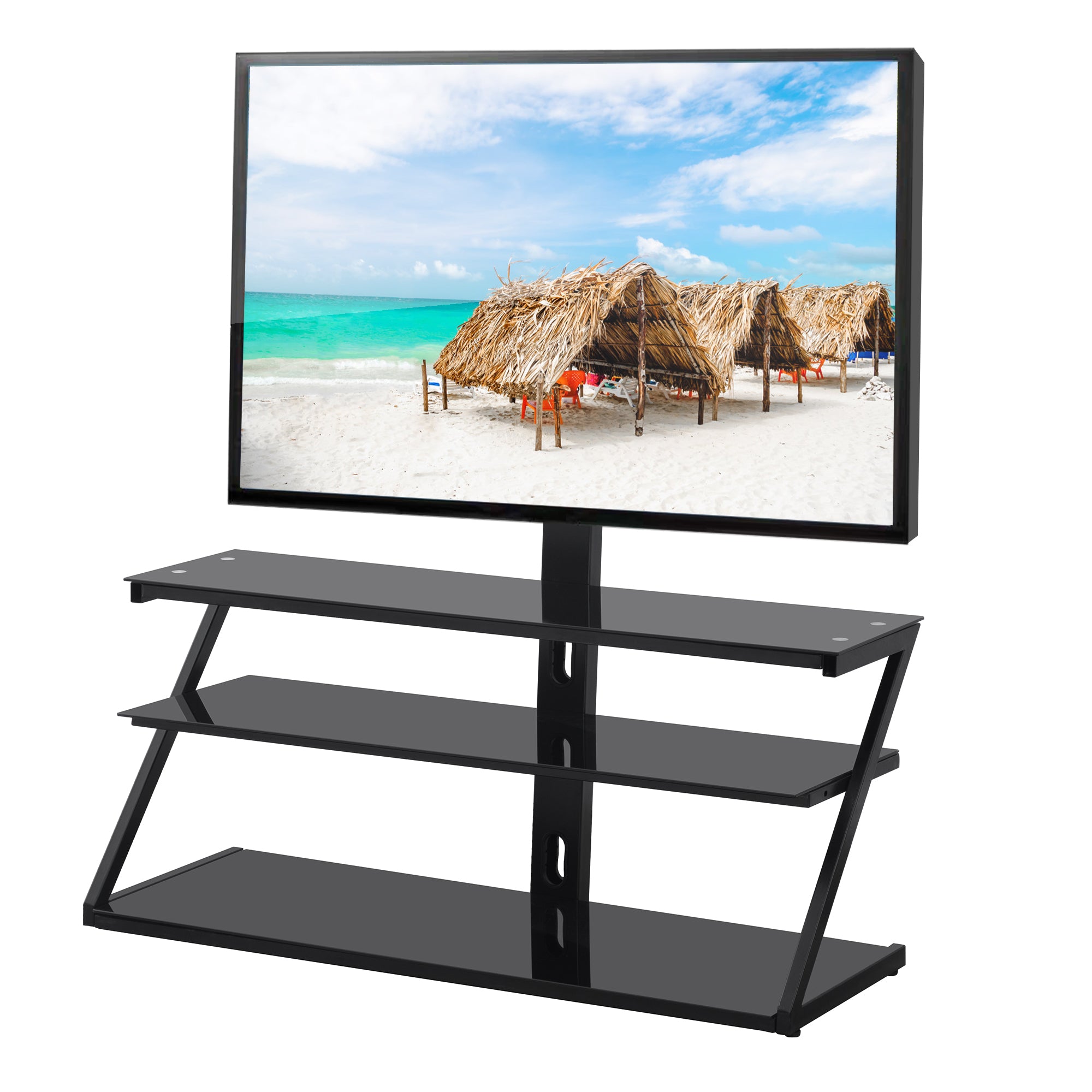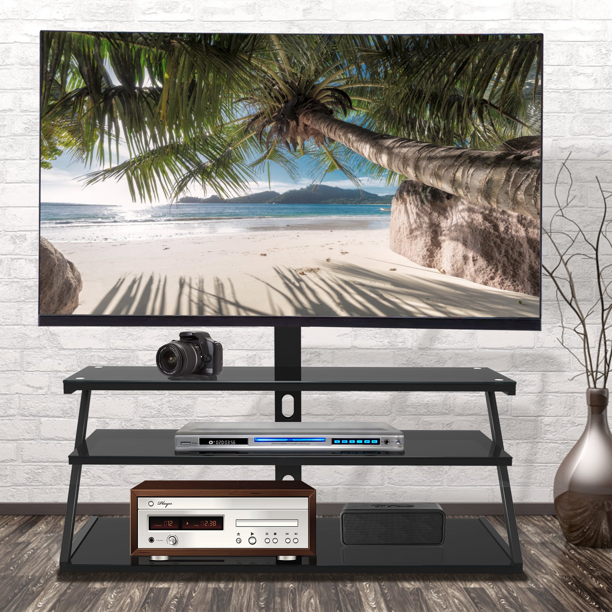 Universal Three-layer glass TV Stand Height and Angle adjustable 400*600 for 32~65 inch TV